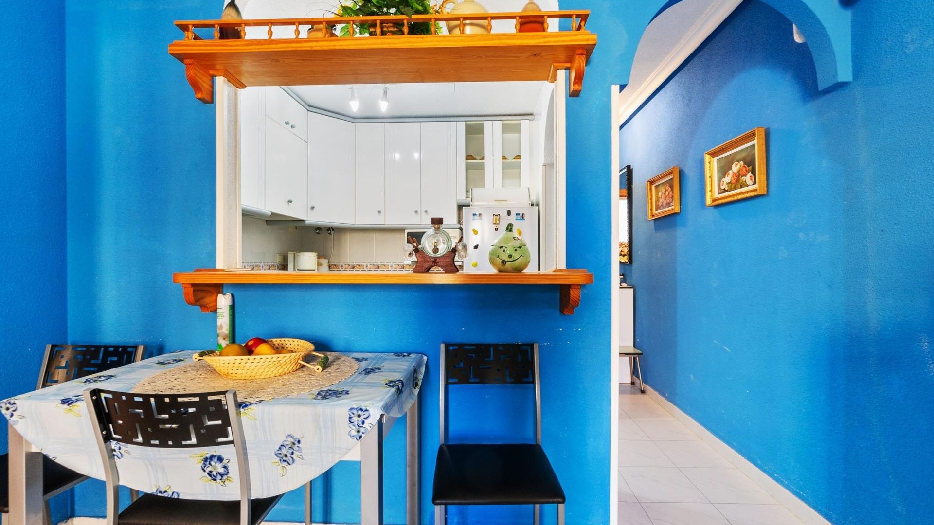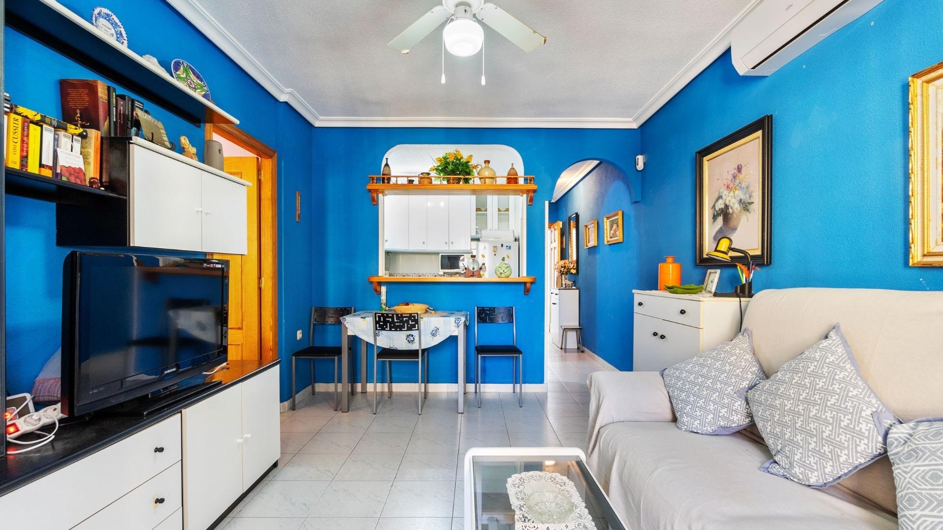 Vacker och välskött lägenhet på första våningen belägen i ett av de bästa bostadsområdena i La Mata, Viñamar VI. Med en byggyta på 38 m2 består den av ett sovrum, ett badrum, ett vardagsrum med matplats, ett kök med öppen planlösning och en 9 m2 inglasad terrass. Den vetter mot norr med utsikt över gatan. Säljes delvis möblerad. Bara några meter från alla bekvämligheter och bara 300 meter från La Matas magnifika sandstrand och strandpromenaden.~ALTERNATIV: parkeringsplats i underjordisk parkering, 16 000€