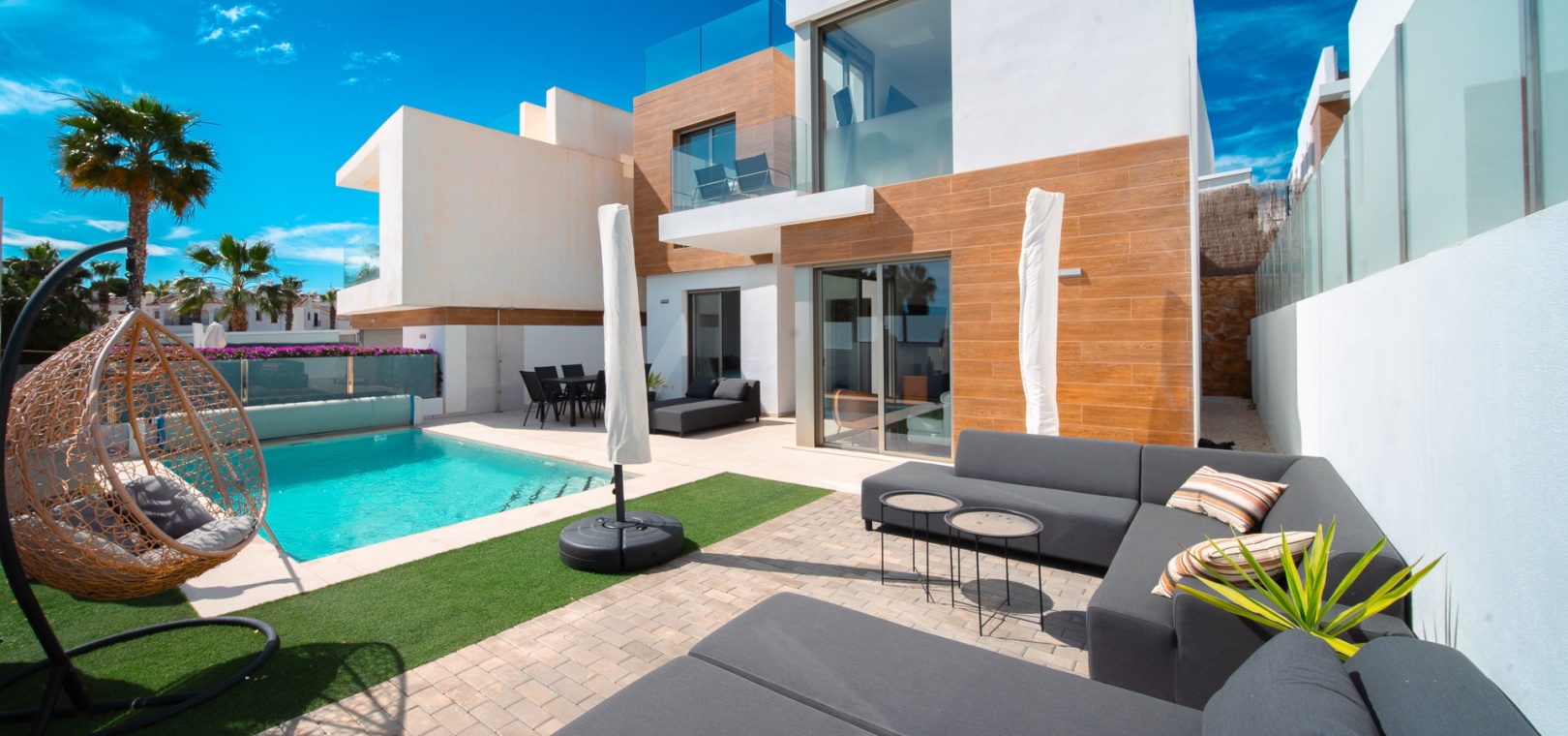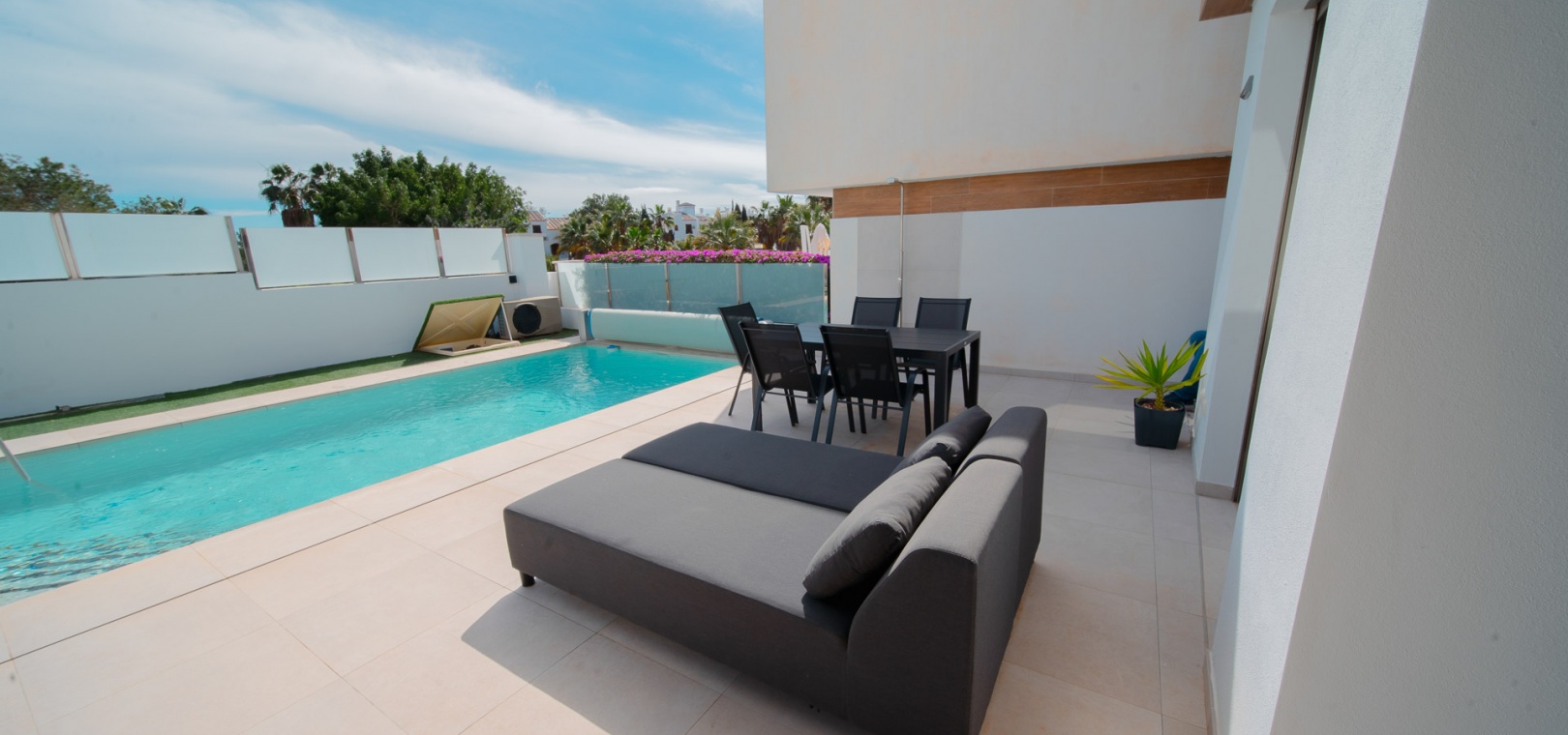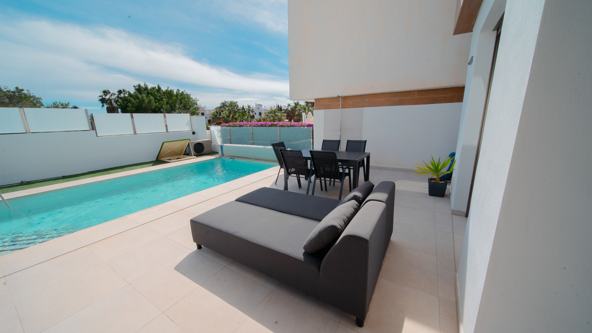 Välkommen till denna moderna och ljusa villa i charmiga Villamartin! Detta hem har stora fönster som släpper in mycket dagsljus, vilket skapar en rymlig och inbjudande atmosfär.