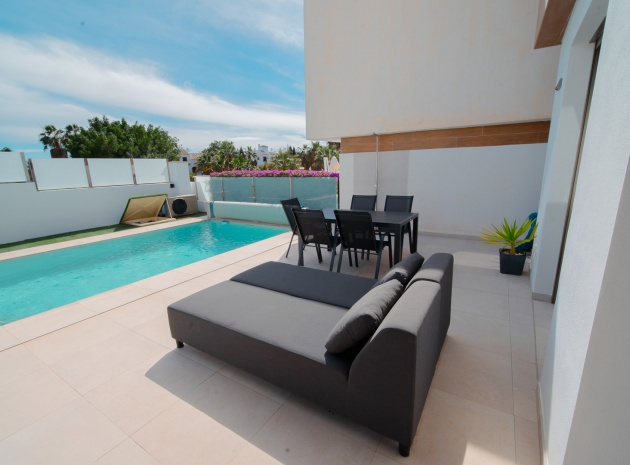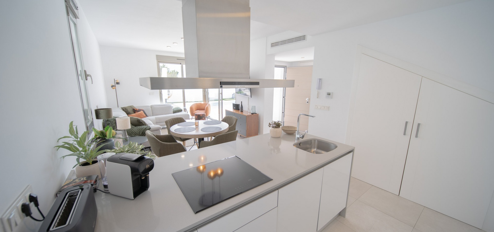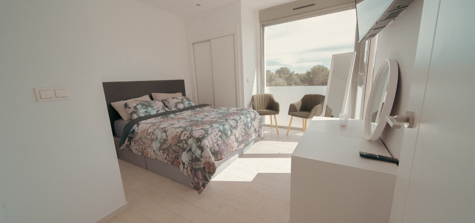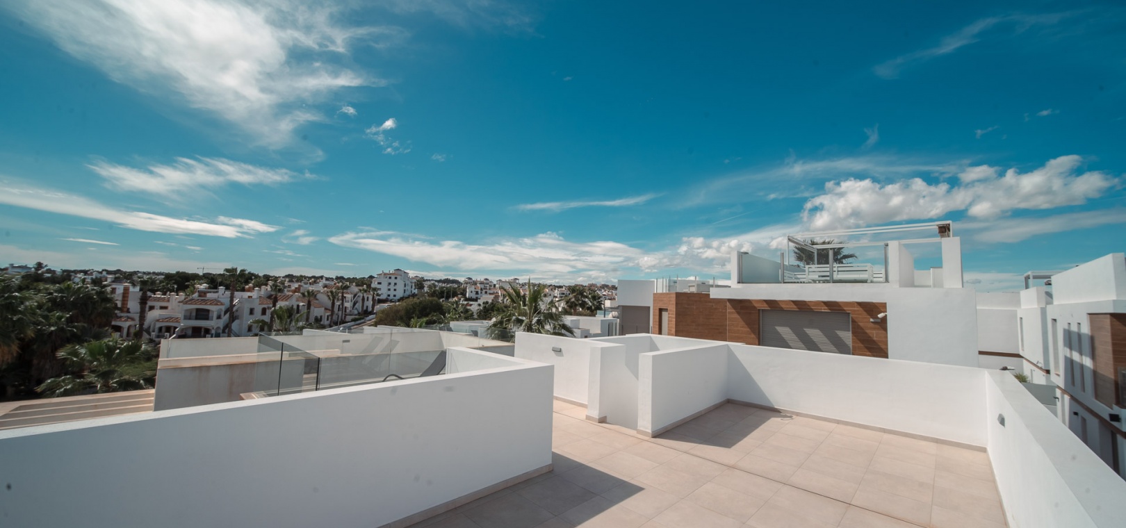 Välkommen till denna moderna och ljusa villa i charmiga Villamartin! Detta hem har stora fönster som släpper in mycket dagsljus, vilket skapar en rymlig och inbjudande atmosfär.