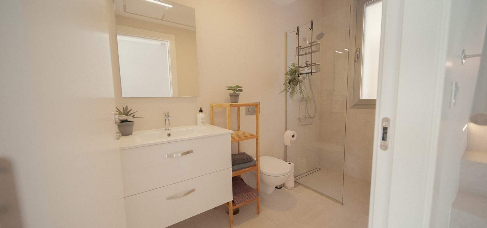 På bottenvåningen hittar du ett rymligt sovrum med glasdörrar som leder ut till den lummiga trädgården, ett elegant badrum och ett vardagsrum med öppen planlösning sömlöst anslutet till köket - perfekt för att umgås med familj och vänner. Från vardagsrummet har du direkt tillgång till uteserveringen, ett idealiskt utrymme för att njuta av solen, njuta av en kaffe eller äta middag under stjärnorna. Med gott om plats för både slappa och äta, blir denna terrass hemmets hjärta.