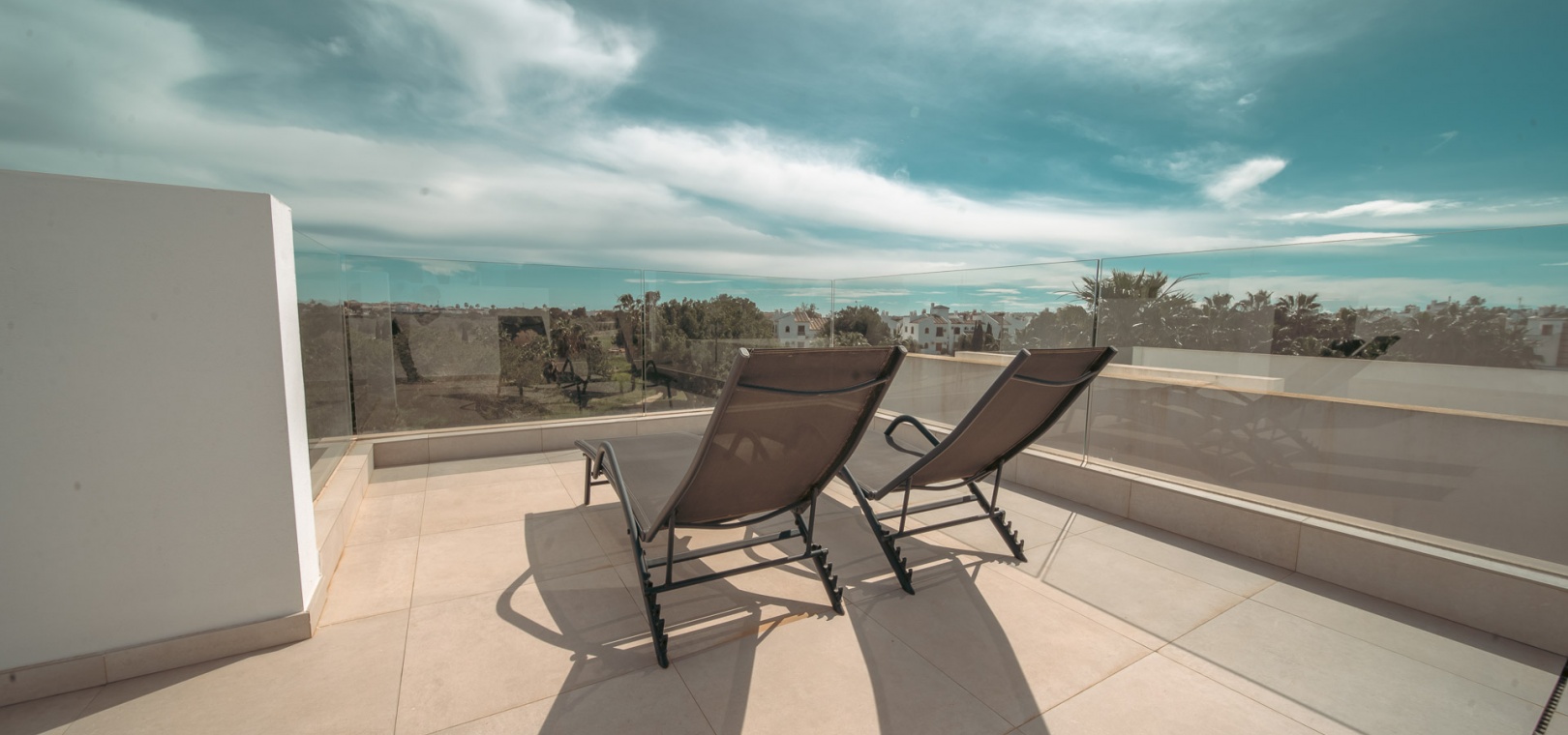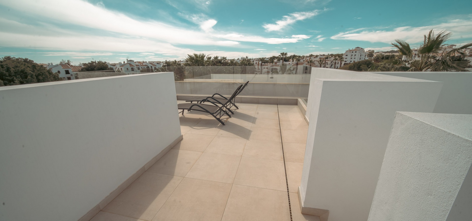 För solälskare är den privata takterrassen en absolut pärla. Det är den perfekta platsen för att grilla, äta utomhus och njuta av spektakulära solnedgångar i härligt sällskap. Villans trädgård är en grön oas med flera sittplatser, perfekt för att varva ner med en bok eller njuta av en lång frukost i solen. Under varma sommardagar erbjuder den privata poolen den ultimata uppfriskningen och lyxen. Dessutom finns det en gemensam pool i bostadskomplexet där du kan ta ett uppfriskande dopp och umgås med grannar.