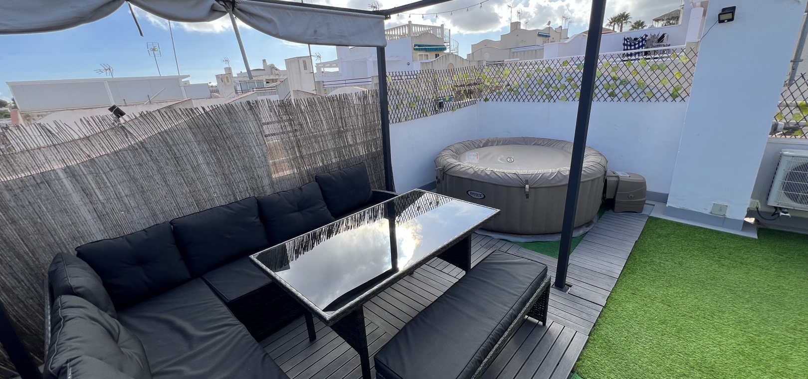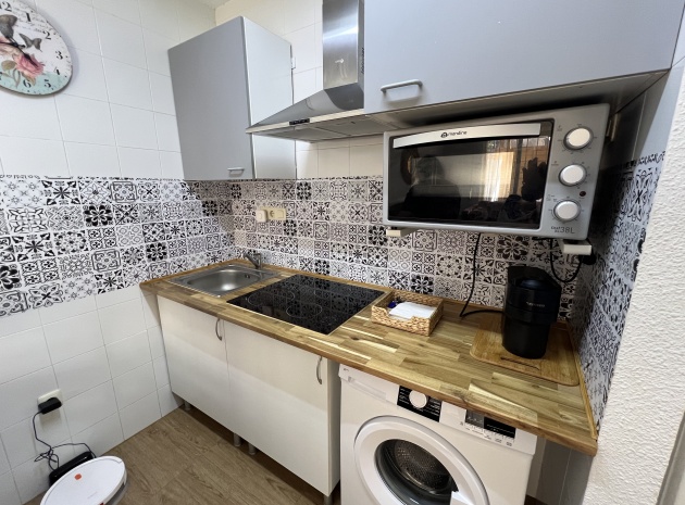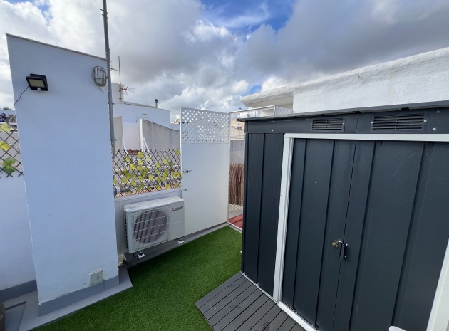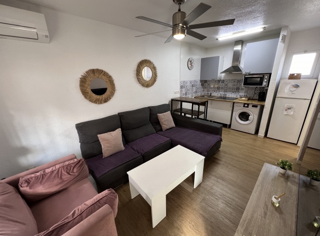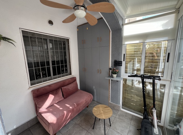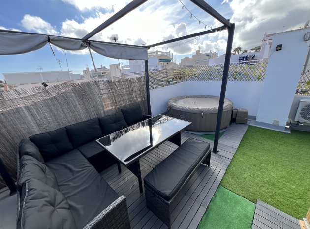 Denna charmiga fastighet på 40 m² har totalrenoverats och erbjuder komfort och lugn på ett oslagbart läge. Den har ett vardagsrum med matplats och ett kök i öppen planlösning, 1 sovrum och 1 badrum. Hemmet har en 15 m² stor inglasad terrass och ett privat 40 m² stort solarium med jacuzzi, perfekt för att koppla av medan du njuter av fantastisk utsikt över Torreviejas saltlagun. Dess söderläge ger naturligt ljus hela dagen. Bekvämt beläget nära barer, restauranger och butiker.