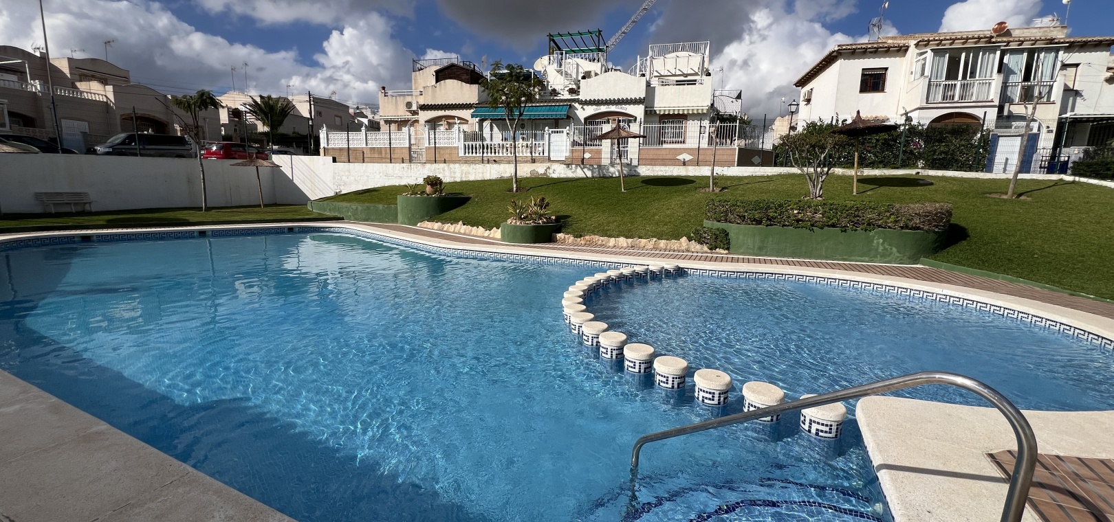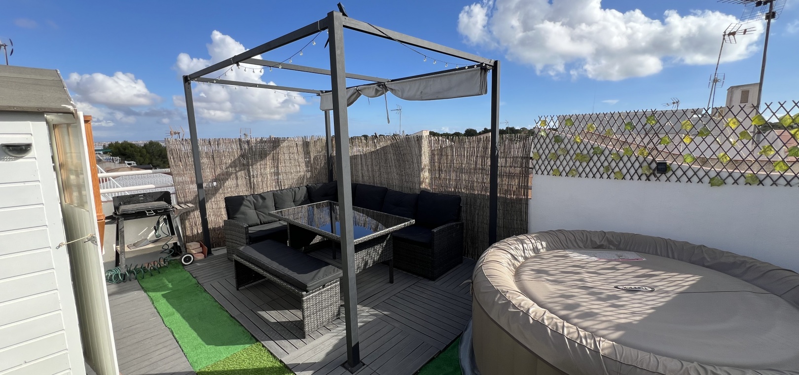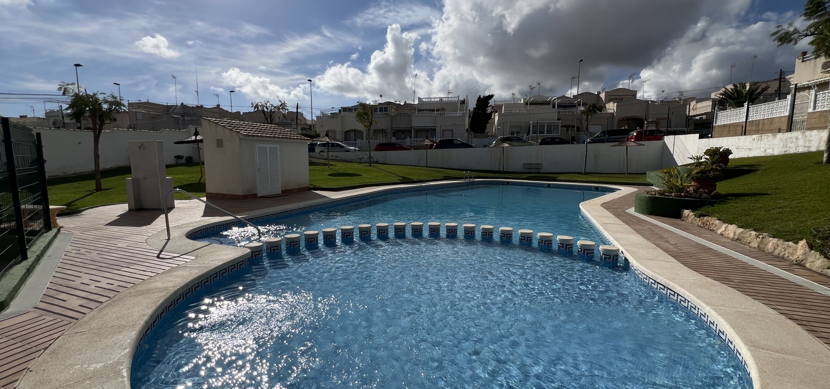 Denna charmiga fastighet på 40 m² har totalrenoverats och erbjuder komfort och lugn på ett oslagbart läge. Den har ett vardagsrum med matplats och ett kök i öppen planlösning, 1 sovrum och 1 badrum. Hemmet har en 15 m² stor inglasad terrass och ett privat 40 m² stort solarium med jacuzzi, perfekt för att koppla av medan du njuter av fantastisk utsikt över Torreviejas saltlagun. Dess söderläge ger naturligt ljus hela dagen. Bekvämt beläget nära barer, restauranger och butiker.