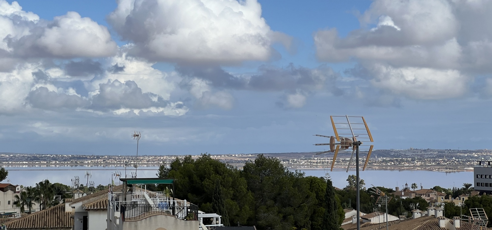1 sovrum och 1 badrum. 15 m² inglasad terrass. Privat 40 m² solarium med jacuzzi. Söderläge. Spektakulär utsikt över saltlagunen. Nära till bekvämligheter och tjänster.