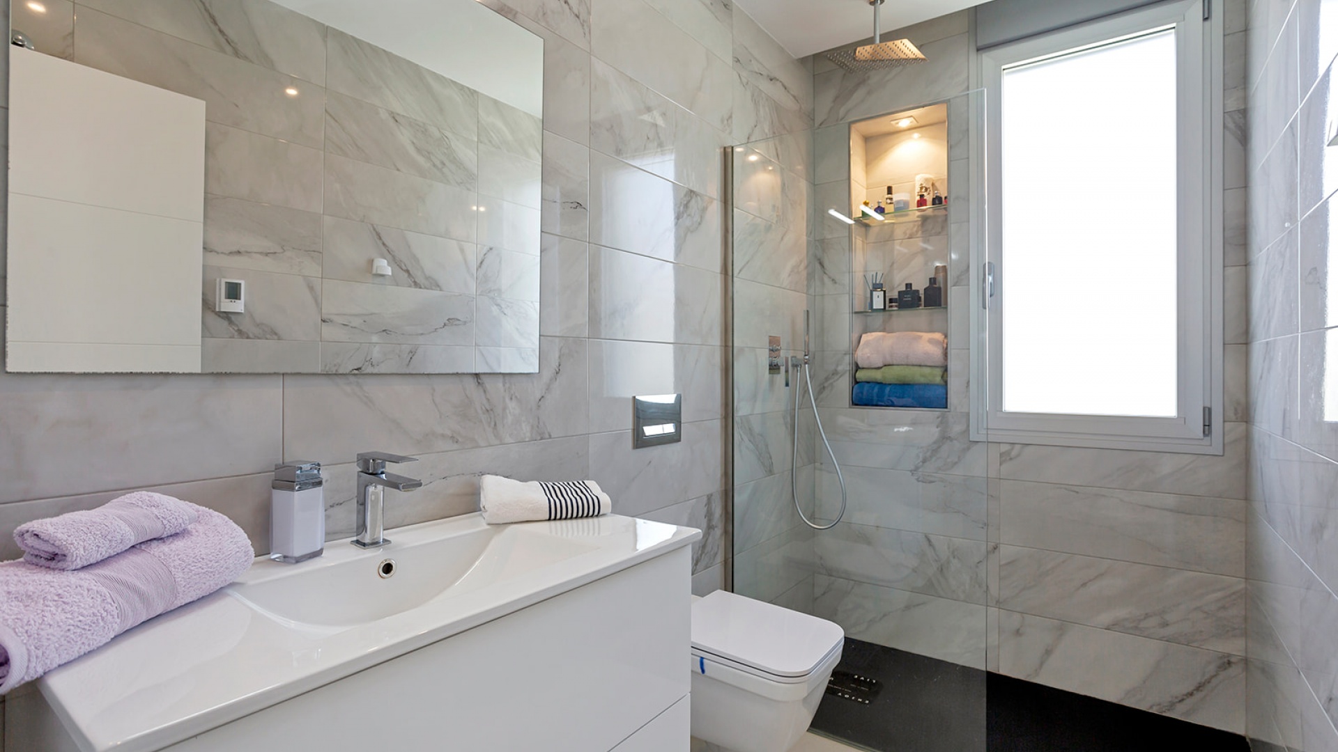 Inuti: Trådlös videointercom. Larm. Inbyggt väggskåp. Hemautomation Siemens vitvaror. Inverter luftkonditionering med Airzone. Golvvärme i badrum. Termisk isolering