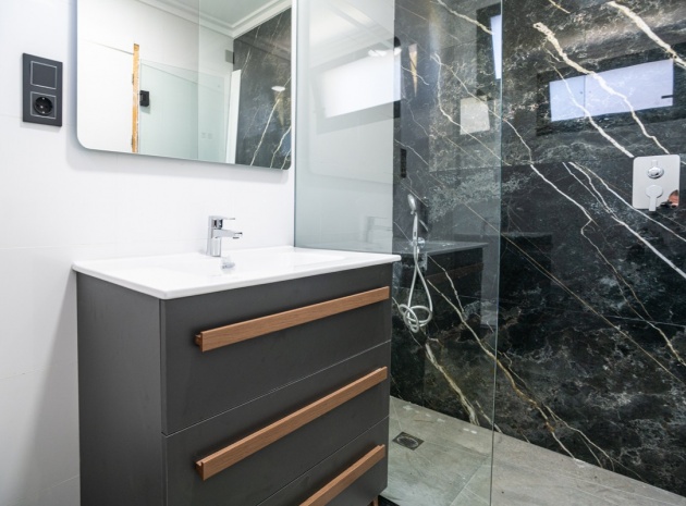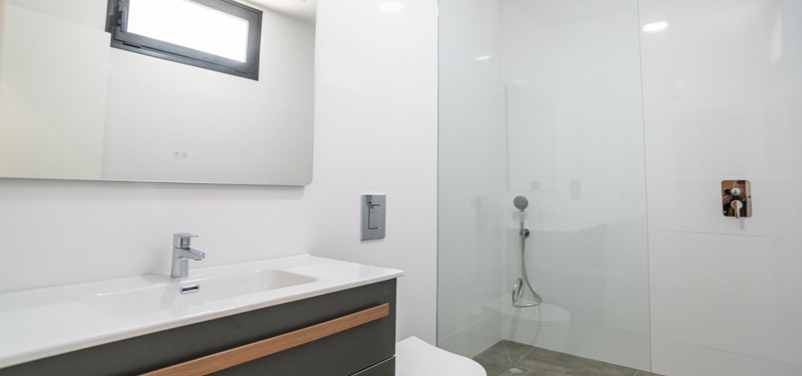 Bottenvåning: Kliv in i ett rymligt, ljust vardagsrum med öppet kök, perfekt för mysiga kvällar. På denna våning finns också ett rymligt sovrum med eget omklädningsrum och eget badrum. En separat gästtoalett fullbordar det hela.