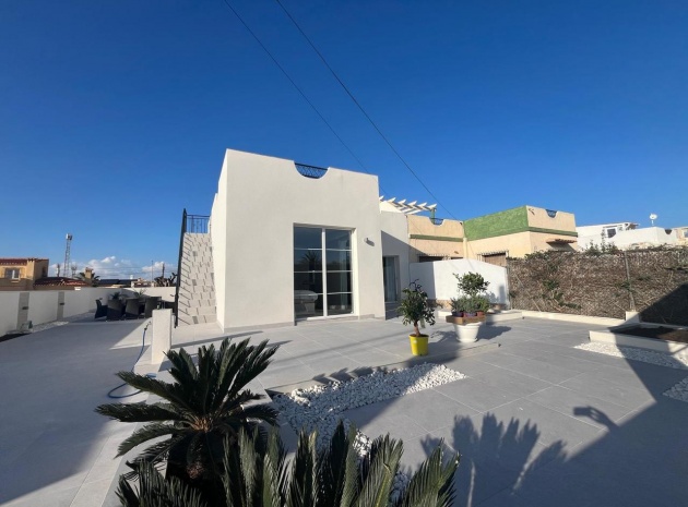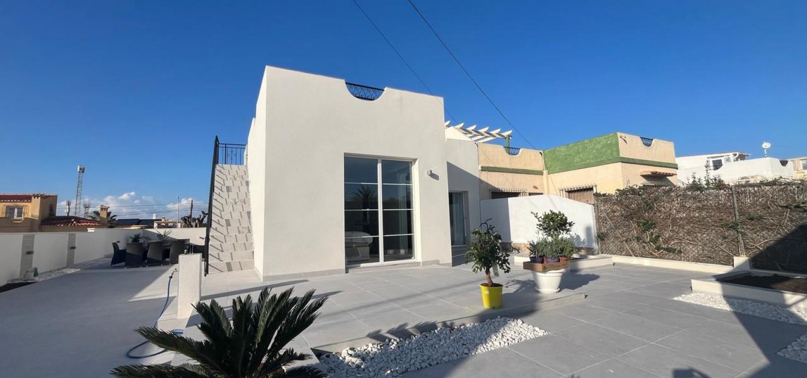 Fantastisk, helt renoverad villa med 3 sovrum i La Siesta, Torrevieja Välkommen till ditt drömhus! Denna vackert renoverade villa i ett plan ligger inbäddad i det lugna området La Siesta, Torrevieja. Med 3 rymliga sovrum och en orörd 4x7 meter stor privat pool är denna villa självklarheten för lyxliv på Costa Blanca. Belägen på en generös tomt i söderläge har huset gott om utomhusutrymme, perfekt för underhållning, solbad eller bara för att njuta av medelhavsklimatet. Den stora takterrassen erbjuder hisnande utsikt, vilket gör den till en idealisk plats för måltider utomhus eller för att titta på solnedgången. Med sin öppna planlösning, moderna ytbehandlingar och rikliga naturliga ljusinsläpp erbjuder denna villa både komfort och stil. Viktiga funktioner: Helt renoverad till hög standard 3 rymliga sovrum Stor 4x7 meter stor privat pool Stor takterrass med fantastisk utsikt Tomt i söderläge för sol hela dagen Belägen i det lugna och väletablerade området La Siesta Om La Siesta och omgivningarna: La Siesta är ett lugnt bostadsområde bara en kort bilresa från Torreviejas pulserande hjärta. Känd för sin vänliga gemenskapsatmosfär erbjuder den en avslappnad livsstil med alla bekvämligheter nära till hands. Området är perfekt för familjer, pensionärer eller alla som söker ett lugnare liv samtidigt som de har nära till allt som Costa Blanca har att erbjuda. Bara några minuter bort ligger Habaneras köpcentrum, en av områdets främsta shoppingdestinationer, med en mängd olika butiker, restauranger och nöjesalternativ. Du är också en kort bilresa från stränderna, saltsjöarna och naturparkerna som gör detta område så attraktivt. Med enkel tillgång till lokala skolor, sjukvård och kollektivtrafik är La Siesta både bekvämt och lugnt – en sann oas i solen. Denna villa är perfekt för dig som söker en lyxig men ändå bekväm livsstil. Missa inte möjligheten att äga denna exceptionella fastighet i ett av Torreviejas mest eftertraktade områden. Kontakta oss idag för en privat visning.