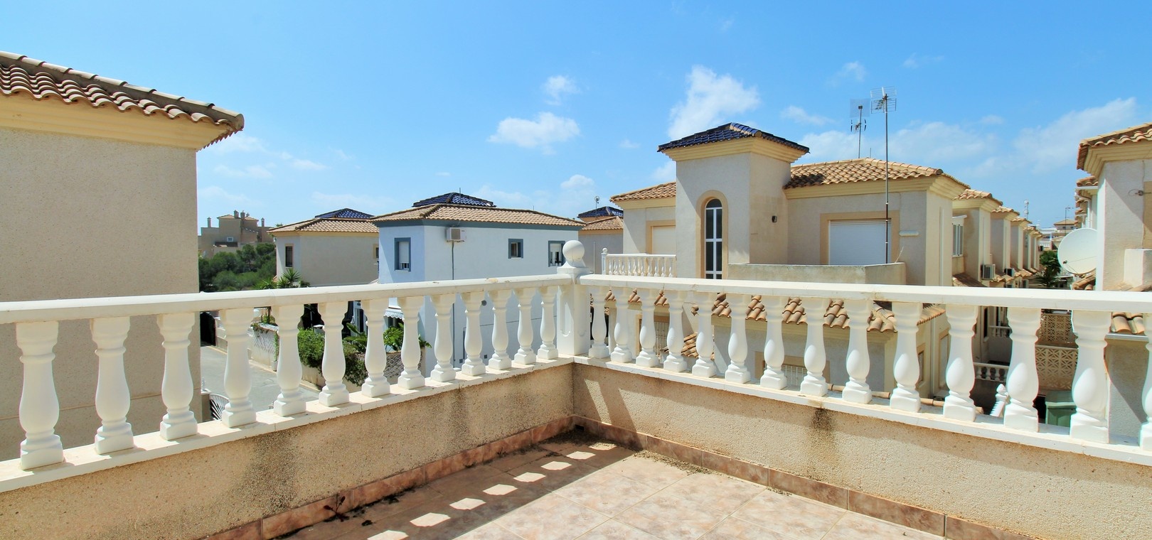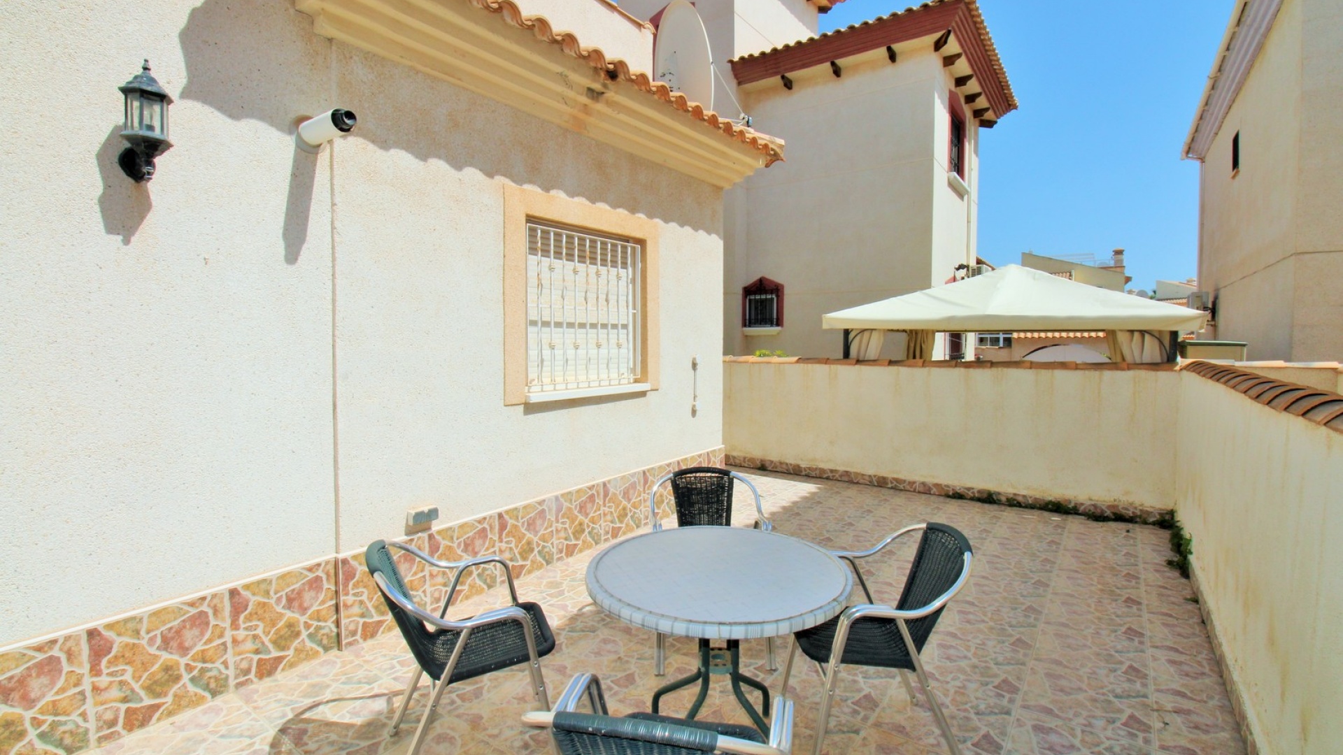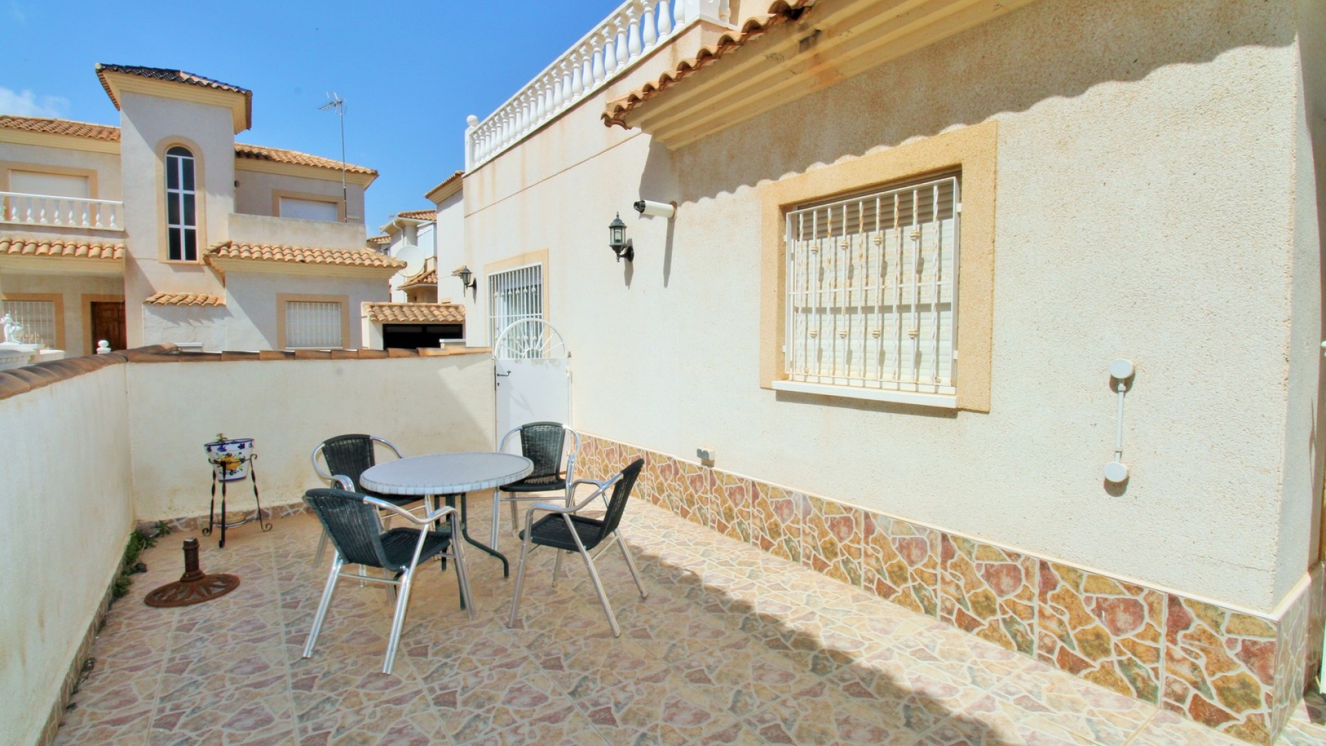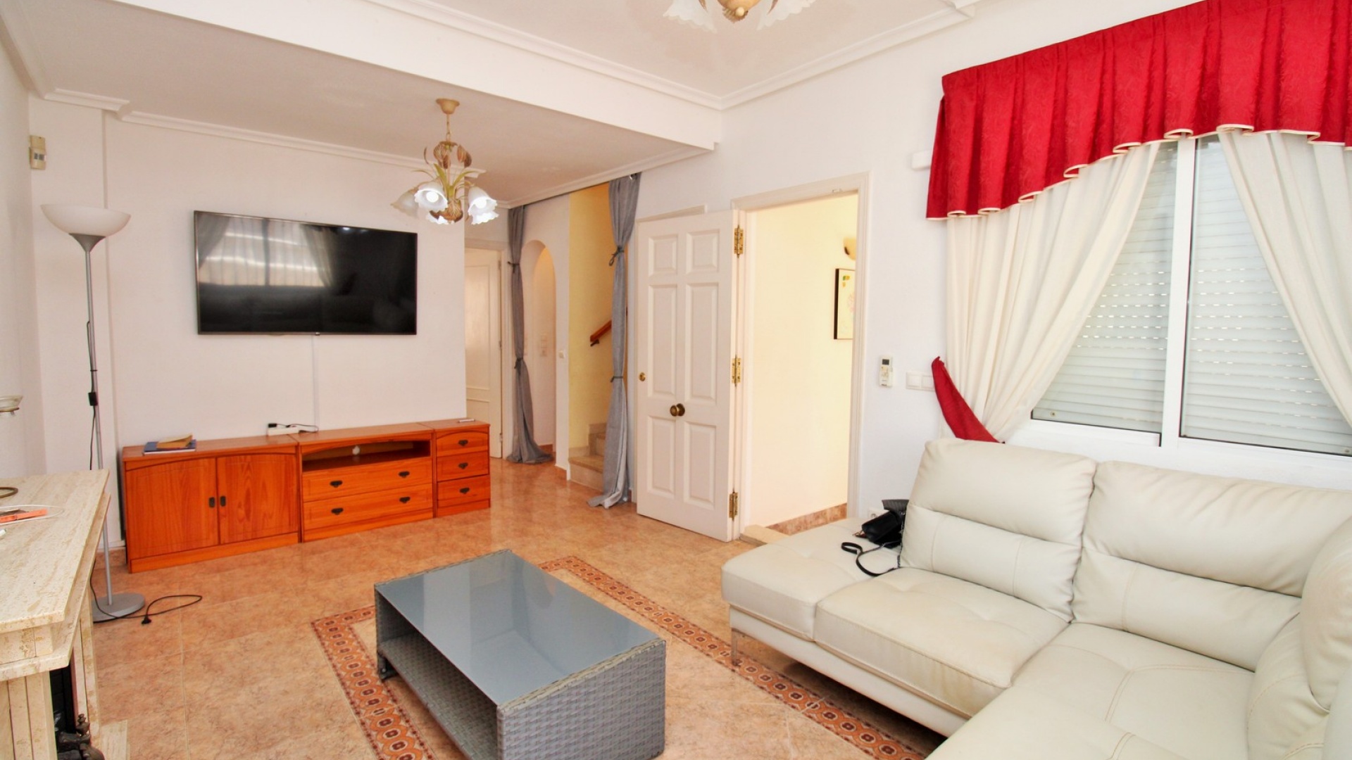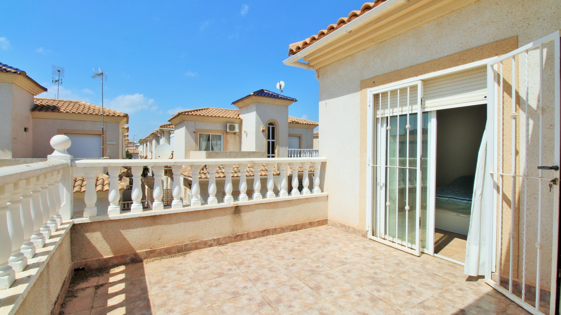 3-sovrumsvilla med gemensam pool till salu i bostadskomplexet La Pinada i Playa Flamenca. Idealiskt beläget inom gångavstånd till lokala barer, restauranger, butiker, den populära lördagsmarknaden och köpcentret Zenia Boulevard med över 155 butiker. Denna villa ligger inbäddat i samhället borta från all passerande trafik, och erbjuder en fridfull tillflyktsort. Fastigheten är fördelad på två plan. På bottenvåningen hittar du en främre kaklad trädgård med gated uppfart, huvudentrén som leder in till en ljus vardagsrumsdel med matplats och ett separat fullt utrustat kök med tillgång till en bakre terrass. På denna nivå finns också ett mångsidigt tredje sovrum - perfekt som gästrum eller hemmakontor. På övervåningen finns två dubbelrum med inbyggda garderober, båda med tillgång till privata soliga balkonger, samt ett familjebadrum. Säljes möblerad med vitvaror och luftkonditionering. Denna villa erbjuder utmärkt värde i ett fantastiskt läge, nära stranden och ett brett utbud av bekvämligheter. La Pinada är ett charmigt, välskött samhälle med tillgång till en gemensam pool. Kontakta oss idag för att ordna din visning!