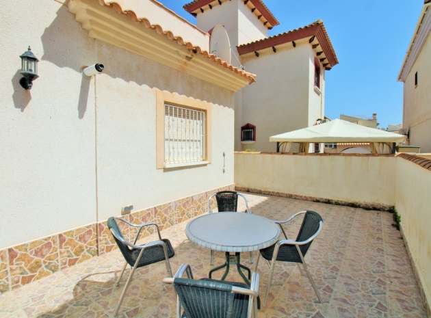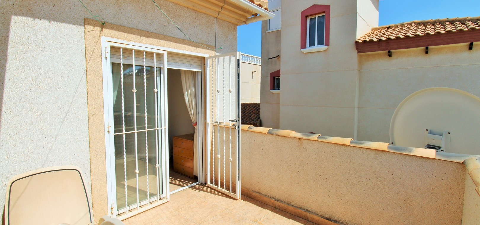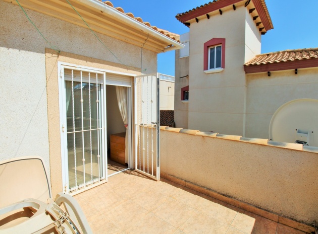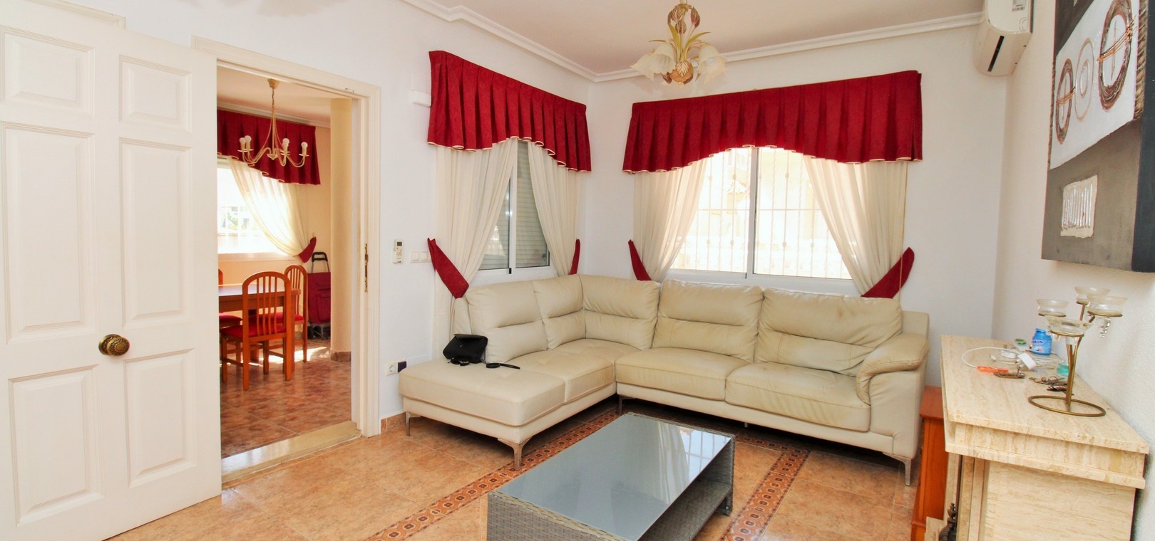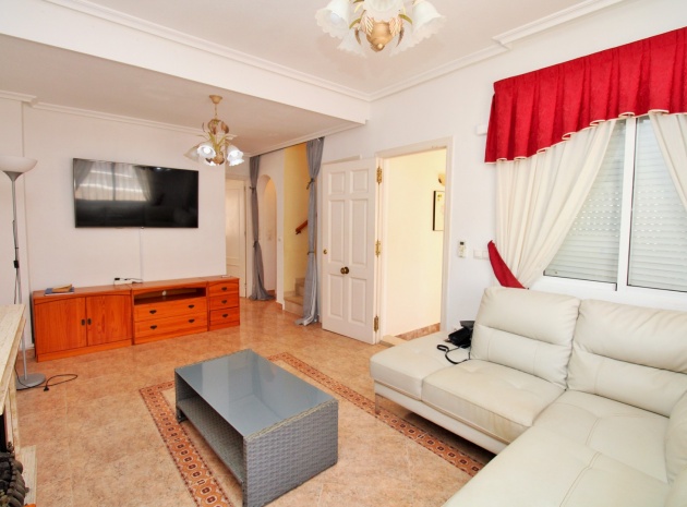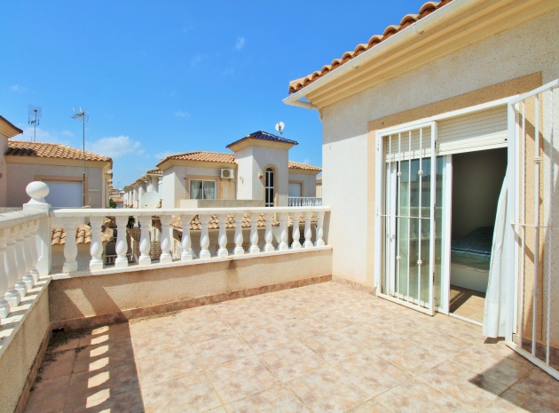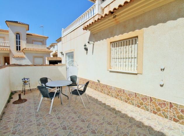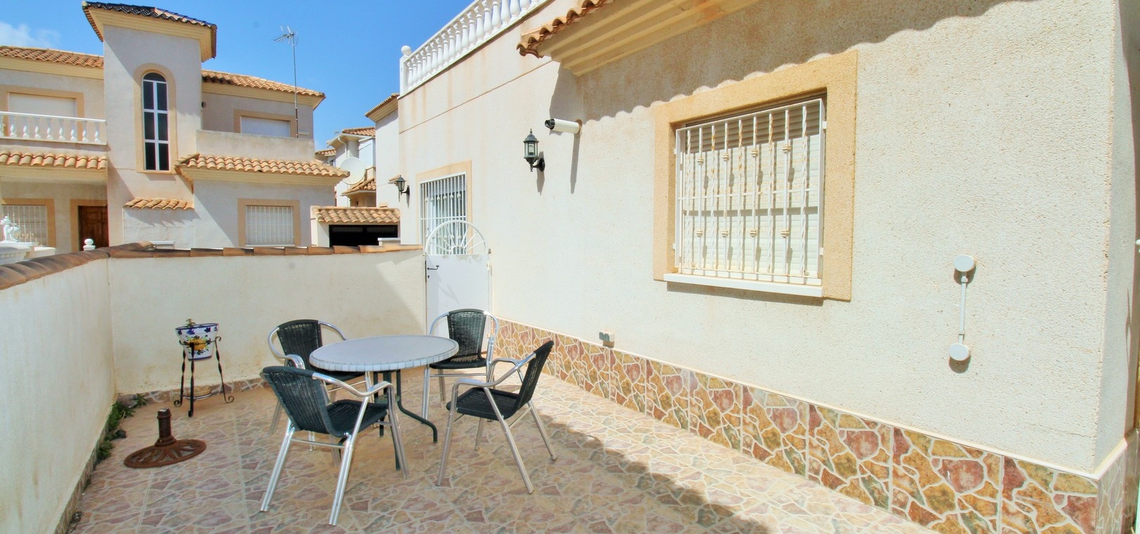 3-sovrumsvilla med gemensam pool till salu i bostadskomplexet La Pinada i Playa Flamenca. Idealiskt beläget inom gångavstånd till lokala barer, restauranger, butiker, den populära lördagsmarknaden och köpcentret Zenia Boulevard med över 155 butiker. Denna villa ligger inbäddat i samhället borta från all passerande trafik, och erbjuder en fridfull tillflyktsort. Fastigheten är fördelad på två plan. På bottenvåningen hittar du en främre kaklad trädgård med gated uppfart, huvudentrén som leder in till en ljus vardagsrumsdel med matplats och ett separat fullt utrustat kök med tillgång till en bakre terrass. På denna nivå finns också ett mångsidigt tredje sovrum - perfekt som gästrum eller hemmakontor. På övervåningen finns två dubbelrum med inbyggda garderober, båda med tillgång till privata soliga balkonger, samt ett familjebadrum. Säljes möblerad med vitvaror och luftkonditionering. Denna villa erbjuder utmärkt värde i ett fantastiskt läge, nära stranden och ett brett utbud av bekvämligheter. La Pinada är ett charmigt, välskött samhälle med tillgång till en gemensam pool. Kontakta oss idag för att ordna din visning!