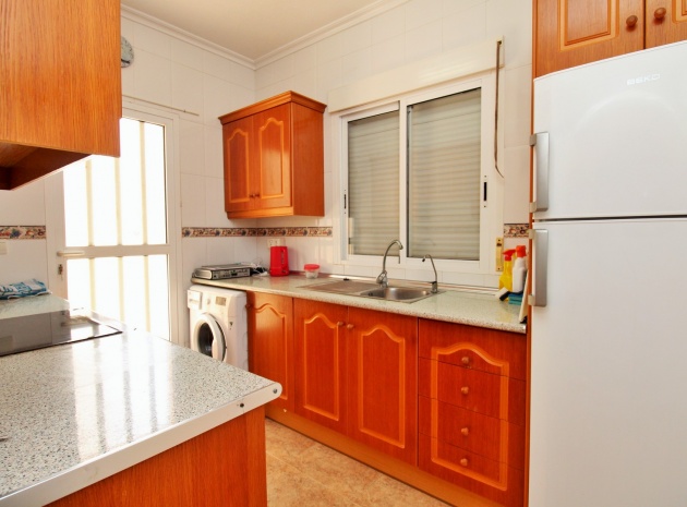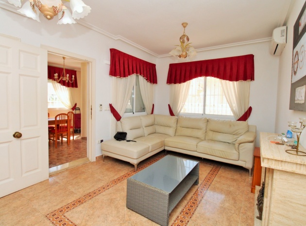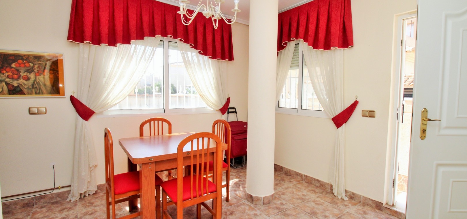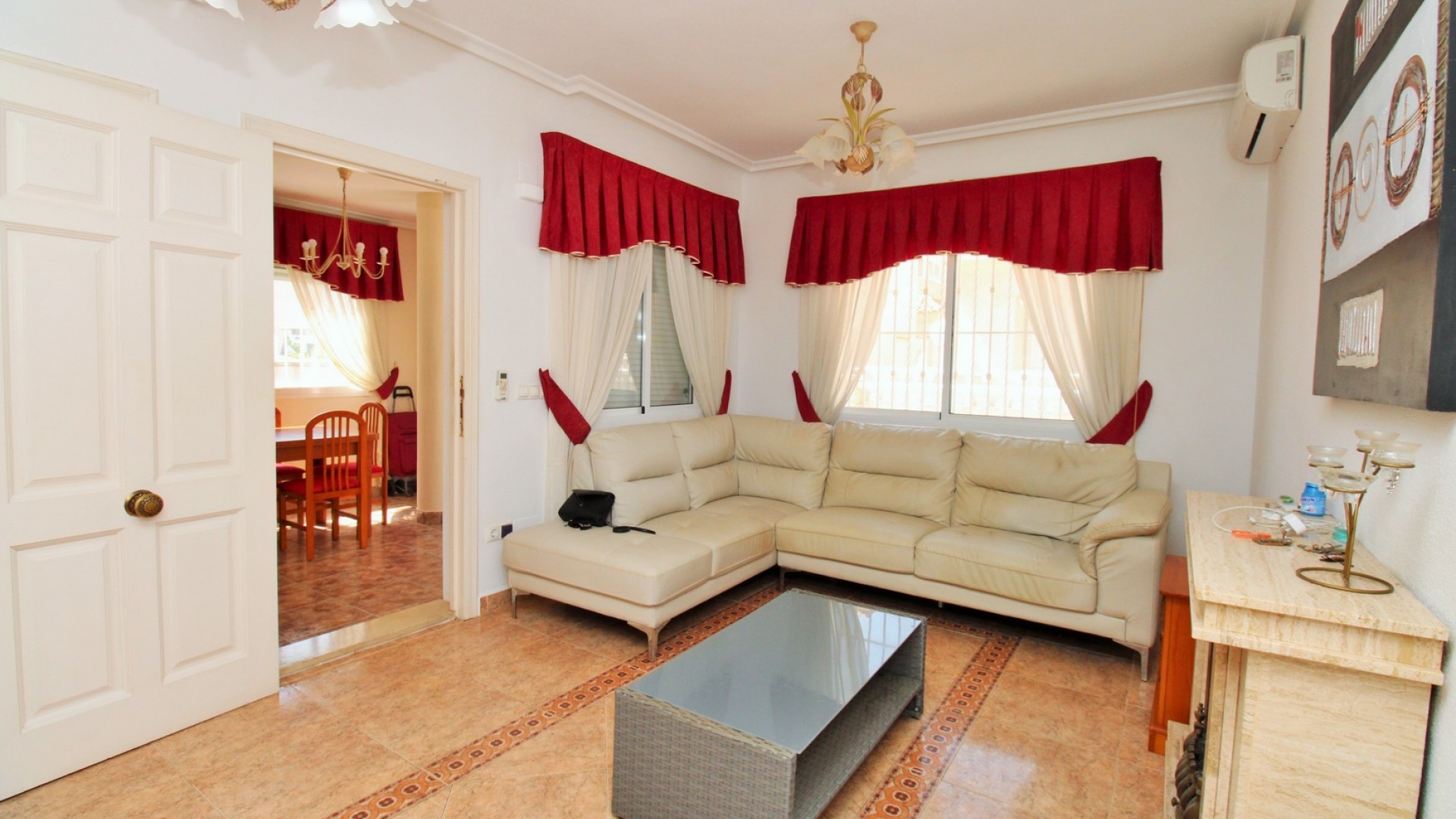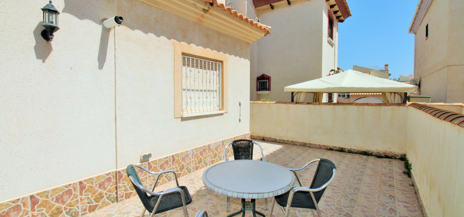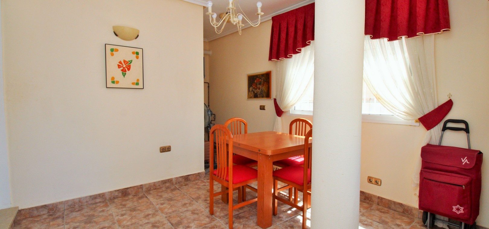 3-sovrumsvilla med gemensam pool till salu i bostadskomplexet La Pinada i Playa Flamenca. Idealiskt beläget inom gångavstånd till lokala barer, restauranger, butiker, den populära lördagsmarknaden och köpcentret Zenia Boulevard med över 155 butiker. Denna villa ligger inbäddat i samhället borta från all passerande trafik, och erbjuder en fridfull tillflyktsort. Fastigheten är fördelad på två plan. På bottenvåningen hittar du en främre kaklad trädgård med gated uppfart, huvudentrén som leder in till en ljus vardagsrumsdel med matplats och ett separat fullt utrustat kök med tillgång till en bakre terrass. På denna nivå finns också ett mångsidigt tredje sovrum - perfekt som gästrum eller hemmakontor. På övervåningen finns två dubbelrum med inbyggda garderober, båda med tillgång till privata soliga balkonger, samt ett familjebadrum. Säljes möblerad med vitvaror och luftkonditionering. Denna villa erbjuder utmärkt värde i ett fantastiskt läge, nära stranden och ett brett utbud av bekvämligheter. La Pinada är ett charmigt, välskött samhälle med tillgång till en gemensam pool. Kontakta oss idag för att ordna din visning!