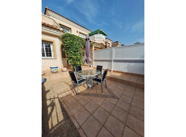 Denna ljusa och rymliga parhusvilla med 2 sovrum och 2 badrum ligger i den eftertraktade urbaniseringen El Raso och är perfekt för heltidsboende eller som en semesterort. Beläget på en generös tomt erbjuder fastigheten fantastiska uteplatser, inklusive en privat terrass, taksolarium och terrängparkering. Hemmet har ett modernt vardagsrum och matplats i öppen planlösning, ett fullt utrustat kök och två välutrustade sovrum, inklusive en master med eget badrum. Invånarna har också tillgång till en gemensam pool och anlagda trädgårdar, allt i en lugn och säker miljö. Bara en kort bilresa från Guardamars gyllene stränder och inom gångavstånd till lokala barer, butiker och restauranger, erbjuder denna fastighet det bästa av Costa Blancas livsstil. Nyckelfunktioner: 2 dubbelrum, 2 badrum Rymligt vardagsrum med öppen planlösningPrivat trädgård och solarium Offroad-parkering Tillgång till gemensam pool Nära till stränder, golf och bekvämligheter Perfekt för semester, investeringar eller permanent boende Pris: 179 950 € Schemalägg din visning idag! Denna pärla i El Raso kommer inte att vara länge.