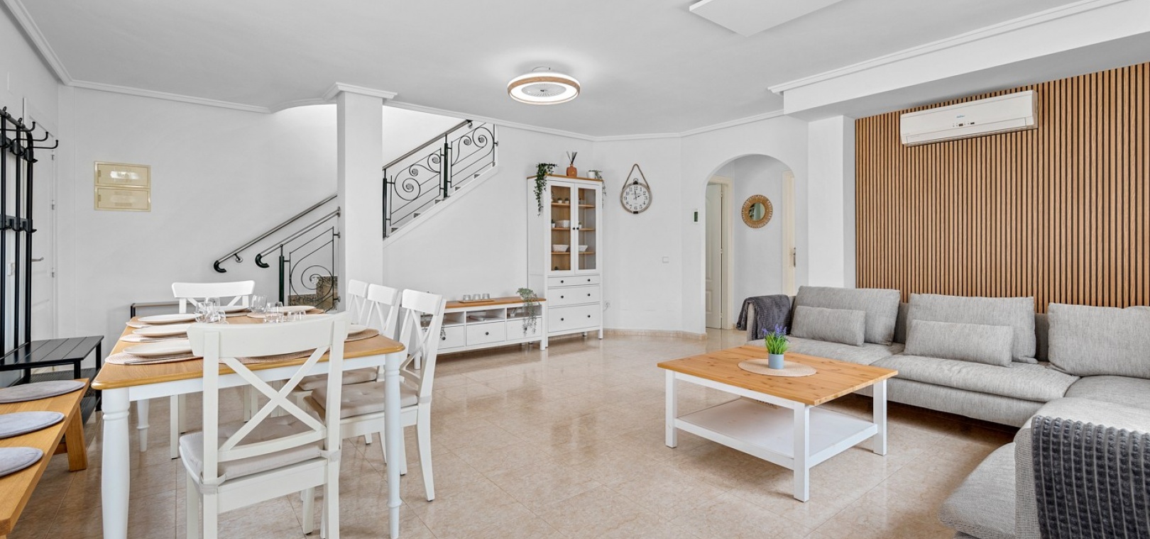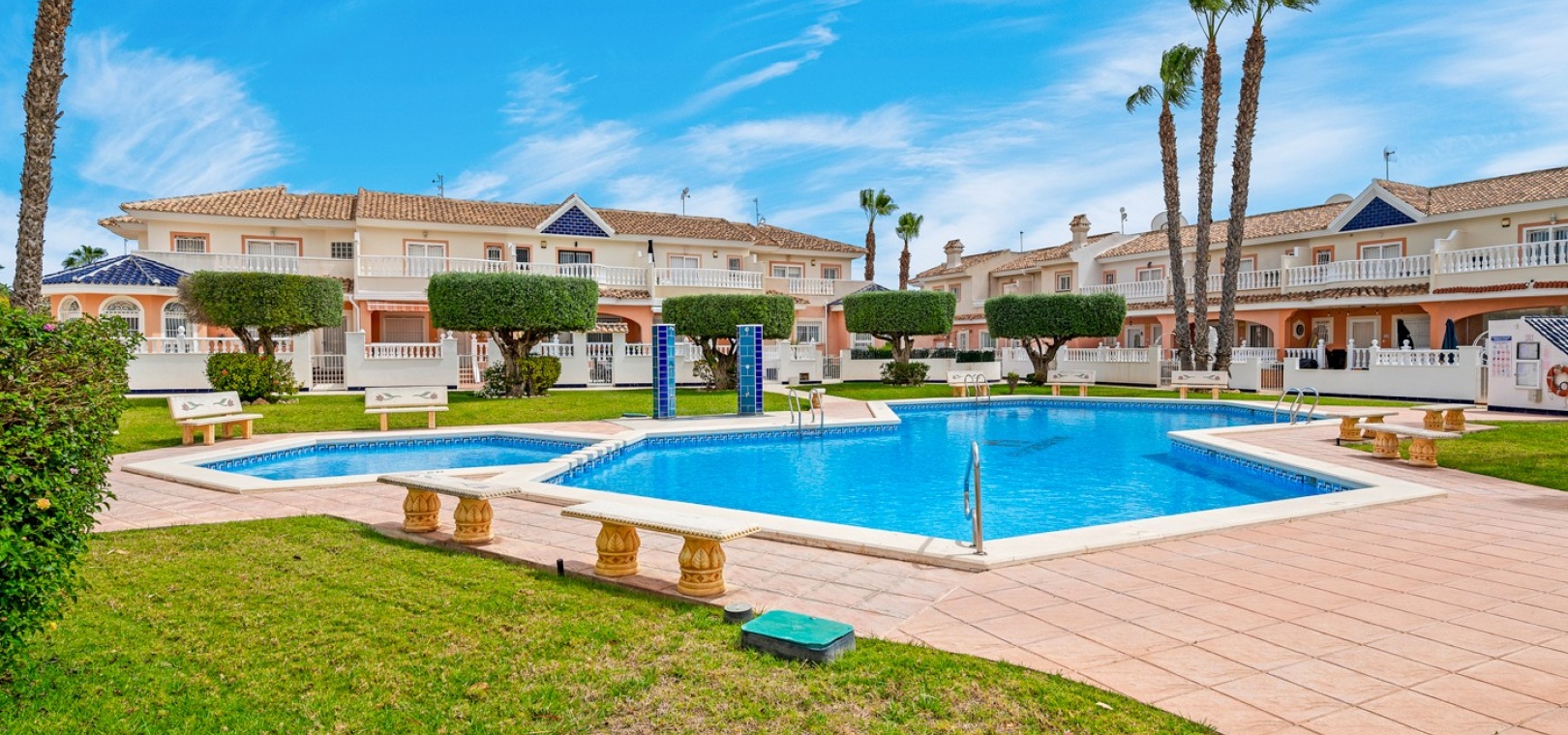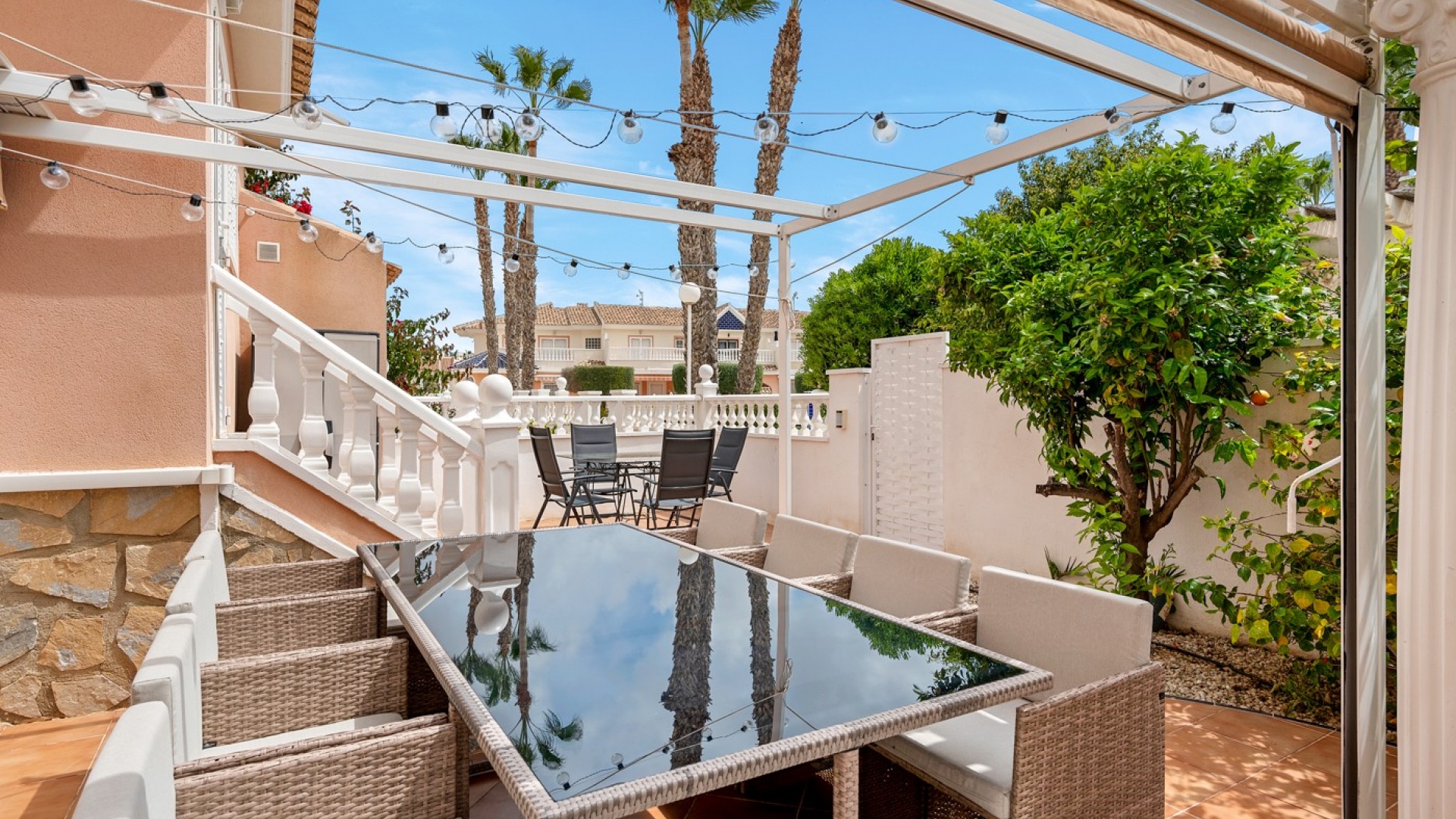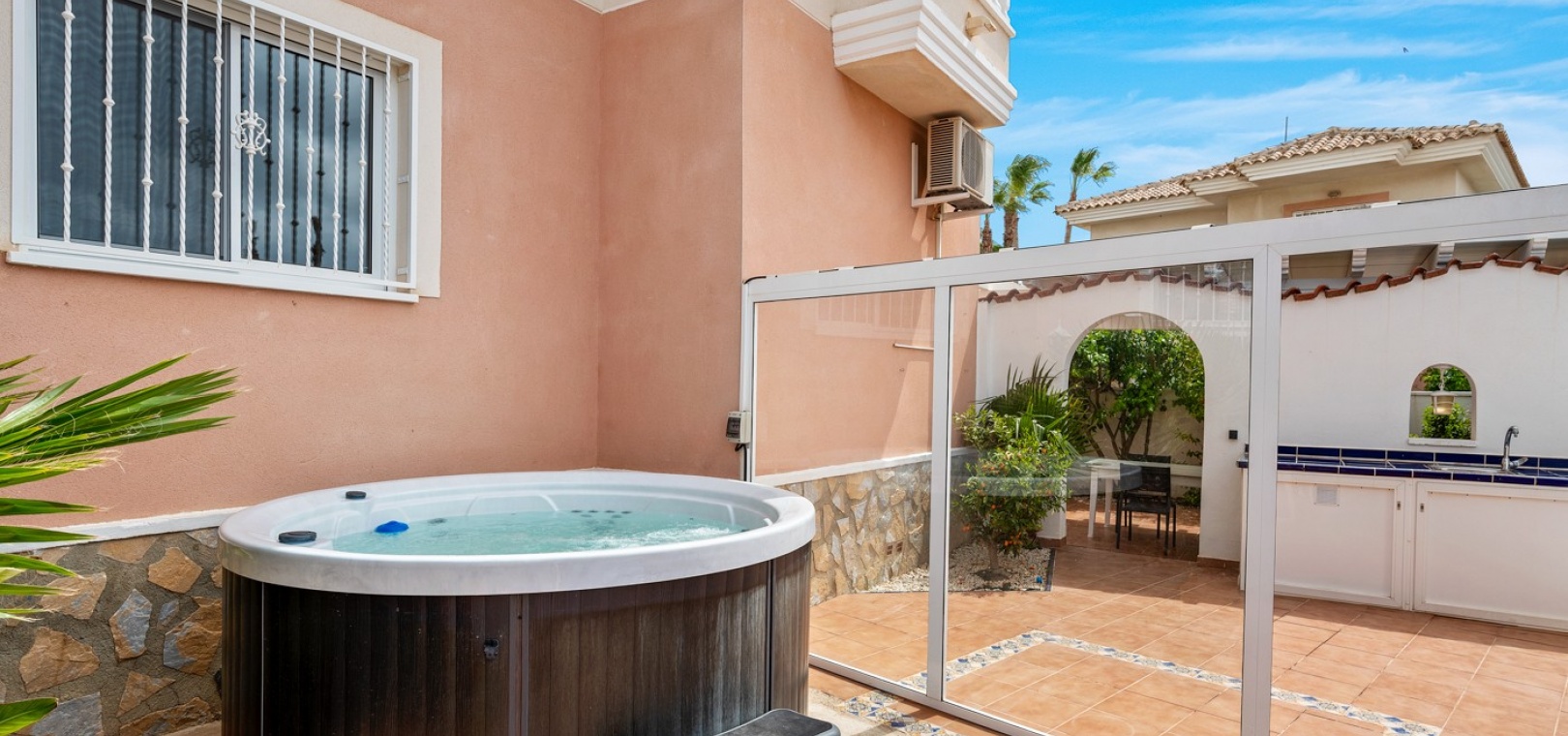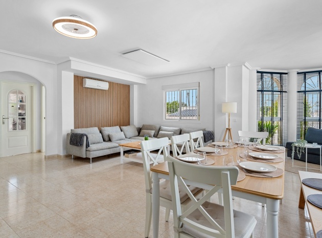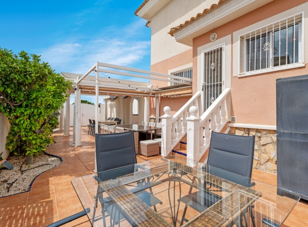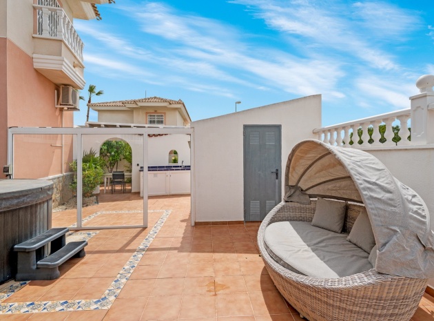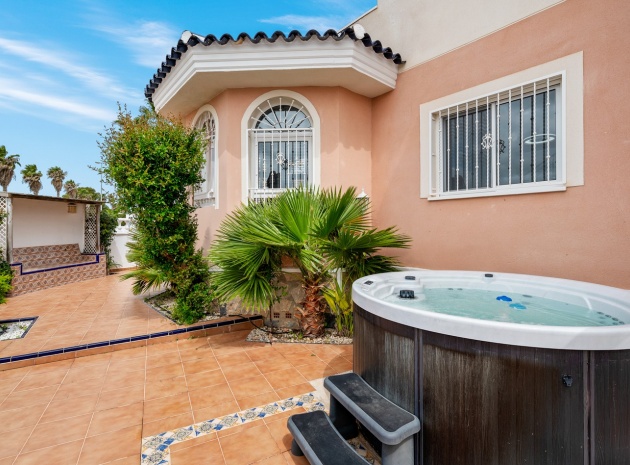 Vi presenterar dig denna vackra villa på ett utmärkt läge av en hörntomt i Residential Elena i Ciudad Quesada, Rojales med 3 sovrum och 3 badrum (1 sovrum och 1 badrum på bottenvåningen) enormt vardagsrum och separat kök som öppnar ut mot den underbara trädgården med utekök, grill, jacuzzi och plats för bilar om det behövs. Denna fastighet är unik och tidig visning rekommenderas.