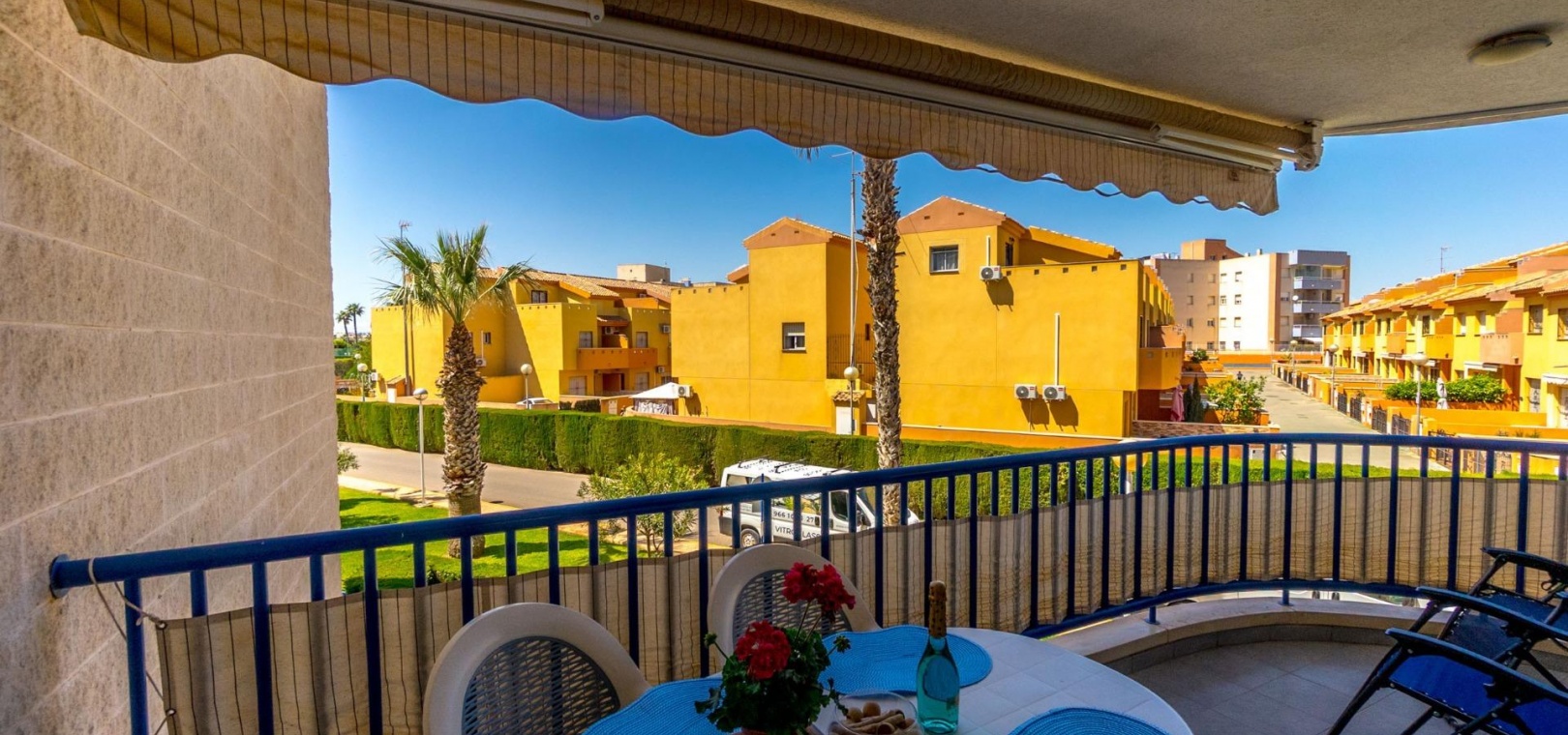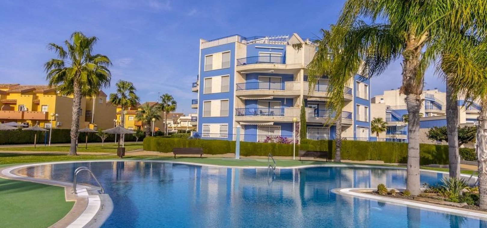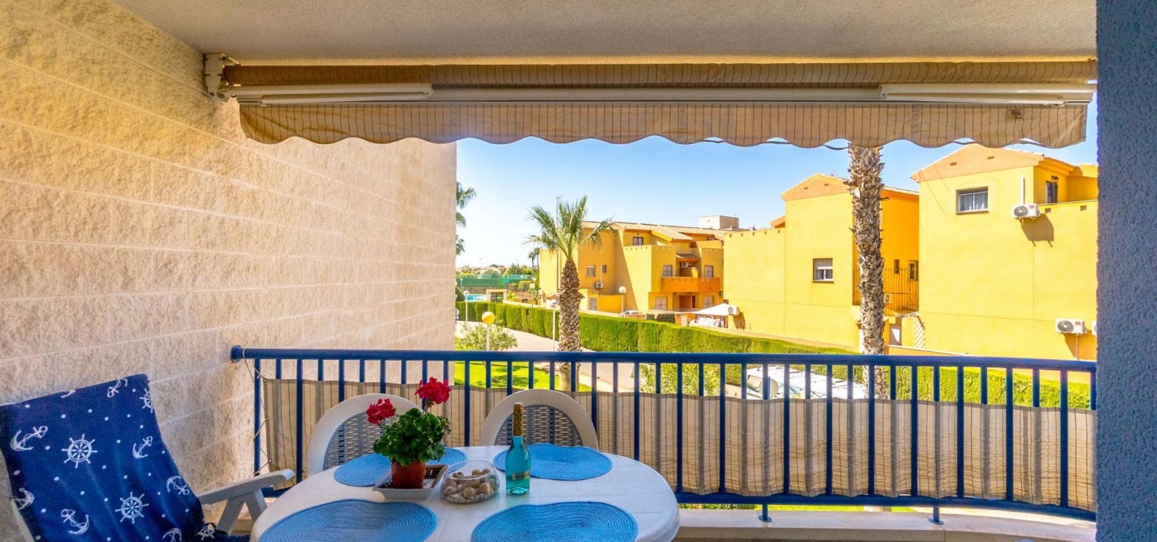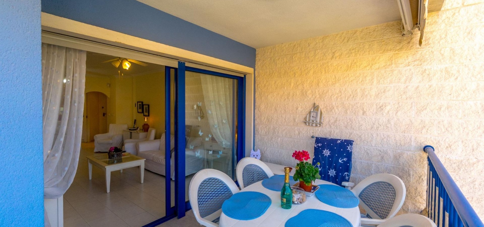 Denna rymliga och ljusa lägenhet ligger i det exklusiva bostadskomplexet Aguamarina, Punta Glea, vid stranden, med direkt tillgång till strandpromenaden. Ligger på första våningen, vetter mot sydost för att njuta av solen nästan hela dagen. Med en yta på 78 m² har den en mycket bekväm layout som erbjuder komfort och funktionalitet.~Lägenheten har två stora sovrum, alla med inbyggda garderober, som ger gott om förvaringsutrymme, och två kompletta badrum.~Det separata köket är fullt utrustat och inkluderar en tvättstuga. Ett ljust vardagsrum/matsal och en stor terrass, som nås från vardagsrummet och sovrummet, är den perfekta platsen för att njuta av utsikten över komplexets trädgårdar och havet. Lägenheten säljs delvis möblerad och har luftkonditionering. Lägenheten kommer också med en parkeringsplats i det underjordiska garaget. ~ Bostadskomplexet har en spektakulär pool, omgiven av trädgårdar, perfekt för att njuta av soliga dagar och koppla av bara några steg från havet. Ett oslagbart läge, med bekvämligheten att vara precis vid stranden och med alla bekvämligheter inom gångavstånd.~