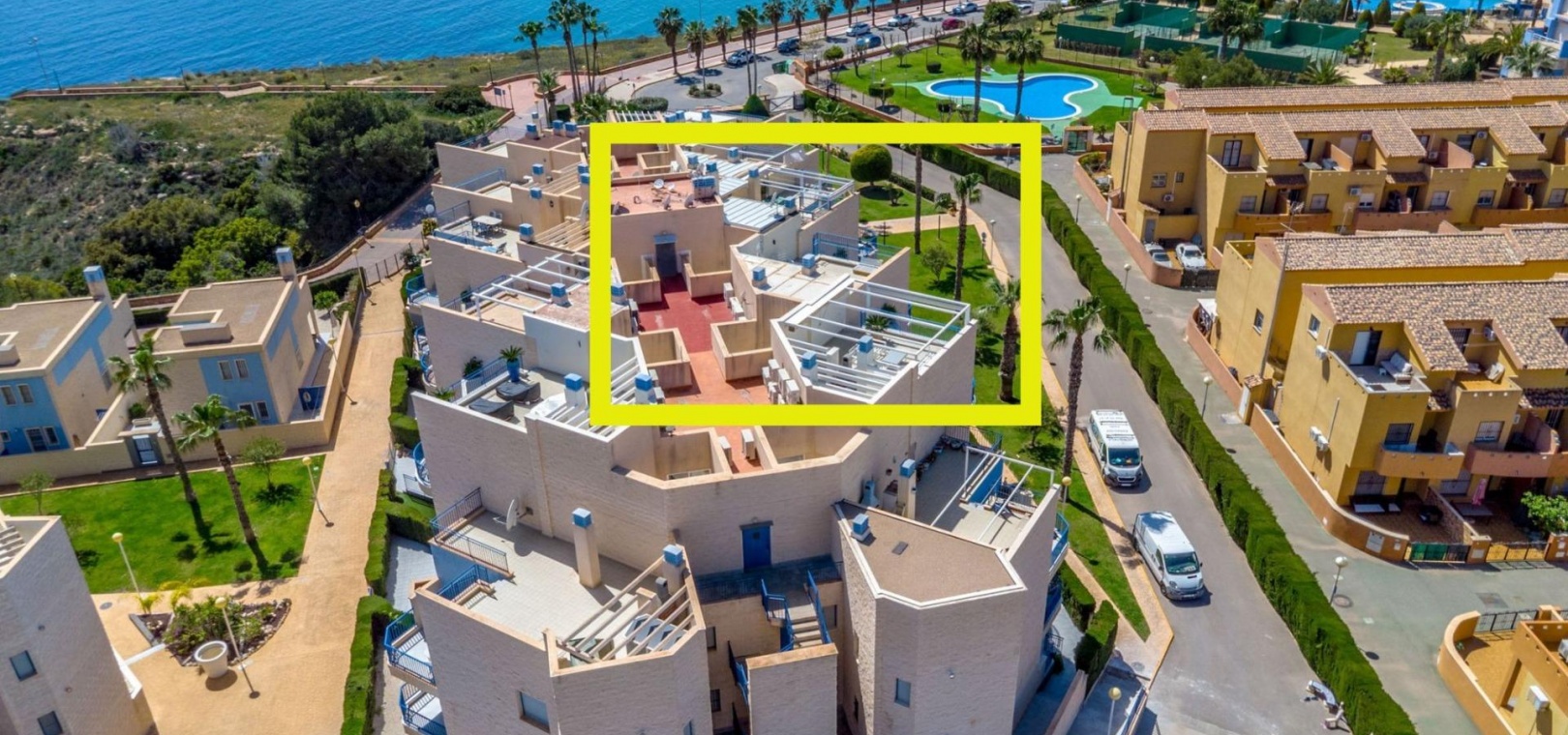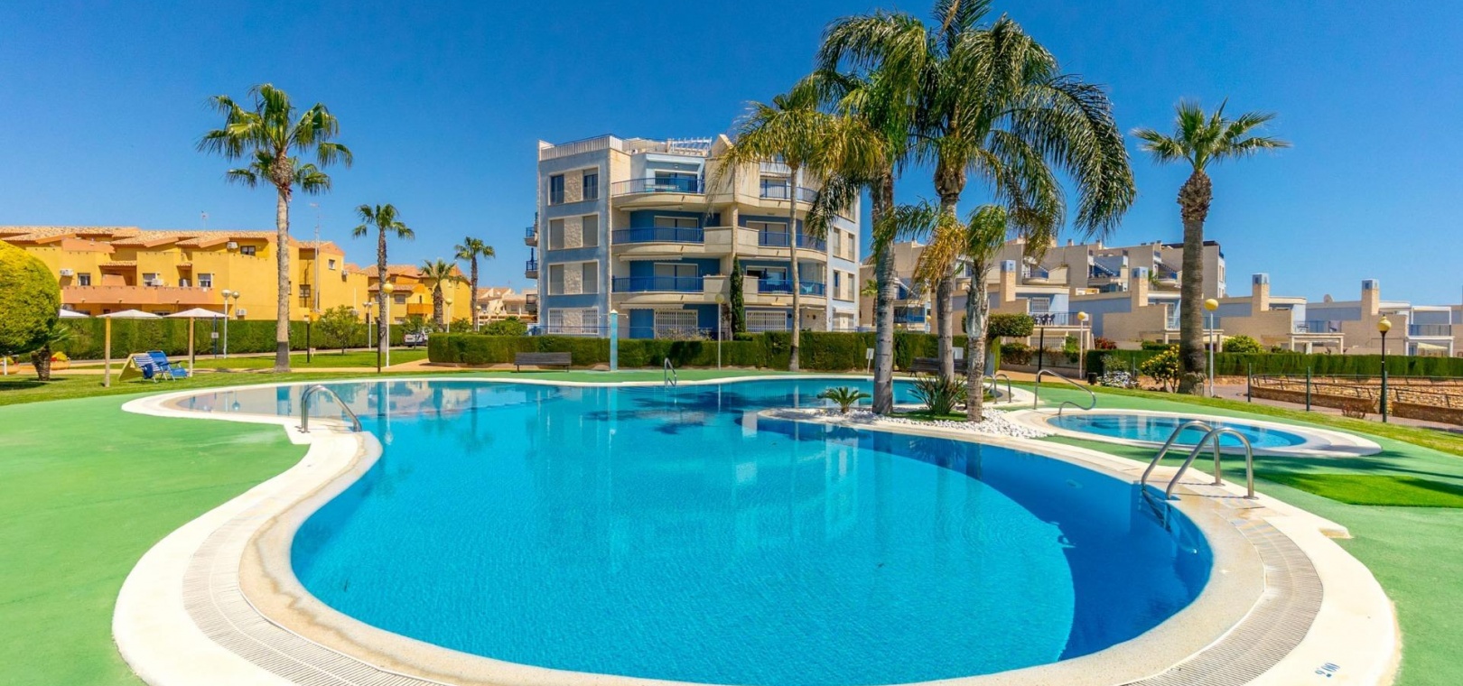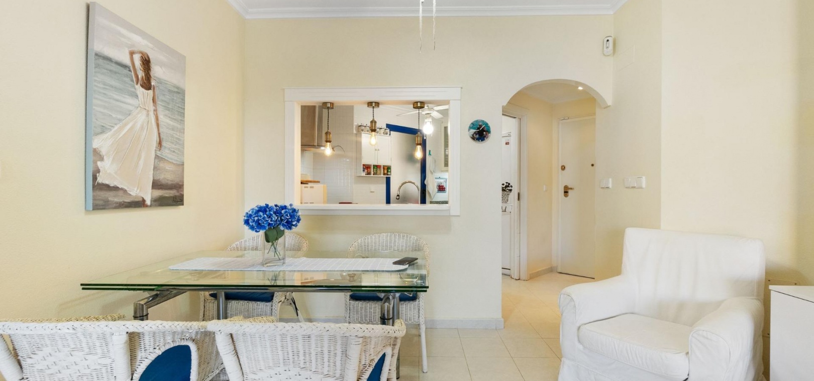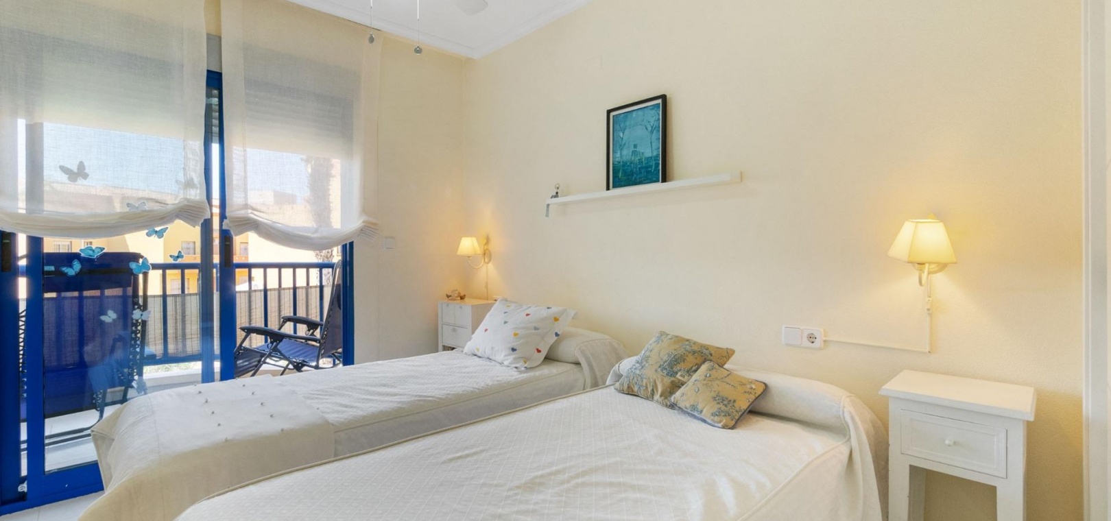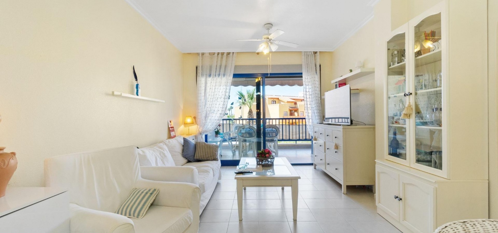 Denna rymliga och ljusa lägenhet ligger i det exklusiva bostadskomplexet Aguamarina, Punta Glea, vid stranden, med direkt tillgång till strandpromenaden. Ligger på första våningen, vetter mot sydost för att njuta av solen nästan hela dagen. Med en yta på 78 m² har den en mycket bekväm layout som erbjuder komfort och funktionalitet.~Lägenheten har två stora sovrum, alla med inbyggda garderober, som ger gott om förvaringsutrymme, och två kompletta badrum.~Det separata köket är fullt utrustat och inkluderar en tvättstuga. Ett ljust vardagsrum/matsal och en stor terrass, som nås från vardagsrummet och sovrummet, är den perfekta platsen för att njuta av utsikten över komplexets trädgårdar och havet. Lägenheten säljs delvis möblerad och har luftkonditionering. Lägenheten kommer också med en parkeringsplats i det underjordiska garaget. ~ Bostadskomplexet har en spektakulär pool, omgiven av trädgårdar, perfekt för att njuta av soliga dagar och koppla av bara några steg från havet. Ett oslagbart läge, med bekvämligheten att vara precis vid stranden och med alla bekvämligheter inom gångavstånd.~