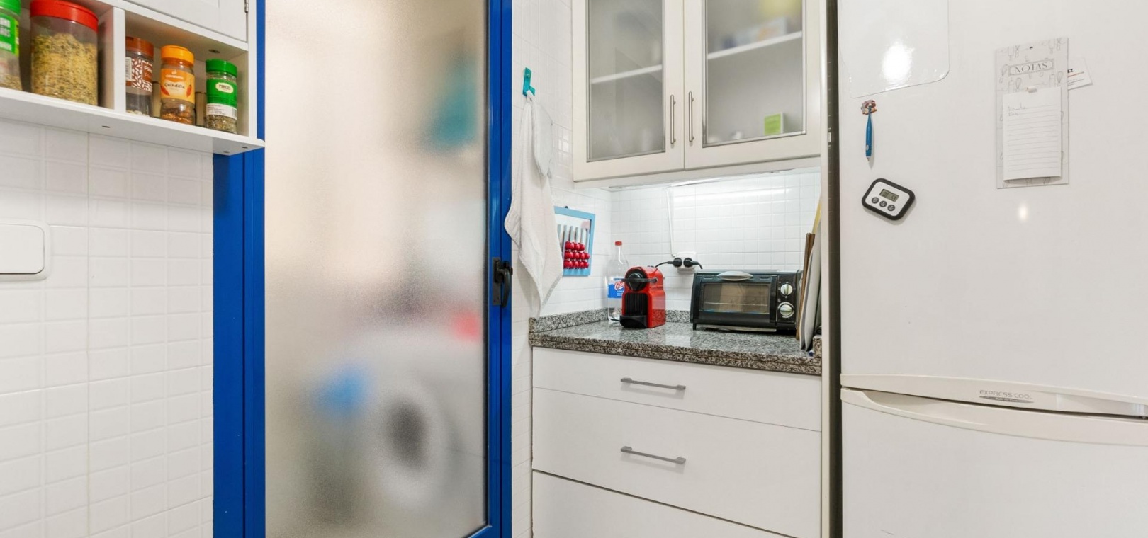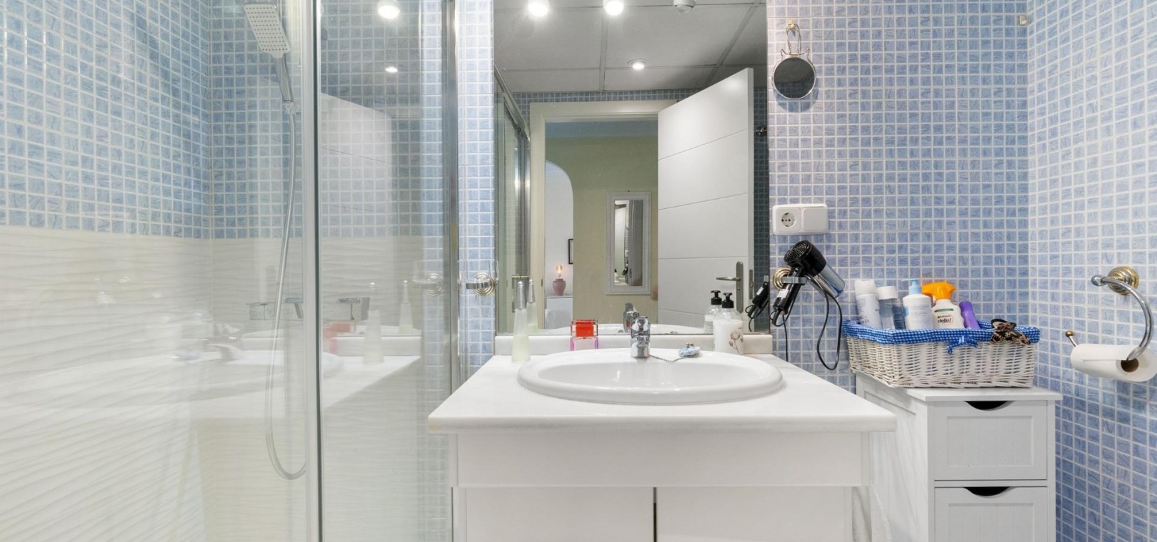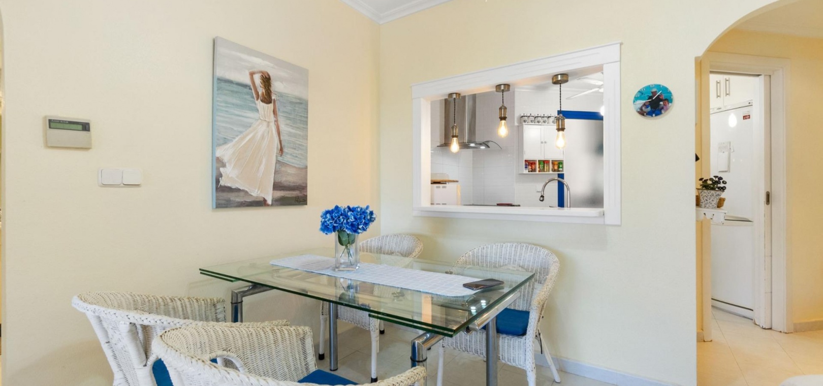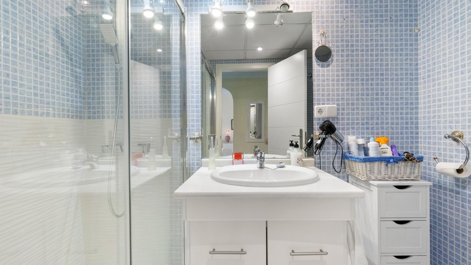 Denna rymliga och ljusa lägenhet ligger i det exklusiva bostadskomplexet Aguamarina, Punta Glea, vid stranden, med direkt tillgång till strandpromenaden. Ligger på första våningen, vetter mot sydost för att njuta av solen nästan hela dagen. Med en yta på 78 m² har den en mycket bekväm layout som erbjuder komfort och funktionalitet.~Lägenheten har två stora sovrum, alla med inbyggda garderober, som ger gott om förvaringsutrymme, och två kompletta badrum.~Det separata köket är fullt utrustat och inkluderar en tvättstuga. Ett ljust vardagsrum/matsal och en stor terrass, som nås från vardagsrummet och sovrummet, är den perfekta platsen för att njuta av utsikten över komplexets trädgårdar och havet. Lägenheten säljs delvis möblerad och har luftkonditionering. Lägenheten kommer också med en parkeringsplats i det underjordiska garaget. ~ Bostadskomplexet har en spektakulär pool, omgiven av trädgårdar, perfekt för att njuta av soliga dagar och koppla av bara några steg från havet. Ett oslagbart läge, med bekvämligheten att vara precis vid stranden och med alla bekvämligheter inom gångavstånd.~