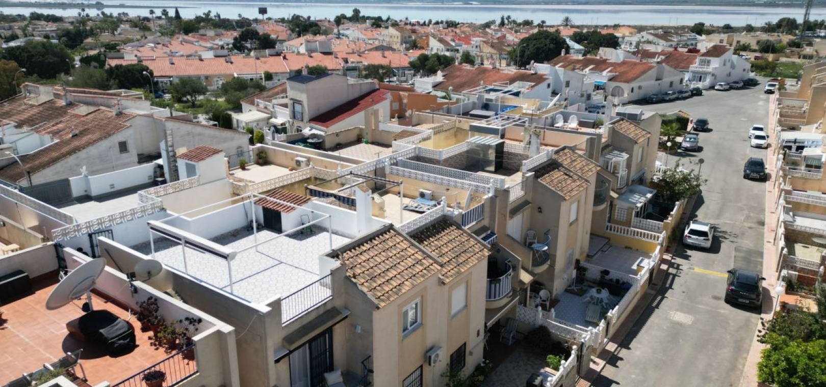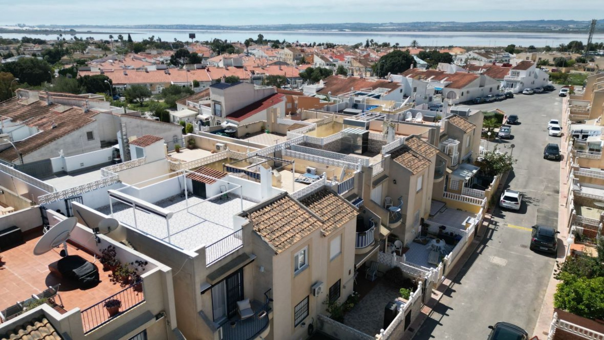 Stort solarium med fantastisk utsikt över Torreviejas rosa lagun och solljus hela dagen