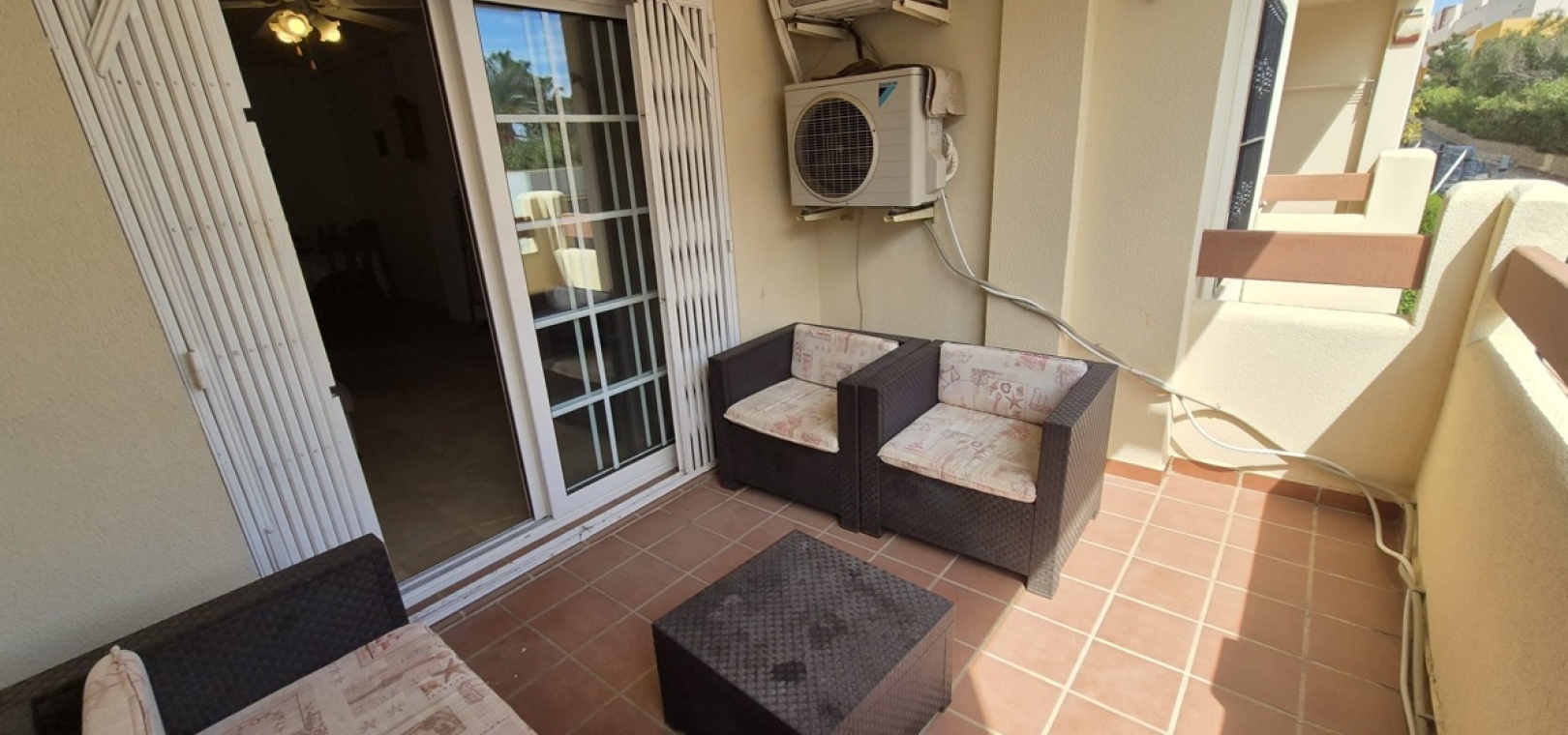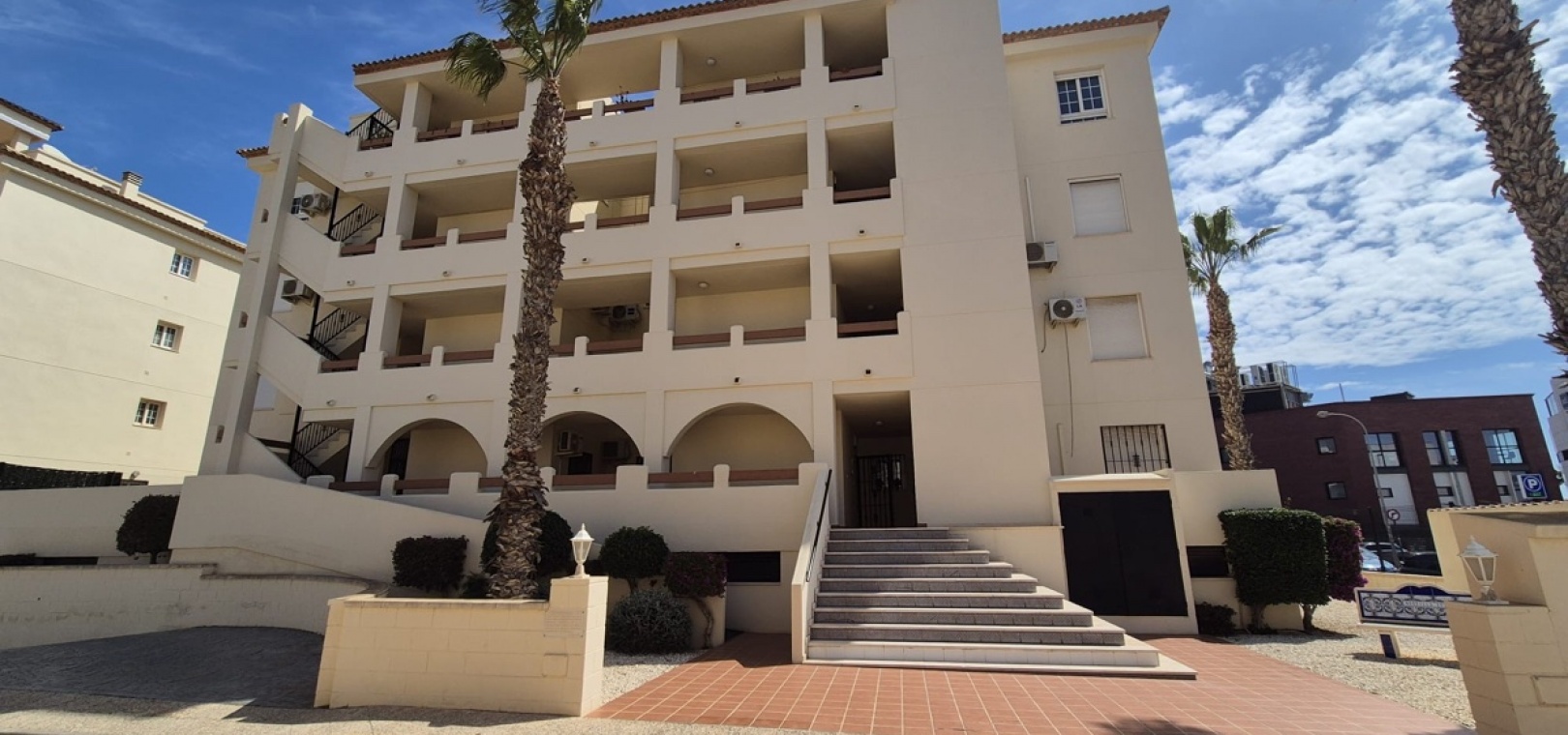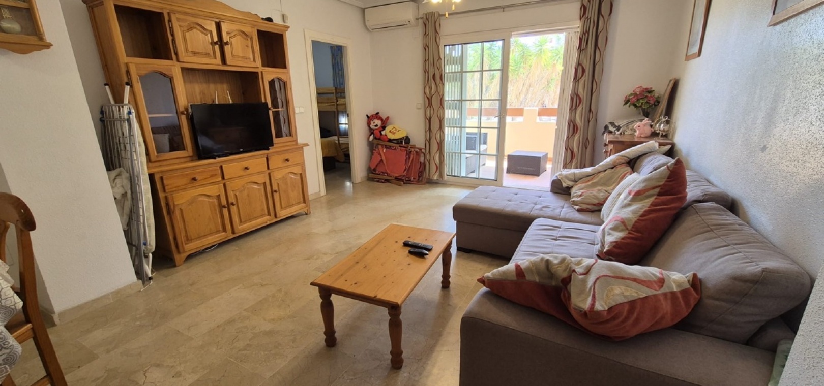En lägenhet med 2 sovrum och 2 badrum på bottenvåningen i Res. Montilla, Playa Flamenca, Costa Blanca South.