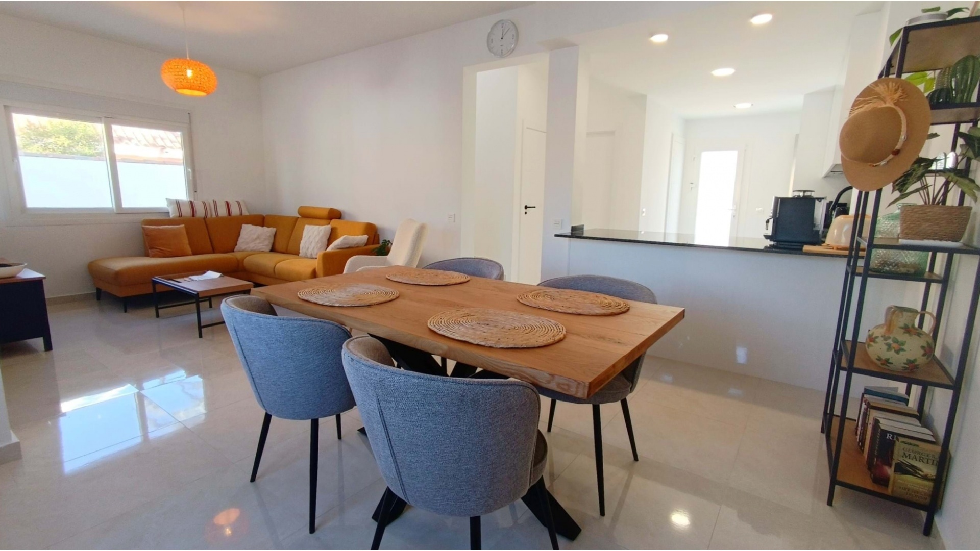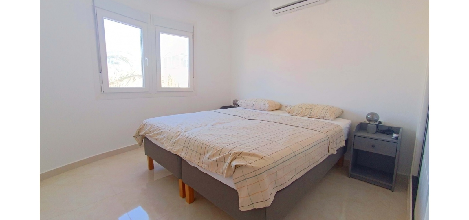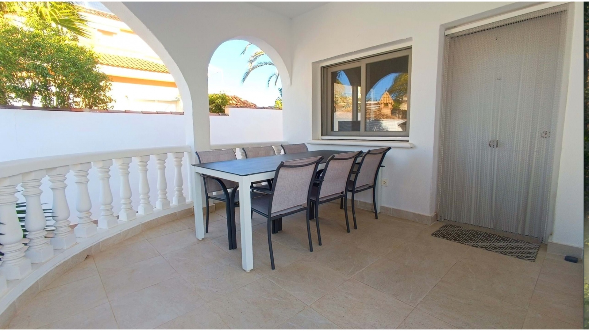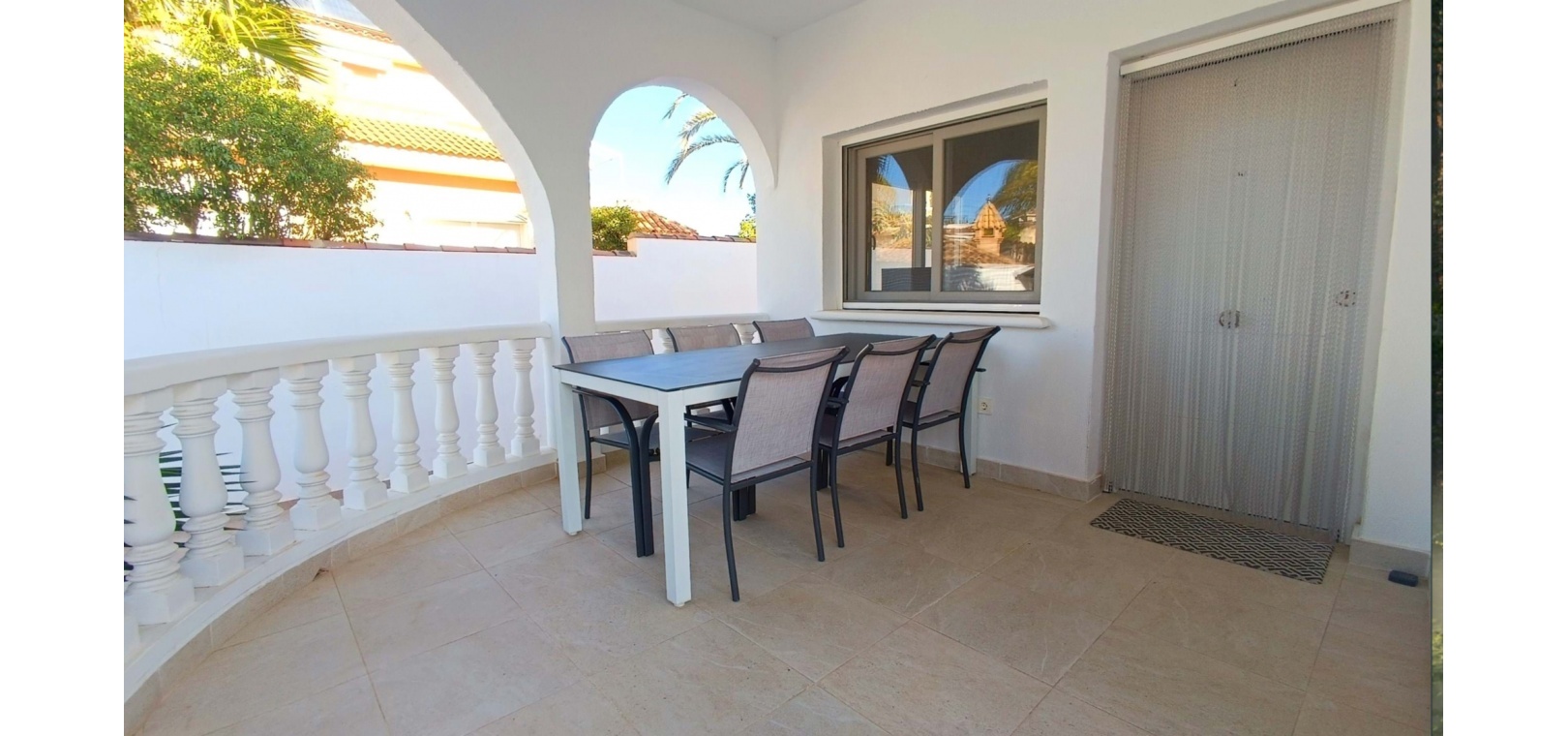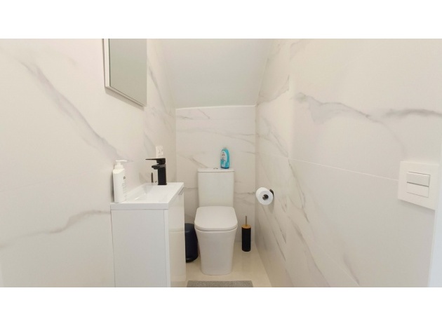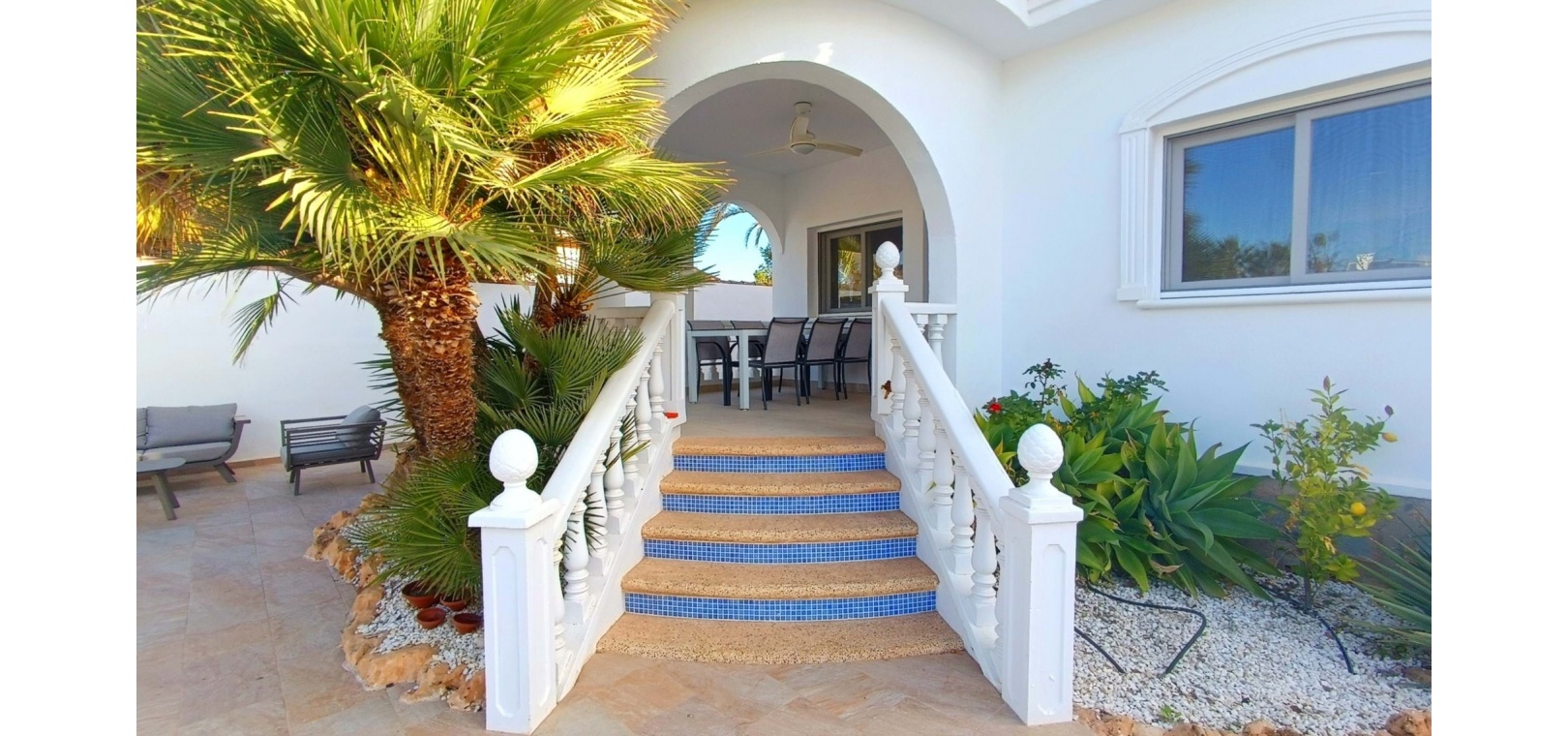 Vi är glada över att kunna presentera denna vackert renoverade fristående villa med 3 sovrum och 1,5 badrum, belägen i det mycket eftertraktade området La Fiesta, Ciudad Quesada. Detta fantastiska hem har totalförvandlats både inifrån och ut, och erbjuder modern komfort och stil genomgående. Beläget på en generös tomt på 384 m², välkomnar fastigheten dig med privata grindar som leder till en glittrande pool med jacuzzi, omgiven av flera utomhussittplatser och gott om förvaring. Den noggrant designade trädgården blandar kaklade och gröna ytor och skapar en lugn oas perfekt för avkoppling och underhållning. Entrén har en charmig, rund, täckt veranda, perfekt för att njuta av måltider utomhus eller underhålla medan du har utsikt över poolen och lummiga palmer. Inuti har det rymliga vardagsrummet och matsalen i öppen planlösning rikligt med naturligt ljus, sömlöst anslutet till ett moderniserat kök med grovkök och direkt tillgång till den bakre grillplatsen. Bottenvåningen har ett helt renoverat vardagsrum och matsal i öppen planlösning med fantastiskt kök som når trädgården på baksidan och har ett användbart grovkök, denna nivå innehåller också ett stort dubbelrum och en bekväm separat toalett. Gå upp för trappan med sina eleganta glaspaneler för att hitta ytterligare två generöst tilltagna dubbelrum och ett lyxigt familjebadrum. Det stora sovrummet har direkt tillgång till en privat terrass, perfekt för att njuta av det spanska solskenet. Denna villa är fullspäckad med extrafunktioner, inklusive ett förstklassigt larmsystem, mygggardiner, luftkonditionering i alla sovrum och loungen, en ny poolpump och mycket mer. Bekvämt beläget inom gångavstånd från lokala bekvämligheter, det är bara 5 minuters bilresa till golfbanan La Marquesa, 5 minuter till Quesada High Street och bara 8 minuter till de fantastiska stränderna i Guardamar del Segura.