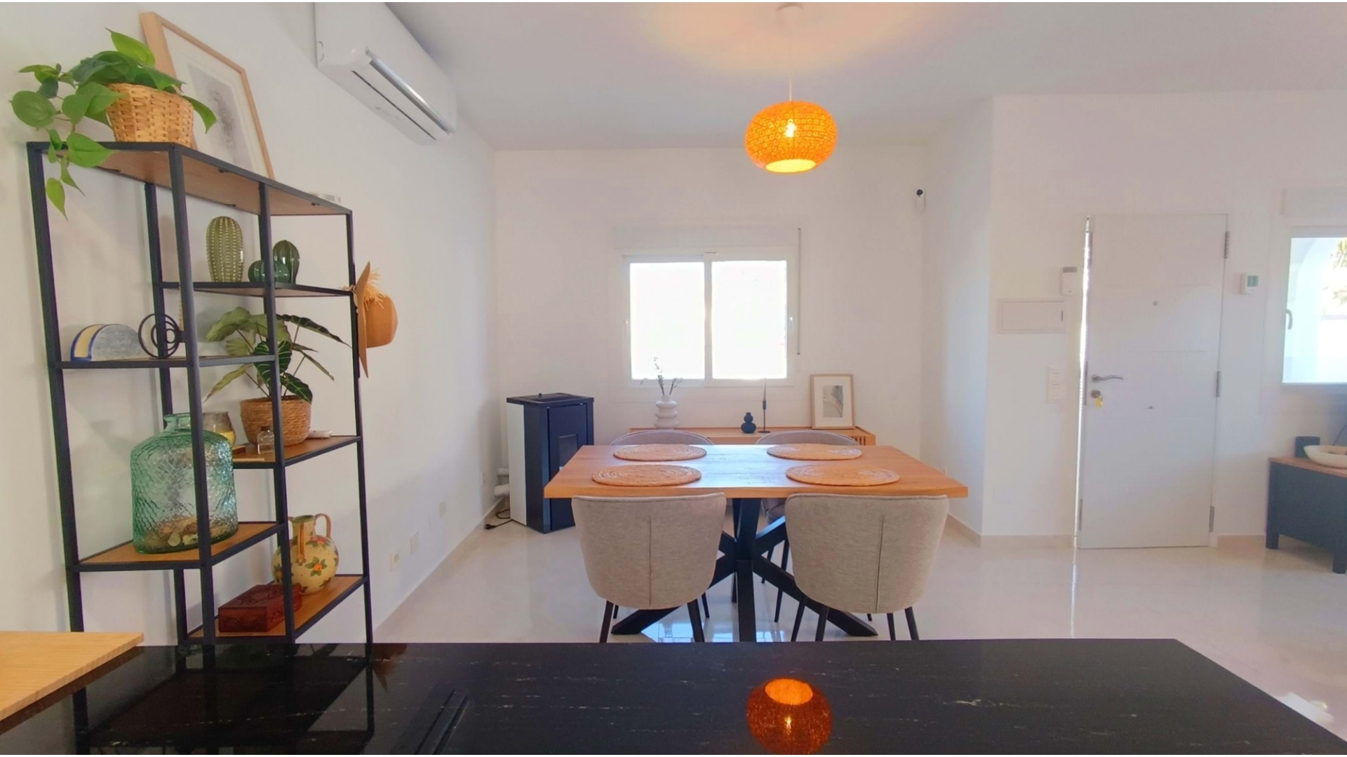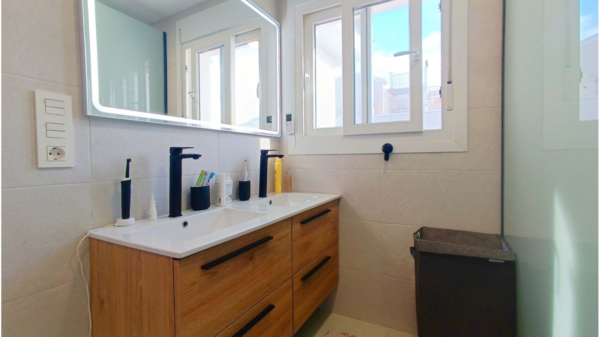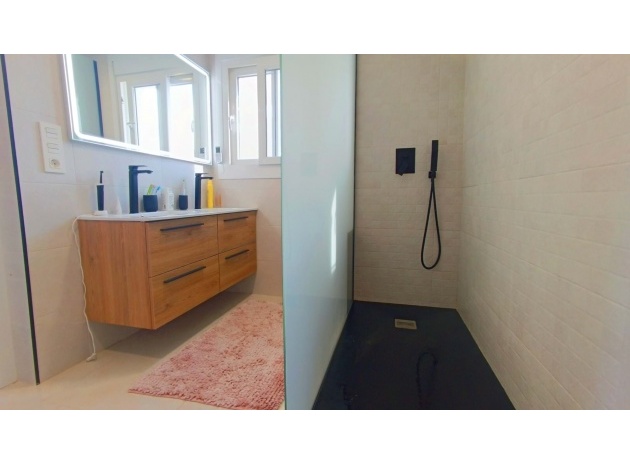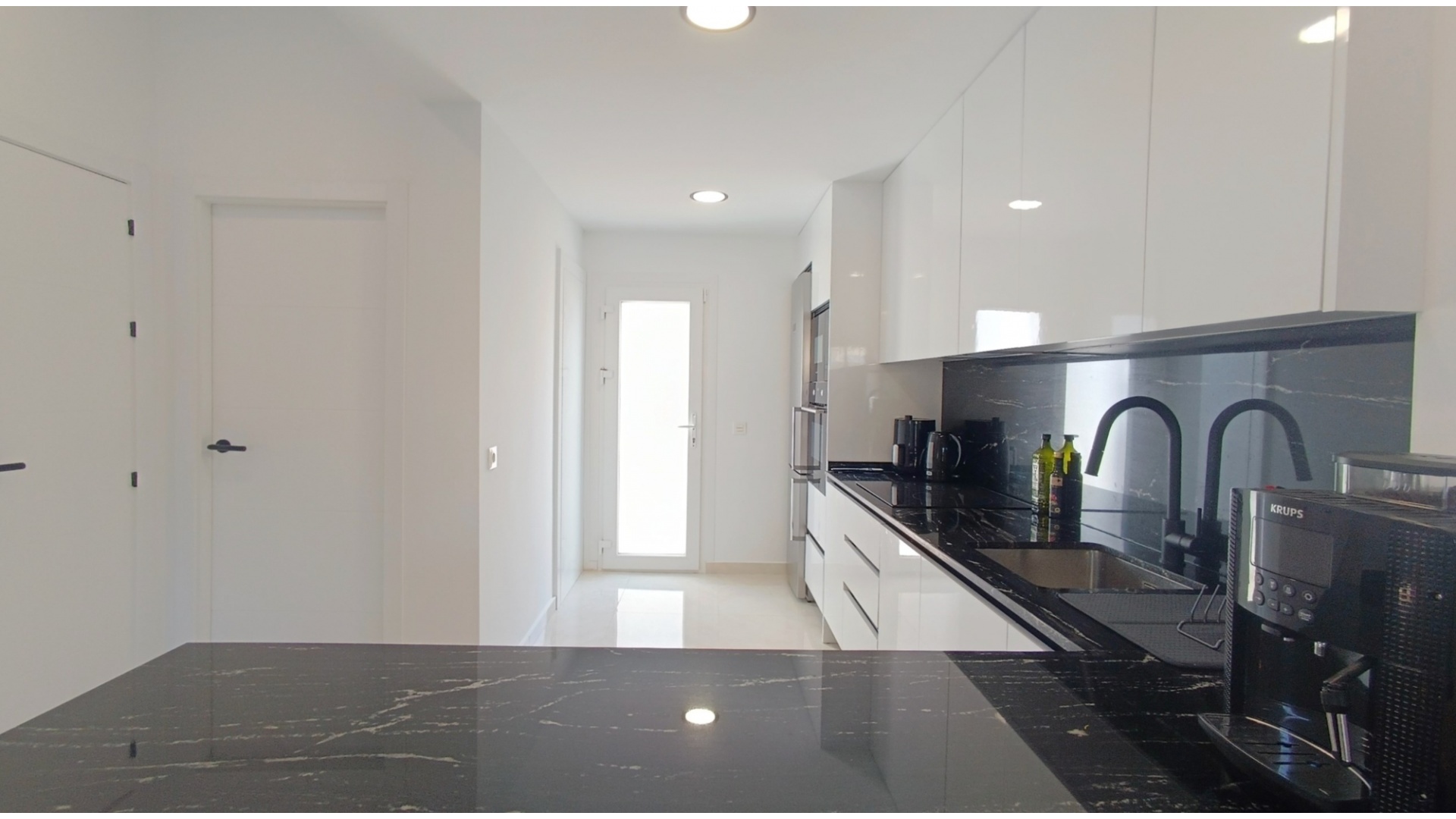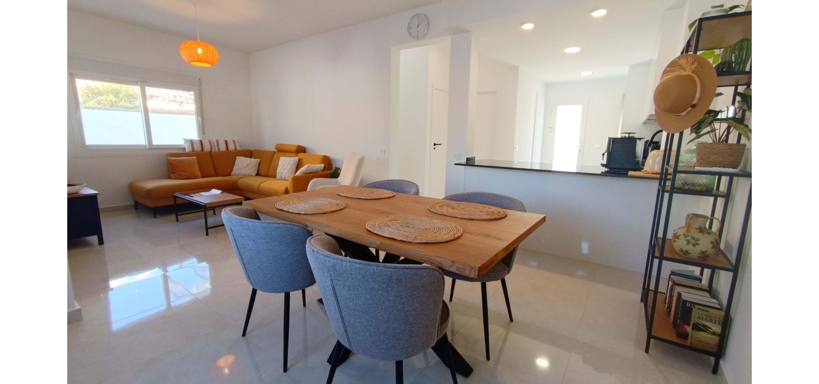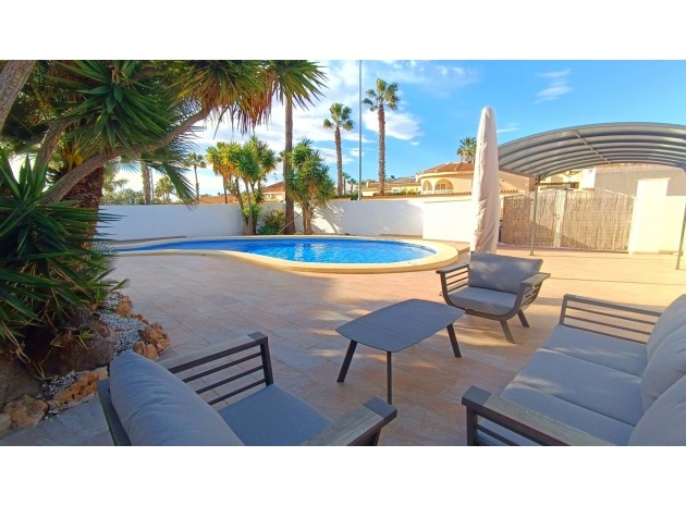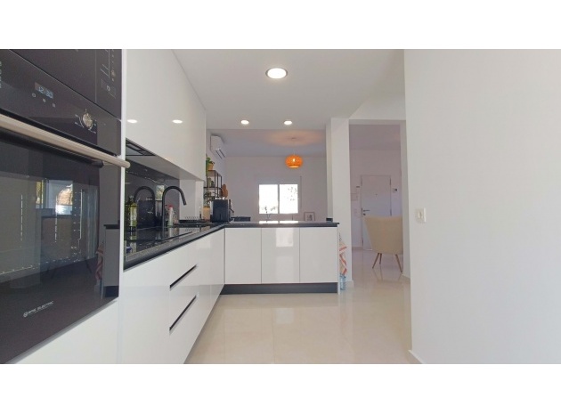 Vi är glada över att kunna presentera denna vackert renoverade fristående villa med 3 sovrum och 1,5 badrum, belägen i det mycket eftertraktade området La Fiesta, Ciudad Quesada. Detta fantastiska hem har totalförvandlats både inifrån och ut, och erbjuder modern komfort och stil genomgående. Beläget på en generös tomt på 384 m², välkomnar fastigheten dig med privata grindar som leder till en glittrande pool med jacuzzi, omgiven av flera utomhussittplatser och gott om förvaring. Den noggrant designade trädgården blandar kaklade och gröna ytor och skapar en lugn oas perfekt för avkoppling och underhållning. Entrén har en charmig, rund, täckt veranda, perfekt för att njuta av måltider utomhus eller underhålla medan du har utsikt över poolen och lummiga palmer. Inuti har det rymliga vardagsrummet och matsalen i öppen planlösning rikligt med naturligt ljus, sömlöst anslutet till ett moderniserat kök med grovkök och direkt tillgång till den bakre grillplatsen. Bottenvåningen har ett helt renoverat vardagsrum och matsal i öppen planlösning med fantastiskt kök som når trädgården på baksidan och har ett användbart grovkök, denna nivå innehåller också ett stort dubbelrum och en bekväm separat toalett. Gå upp för trappan med sina eleganta glaspaneler för att hitta ytterligare två generöst tilltagna dubbelrum och ett lyxigt familjebadrum. Det stora sovrummet har direkt tillgång till en privat terrass, perfekt för att njuta av det spanska solskenet. Denna villa är fullspäckad med extrafunktioner, inklusive ett förstklassigt larmsystem, mygggardiner, luftkonditionering i alla sovrum och loungen, en ny poolpump och mycket mer. Bekvämt beläget inom gångavstånd från lokala bekvämligheter, det är bara 5 minuters bilresa till golfbanan La Marquesa, 5 minuter till Quesada High Street och bara 8 minuter till de fantastiska stränderna i Guardamar del Segura.