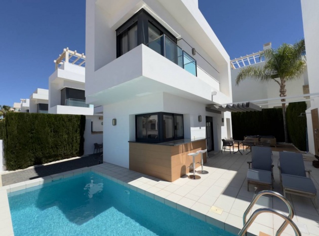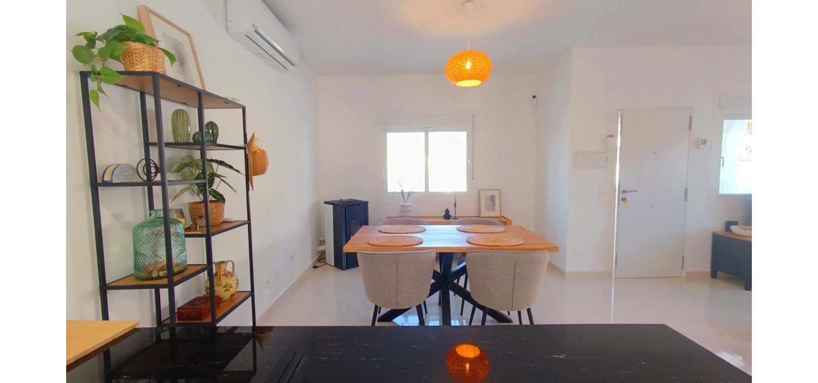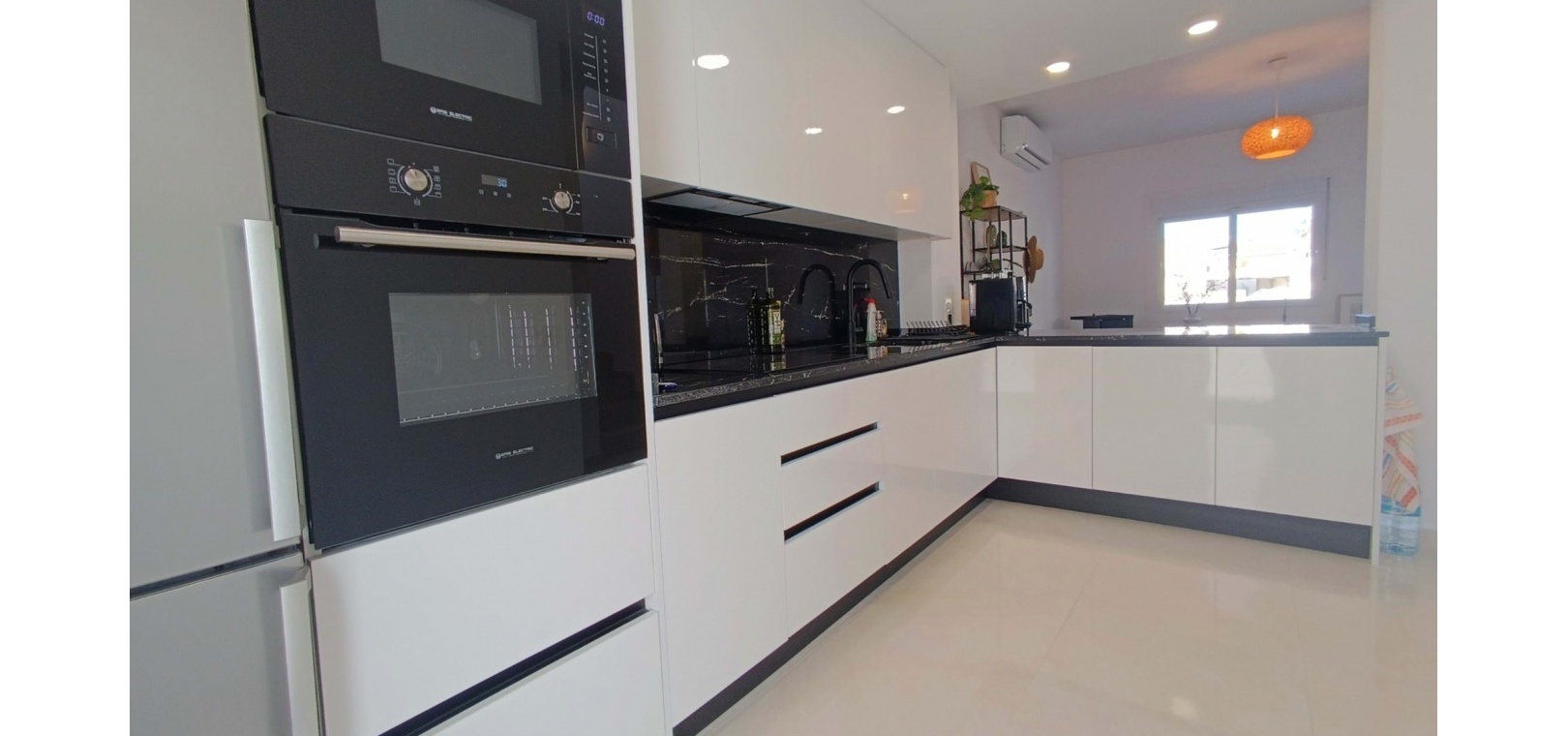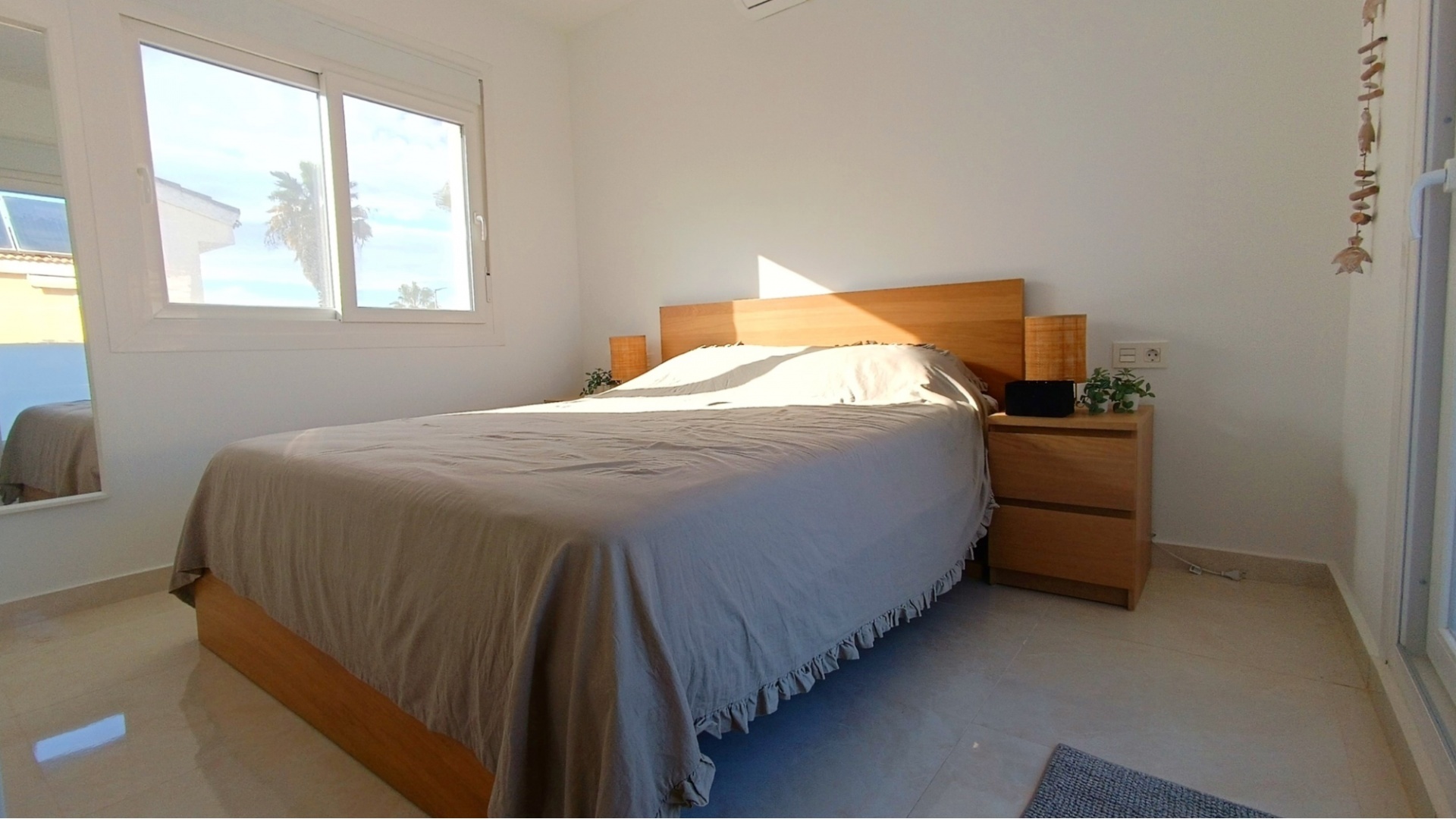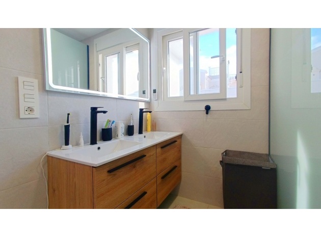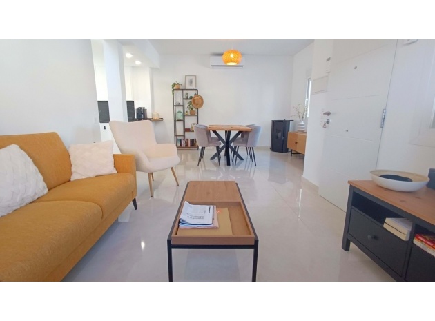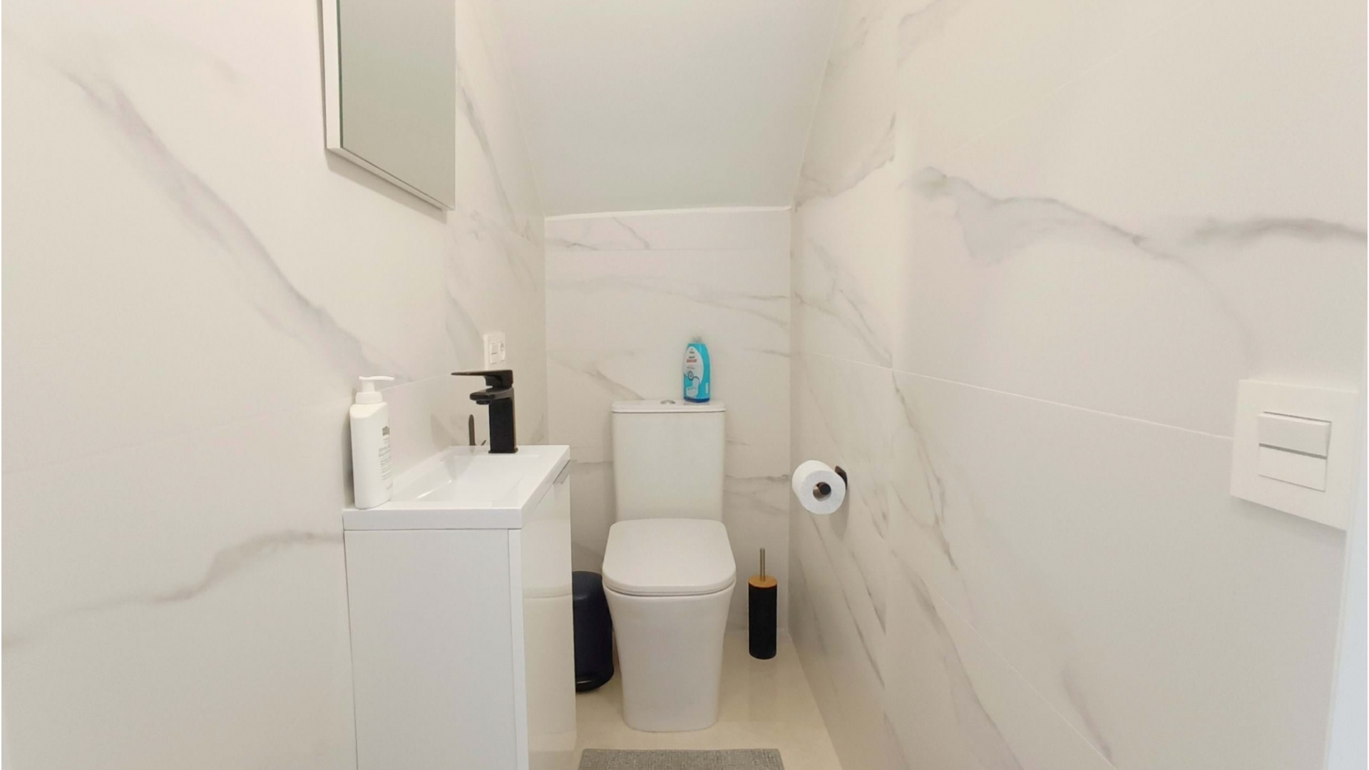 Vi är glada över att kunna presentera denna vackert renoverade fristående villa med 3 sovrum och 1,5 badrum, belägen i det mycket eftertraktade området La Fiesta, Ciudad Quesada. Detta fantastiska hem har totalförvandlats både inifrån och ut, och erbjuder modern komfort och stil genomgående. Beläget på en generös tomt på 384 m², välkomnar fastigheten dig med privata grindar som leder till en glittrande pool med jacuzzi, omgiven av flera utomhussittplatser och gott om förvaring. Den noggrant designade trädgården blandar kaklade och gröna ytor och skapar en lugn oas perfekt för avkoppling och underhållning. Entrén har en charmig, rund, täckt veranda, perfekt för att njuta av måltider utomhus eller underhålla medan du har utsikt över poolen och lummiga palmer. Inuti har det rymliga vardagsrummet och matsalen i öppen planlösning rikligt med naturligt ljus, sömlöst anslutet till ett moderniserat kök med grovkök och direkt tillgång till den bakre grillplatsen. Bottenvåningen har ett helt renoverat vardagsrum och matsal i öppen planlösning med fantastiskt kök som når trädgården på baksidan och har ett användbart grovkök, denna nivå innehåller också ett stort dubbelrum och en bekväm separat toalett. Gå upp för trappan med sina eleganta glaspaneler för att hitta ytterligare två generöst tilltagna dubbelrum och ett lyxigt familjebadrum. Det stora sovrummet har direkt tillgång till en privat terrass, perfekt för att njuta av det spanska solskenet. Denna villa är fullspäckad med extrafunktioner, inklusive ett förstklassigt larmsystem, mygggardiner, luftkonditionering i alla sovrum och loungen, en ny poolpump och mycket mer. Bekvämt beläget inom gångavstånd från lokala bekvämligheter, det är bara 5 minuters bilresa till golfbanan La Marquesa, 5 minuter till Quesada High Street och bara 8 minuter till de fantastiska stränderna i Guardamar del Segura.