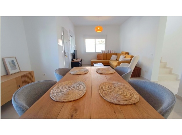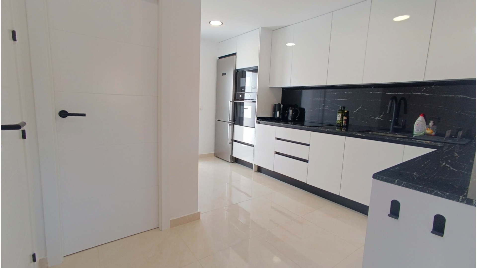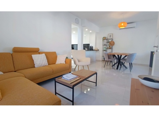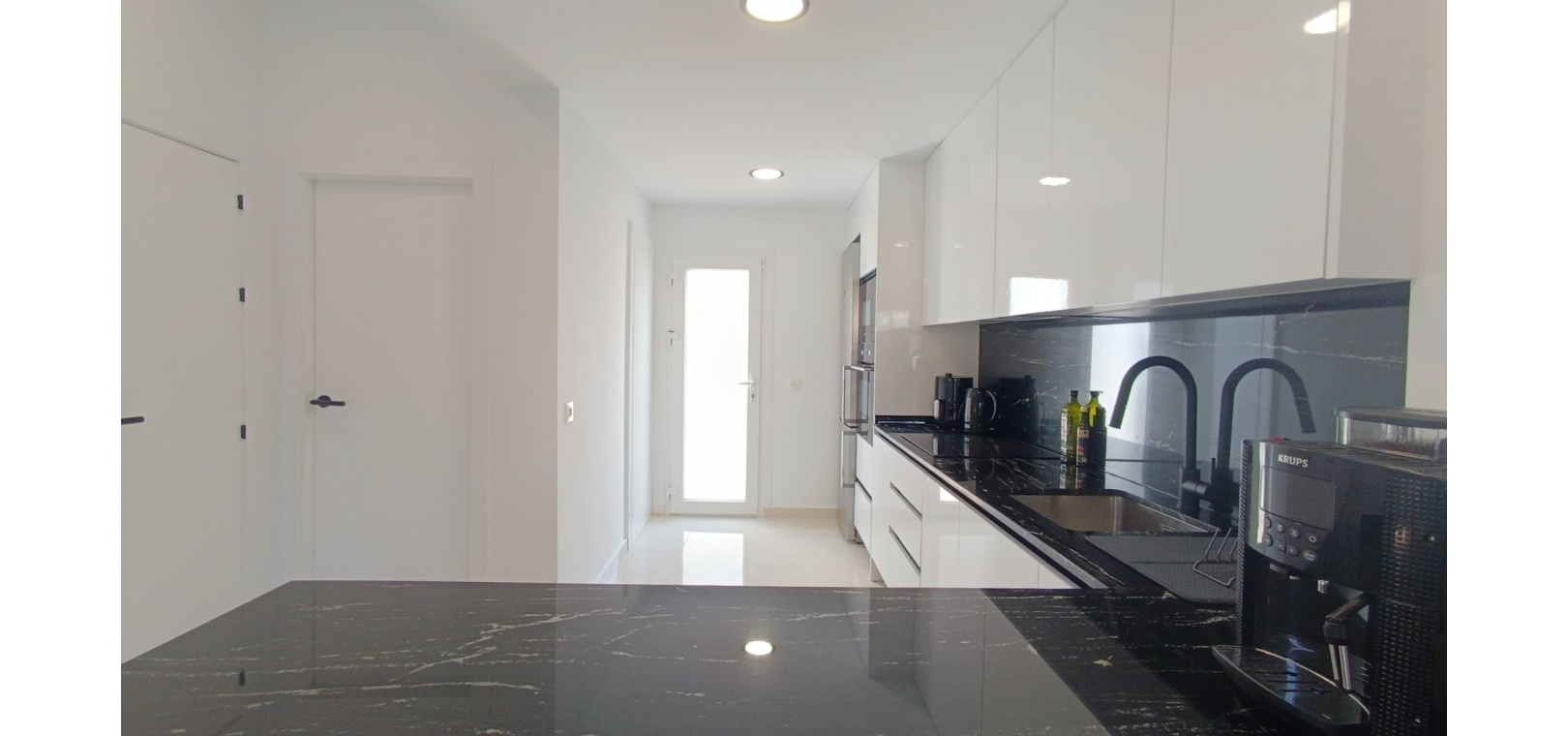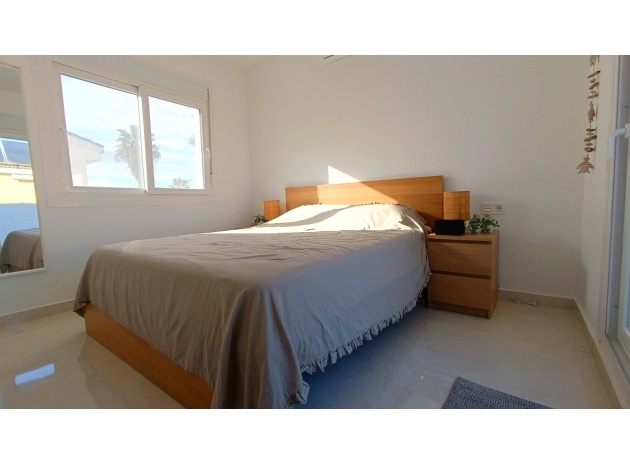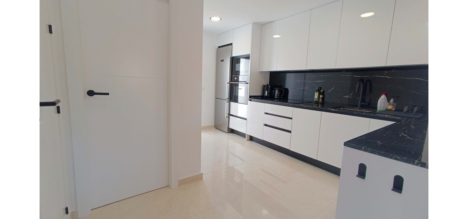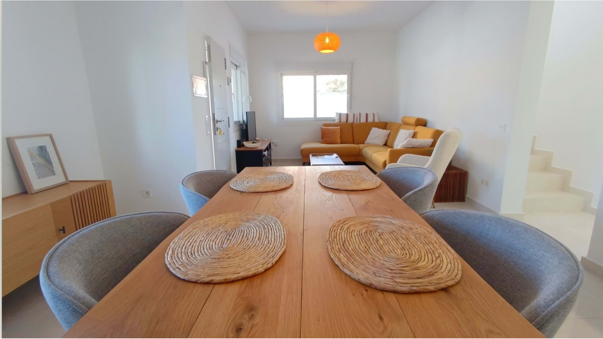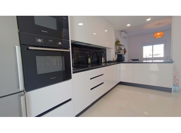 Vi är glada över att kunna presentera denna vackert renoverade fristående villa med 3 sovrum och 1,5 badrum, belägen i det mycket eftertraktade området La Fiesta, Ciudad Quesada. Detta fantastiska hem har totalförvandlats både inifrån och ut, och erbjuder modern komfort och stil genomgående. Beläget på en generös tomt på 384 m², välkomnar fastigheten dig med privata grindar som leder till en glittrande pool med jacuzzi, omgiven av flera utomhussittplatser och gott om förvaring. Den noggrant designade trädgården blandar kaklade och gröna ytor och skapar en lugn oas perfekt för avkoppling och underhållning. Entrén har en charmig, rund, täckt veranda, perfekt för att njuta av måltider utomhus eller underhålla medan du har utsikt över poolen och lummiga palmer. Inuti har det rymliga vardagsrummet och matsalen i öppen planlösning rikligt med naturligt ljus, sömlöst anslutet till ett moderniserat kök med grovkök och direkt tillgång till den bakre grillplatsen. Bottenvåningen har ett helt renoverat vardagsrum och matsal i öppen planlösning med fantastiskt kök som når trädgården på baksidan och har ett användbart grovkök, denna nivå innehåller också ett stort dubbelrum och en bekväm separat toalett. Gå upp för trappan med sina eleganta glaspaneler för att hitta ytterligare två generöst tilltagna dubbelrum och ett lyxigt familjebadrum. Det stora sovrummet har direkt tillgång till en privat terrass, perfekt för att njuta av det spanska solskenet. Denna villa är fullspäckad med extrafunktioner, inklusive ett förstklassigt larmsystem, mygggardiner, luftkonditionering i alla sovrum och loungen, en ny poolpump och mycket mer. Bekvämt beläget inom gångavstånd från lokala bekvämligheter, det är bara 5 minuters bilresa till golfbanan La Marquesa, 5 minuter till Quesada High Street och bara 8 minuter till de fantastiska stränderna i Guardamar del Segura.