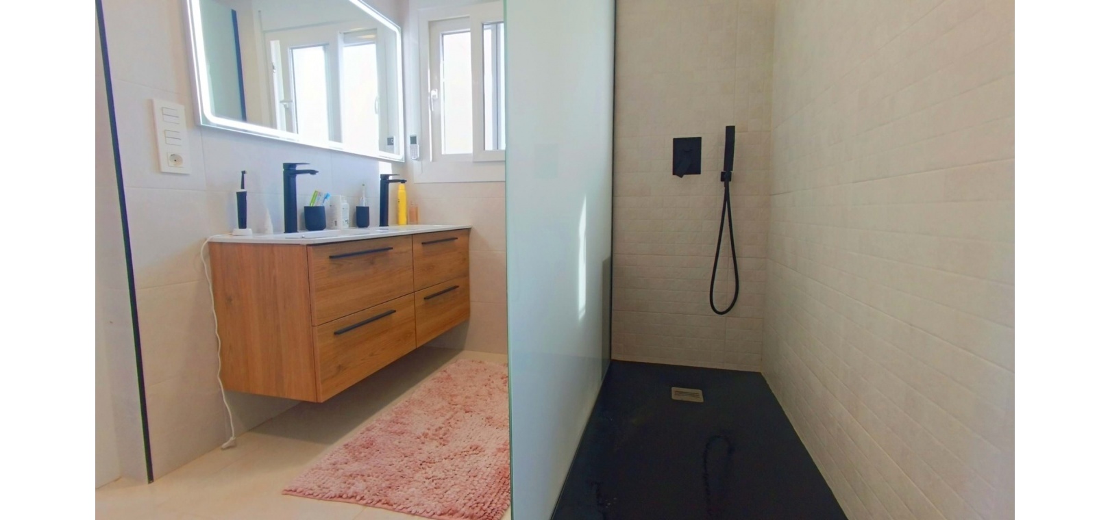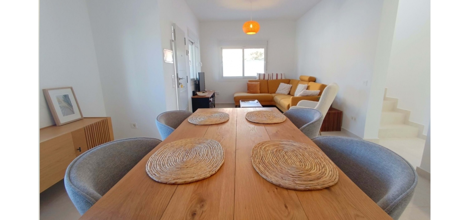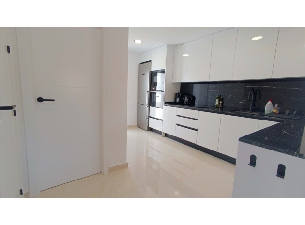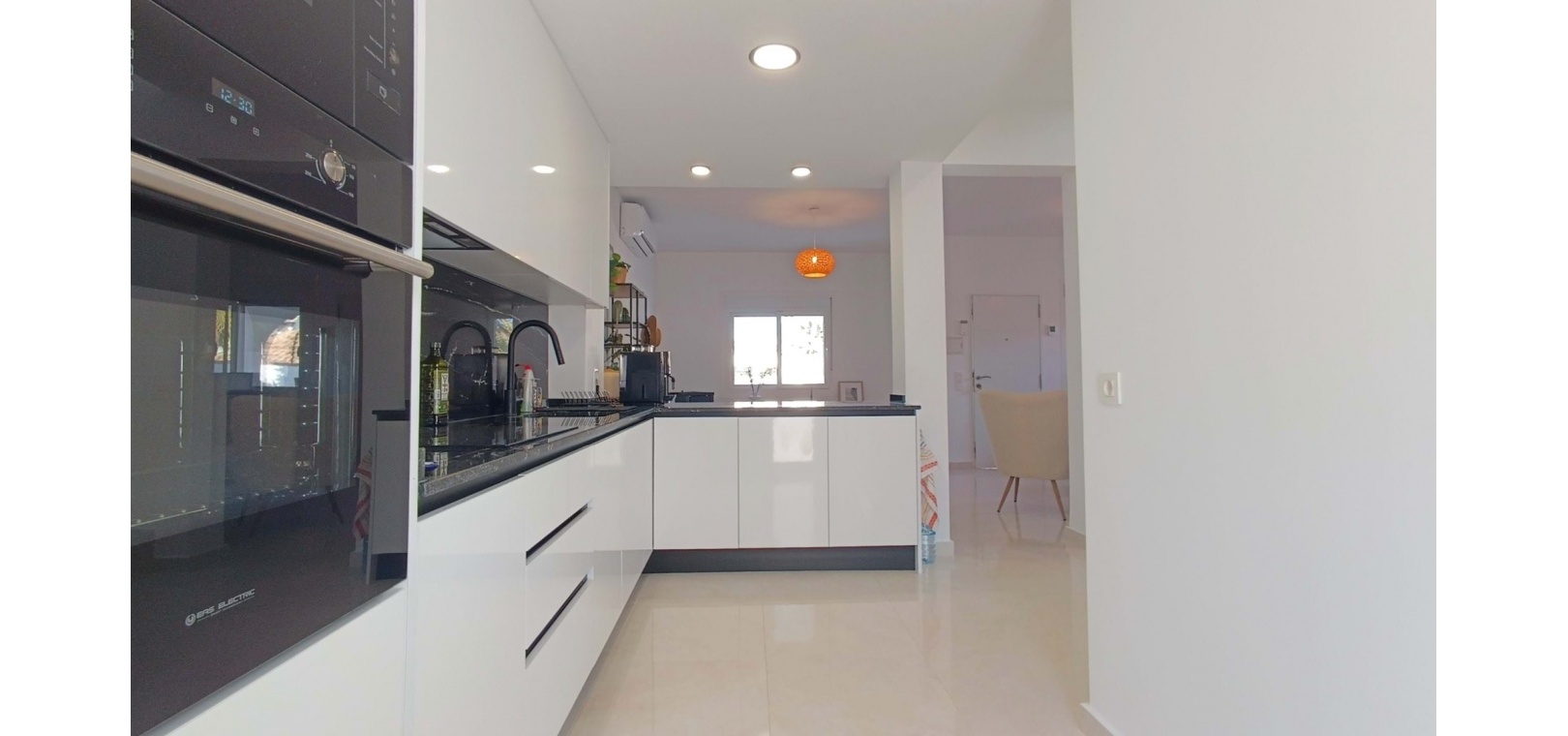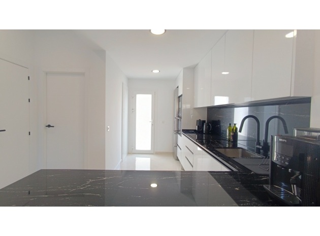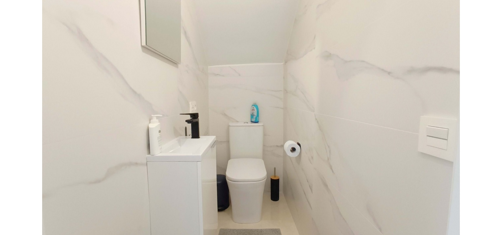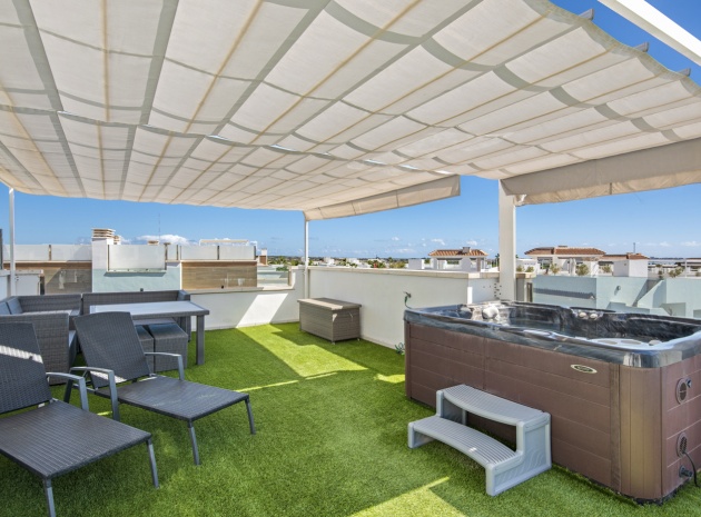 Vi är glada över att kunna presentera denna vackert renoverade fristående villa med 3 sovrum och 1,5 badrum, belägen i det mycket eftertraktade området La Fiesta, Ciudad Quesada. Detta fantastiska hem har totalförvandlats både inifrån och ut, och erbjuder modern komfort och stil genomgående. Beläget på en generös tomt på 384 m², välkomnar fastigheten dig med privata grindar som leder till en glittrande pool med jacuzzi, omgiven av flera utomhussittplatser och gott om förvaring. Den noggrant designade trädgården blandar kaklade och gröna ytor och skapar en lugn oas perfekt för avkoppling och underhållning. Entrén har en charmig, rund, täckt veranda, perfekt för att njuta av måltider utomhus eller underhålla medan du har utsikt över poolen och lummiga palmer. Inuti har det rymliga vardagsrummet och matsalen i öppen planlösning rikligt med naturligt ljus, sömlöst anslutet till ett moderniserat kök med grovkök och direkt tillgång till den bakre grillplatsen. Bottenvåningen har ett helt renoverat vardagsrum och matsal i öppen planlösning med fantastiskt kök som når trädgården på baksidan och har ett användbart grovkök, denna nivå innehåller också ett stort dubbelrum och en bekväm separat toalett. Gå upp för trappan med sina eleganta glaspaneler för att hitta ytterligare två generöst tilltagna dubbelrum och ett lyxigt familjebadrum. Det stora sovrummet har direkt tillgång till en privat terrass, perfekt för att njuta av det spanska solskenet. Denna villa är fullspäckad med extrafunktioner, inklusive ett förstklassigt larmsystem, mygggardiner, luftkonditionering i alla sovrum och loungen, en ny poolpump och mycket mer. Bekvämt beläget inom gångavstånd från lokala bekvämligheter, det är bara 5 minuters bilresa till golfbanan La Marquesa, 5 minuter till Quesada High Street och bara 8 minuter till de fantastiska stränderna i Guardamar del Segura.