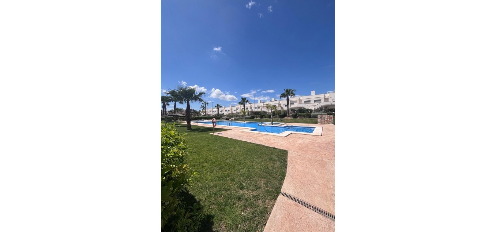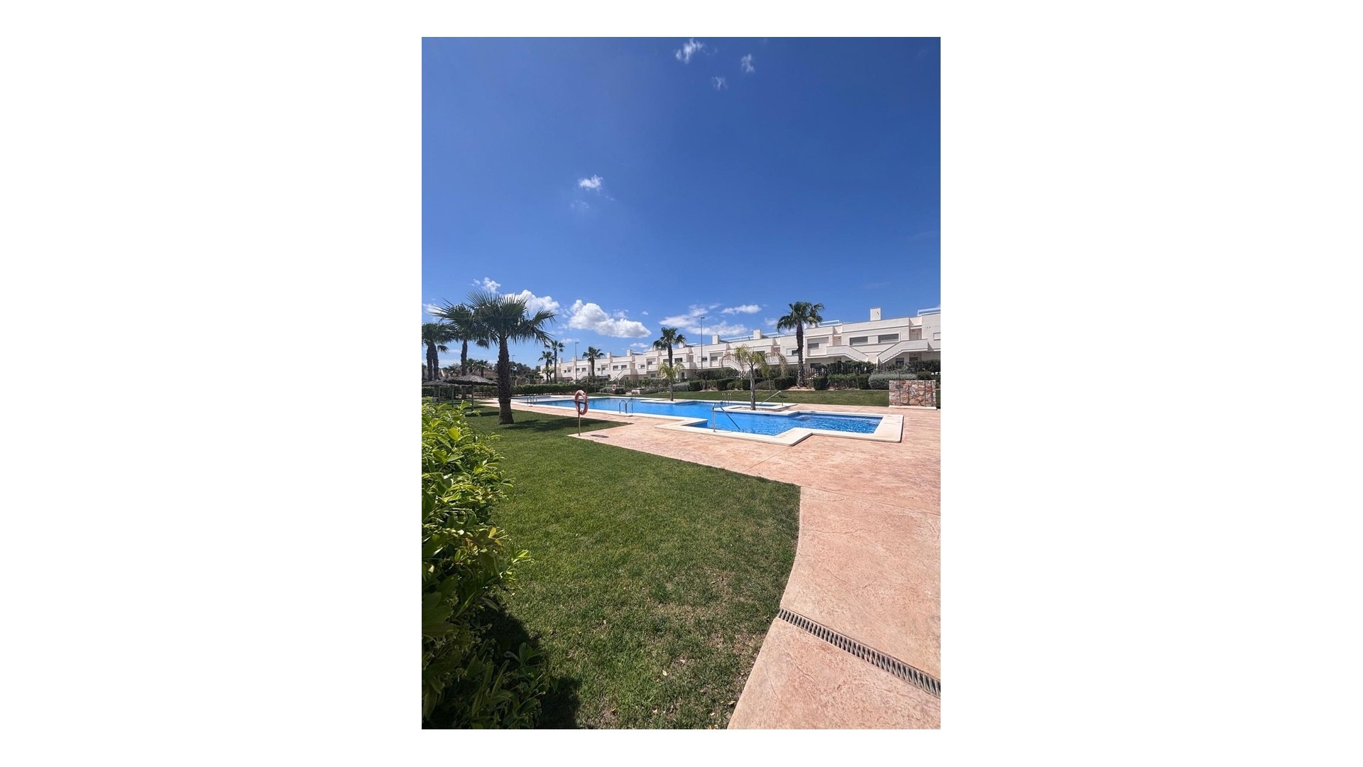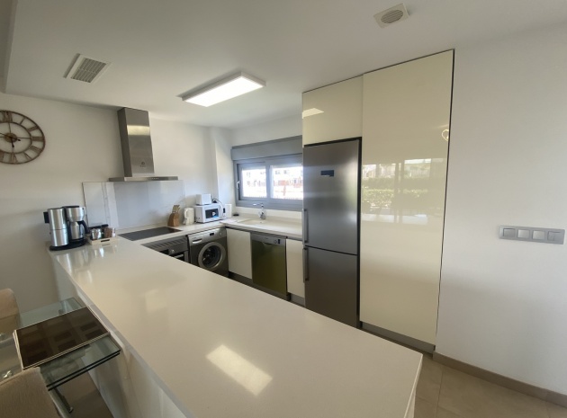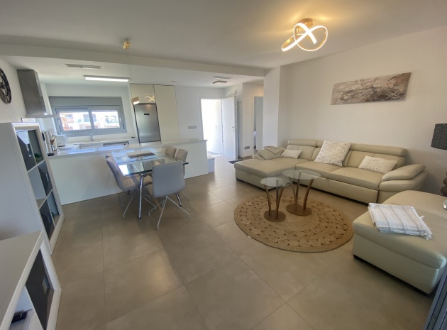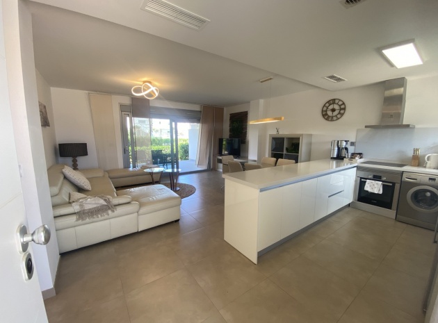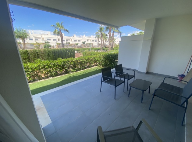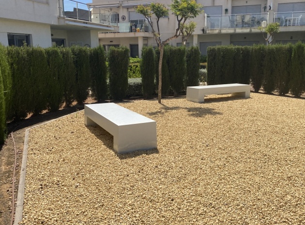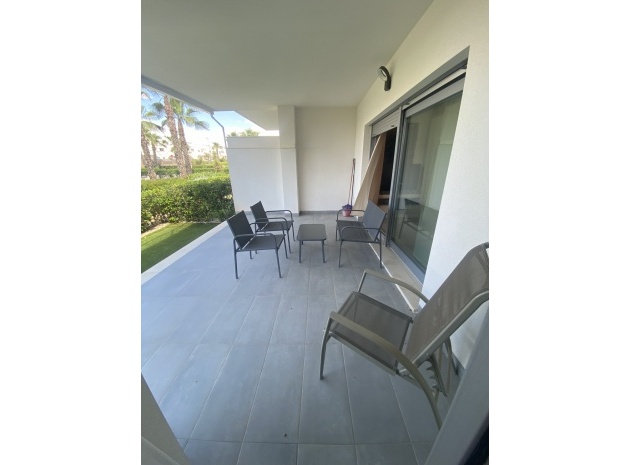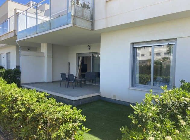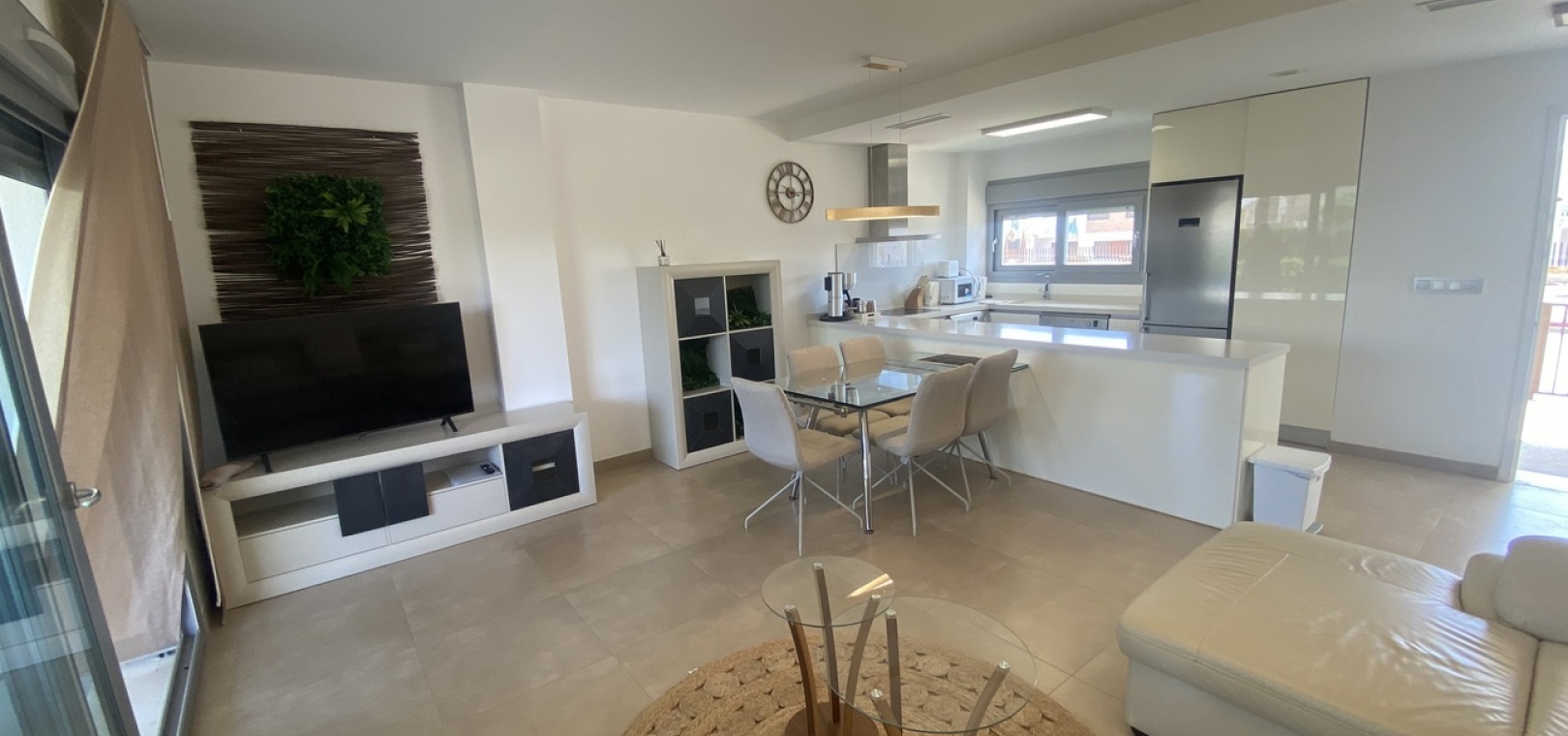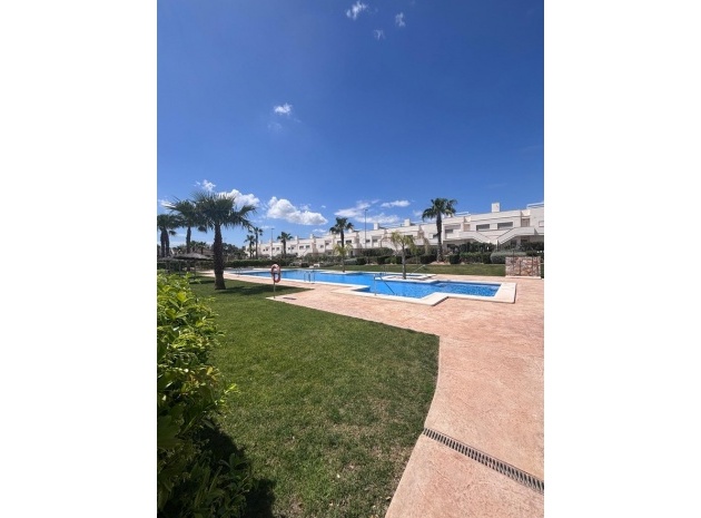 Belägen i den eftertraktade golforten Vistabella, denna oklanderligt underhållna lägenhet med 2 sovrum och 2 badrum exemplifierar symbolen för komfort och elegans. Vardagsrummet är mästerligt utformat med en öppen planlösning som harmoniserar avkoppling och funktionalitet, kompletterat med ett elegant modernt kök i amerikansk stil som är idealiskt för sammankomster och underhållning. Vart och ett av de två generöst tilltagna dubbelrummen är utrustade med inbyggda garderober, medan huvudsviten öppnar direkt mot den bakre terrassen och erbjuder en pittoresk utsikt över de noggrant anlagda trädgårdarna. Lägenheten förstärks ytterligare av rymliga inomhus- och utomhusutrymmen, inklusive en härlig framträdgård och en bakre trädgård som sömlöst ansluter till de välskötta gemensamma utrymmena och poolen. Dessutom är alla rum utrustade med både värme och luftkonditionering, vilket gör detta boende till ett utmärkt val för komfort året runt, avkopplande semester eller en lukrativ investering. Denna plats ligger inom bekvämt promenadavstånd och erbjuder en mängd faciliteter inklusive restauranger, butiker, en golfklubb och olika fritidssysselsättningar. Ta vara på detta exceptionella tillfälle att förvärva en sofistikerad och anpassningsbar fastighet inom det prestigefyllda Vistabella Golf-communityt.