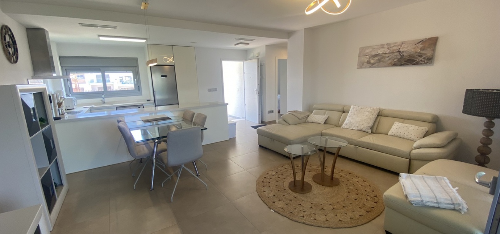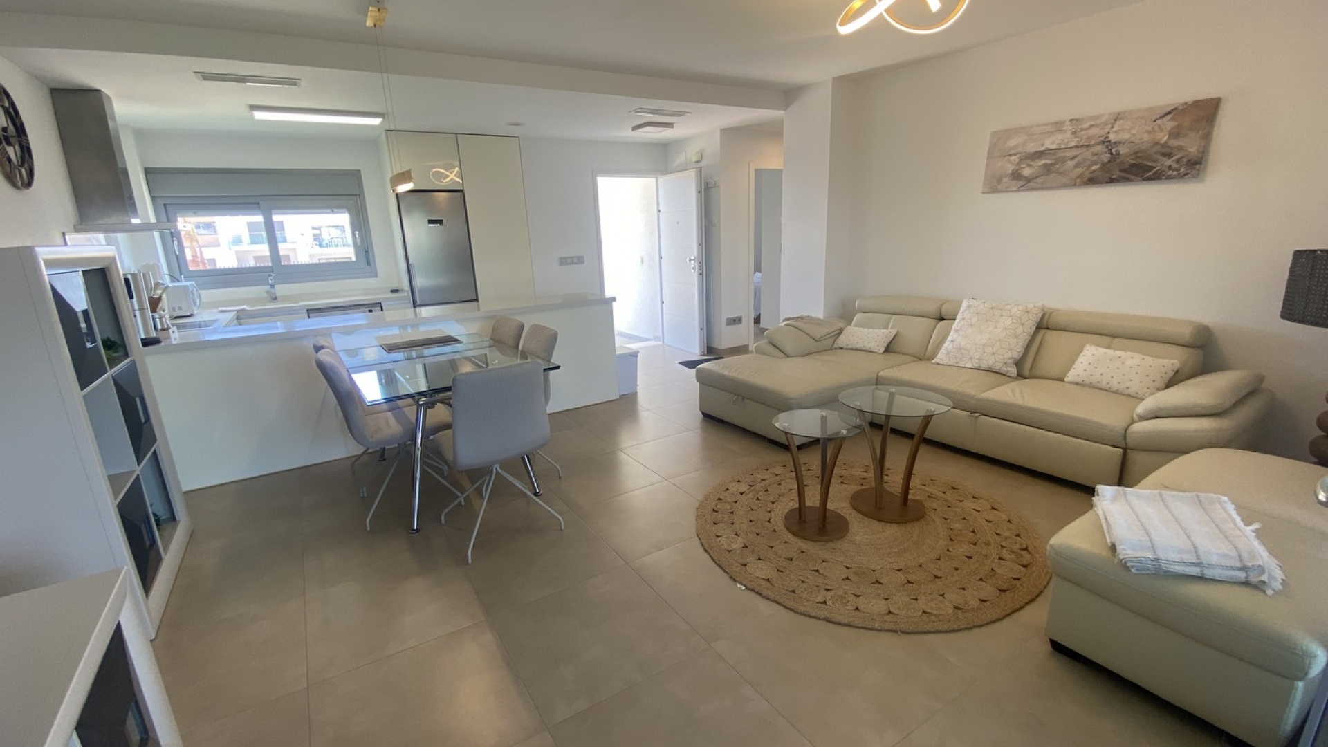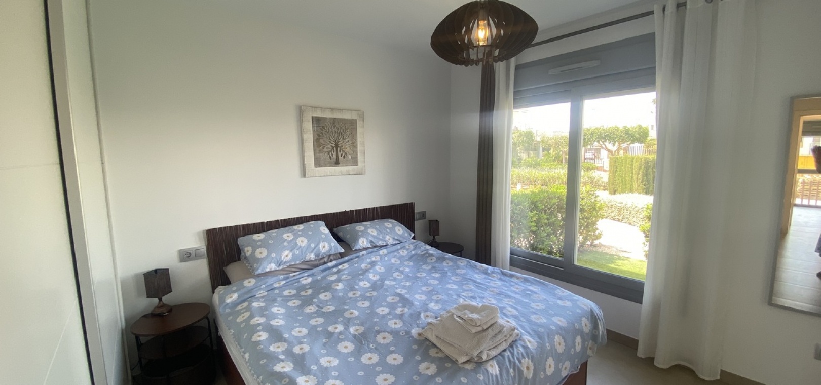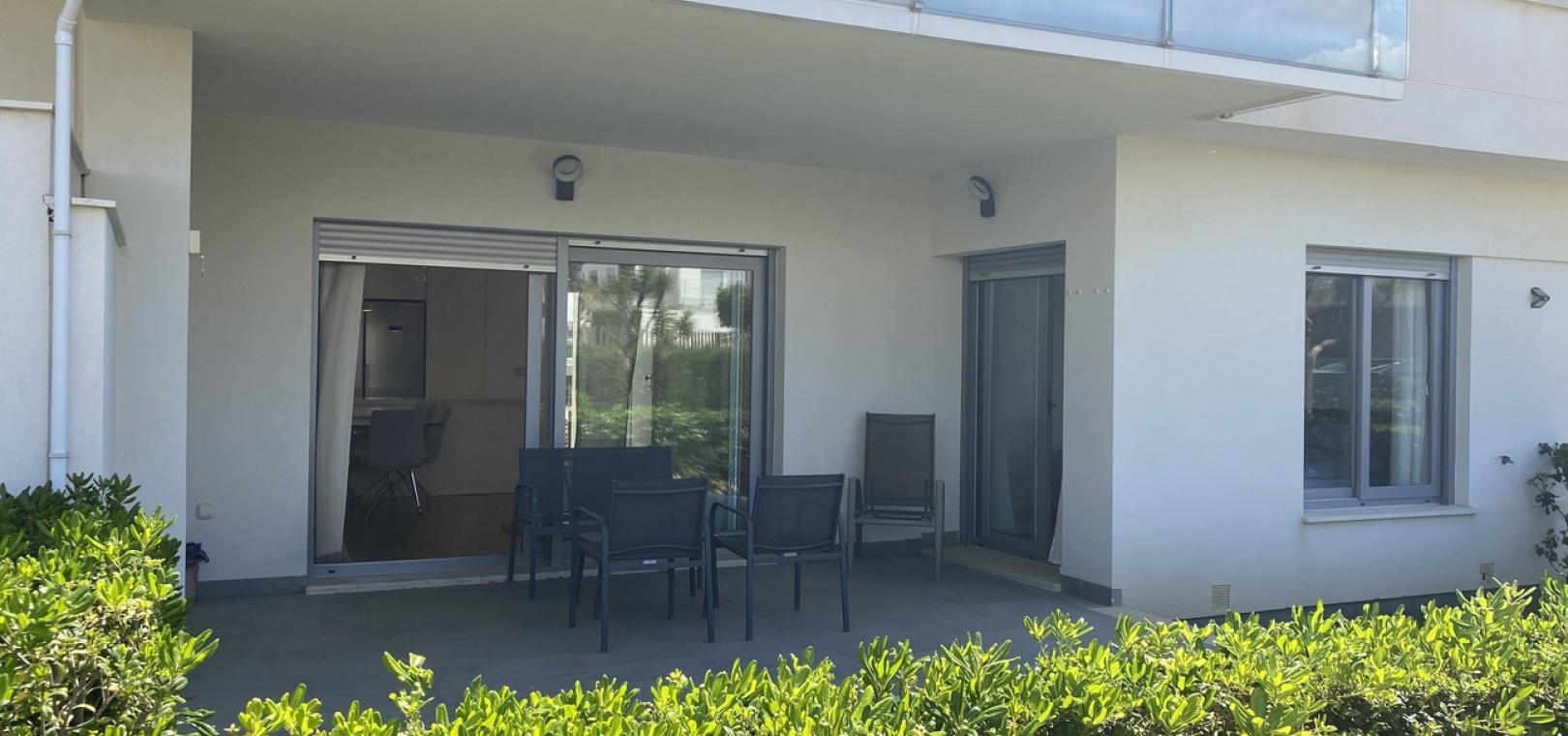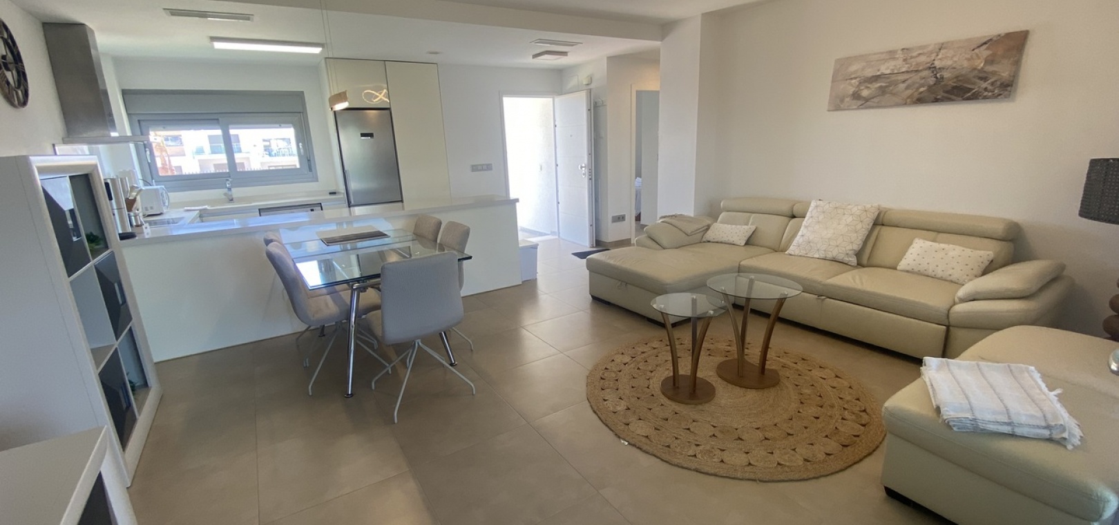 Belägen i den eftertraktade golforten Vistabella, denna oklanderligt underhållna lägenhet med 2 sovrum och 2 badrum exemplifierar symbolen för komfort och elegans. Vardagsrummet är mästerligt utformat med en öppen planlösning som harmoniserar avkoppling och funktionalitet, kompletterat med ett elegant modernt kök i amerikansk stil som är idealiskt för sammankomster och underhållning. Vart och ett av de två generöst tilltagna dubbelrummen är utrustade med inbyggda garderober, medan huvudsviten öppnar direkt mot den bakre terrassen och erbjuder en pittoresk utsikt över de noggrant anlagda trädgårdarna. Lägenheten förstärks ytterligare av rymliga inomhus- och utomhusutrymmen, inklusive en härlig framträdgård och en bakre trädgård som sömlöst ansluter till de välskötta gemensamma utrymmena och poolen. Dessutom är alla rum utrustade med både värme och luftkonditionering, vilket gör detta boende till ett utmärkt val för komfort året runt, avkopplande semester eller en lukrativ investering. Denna plats ligger inom bekvämt promenadavstånd och erbjuder en mängd faciliteter inklusive restauranger, butiker, en golfklubb och olika fritidssysselsättningar. Ta vara på detta exceptionella tillfälle att förvärva en sofistikerad och anpassningsbar fastighet inom det prestigefyllda Vistabella Golf-communityt.