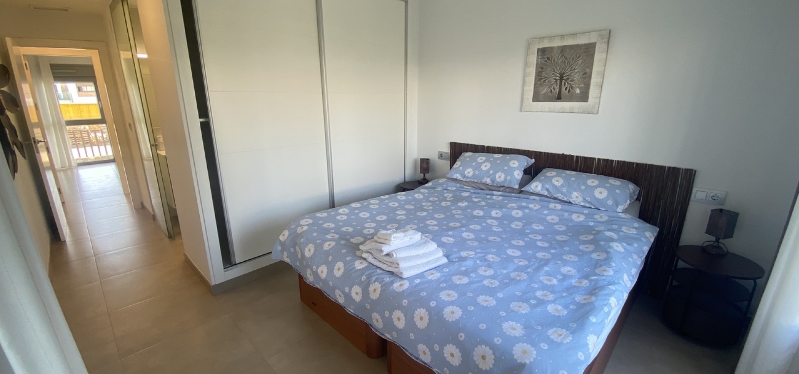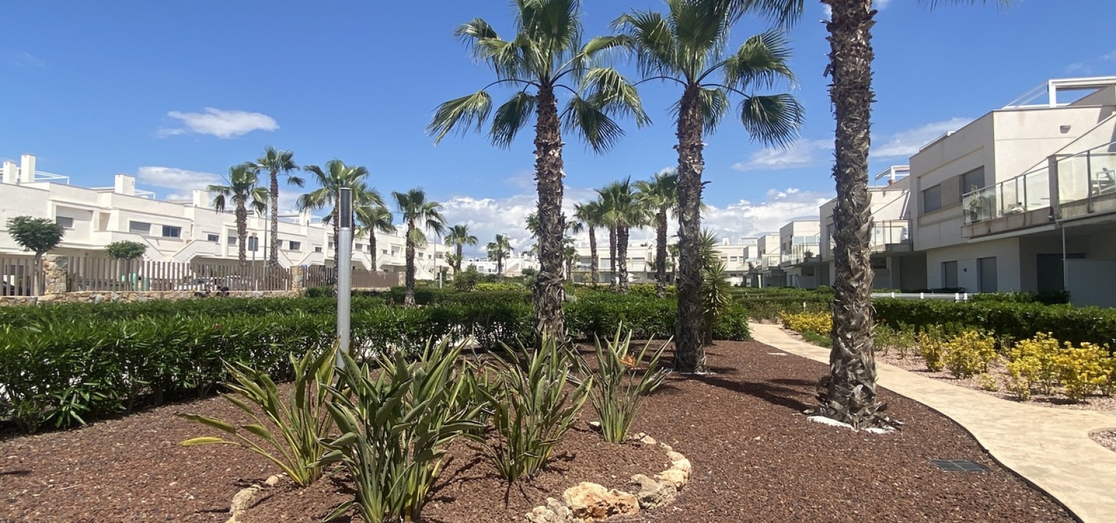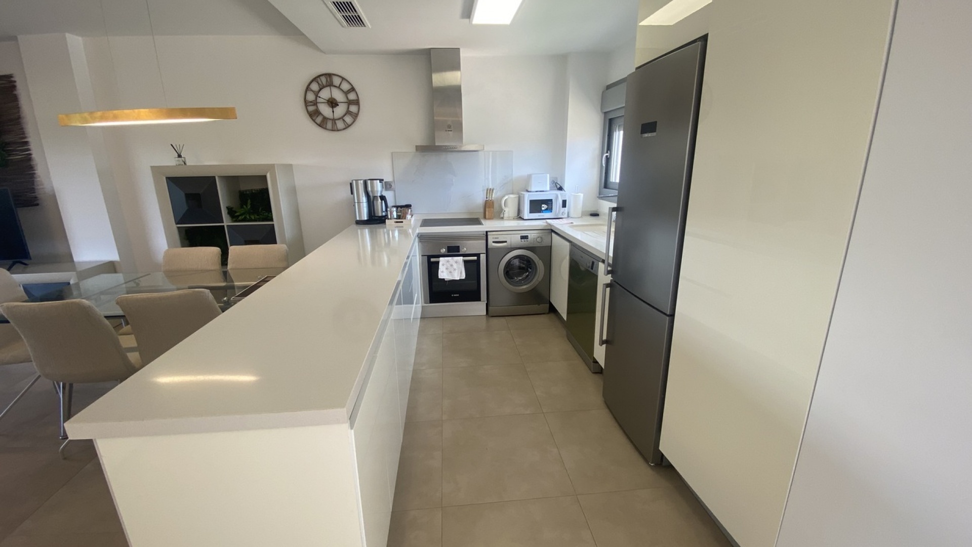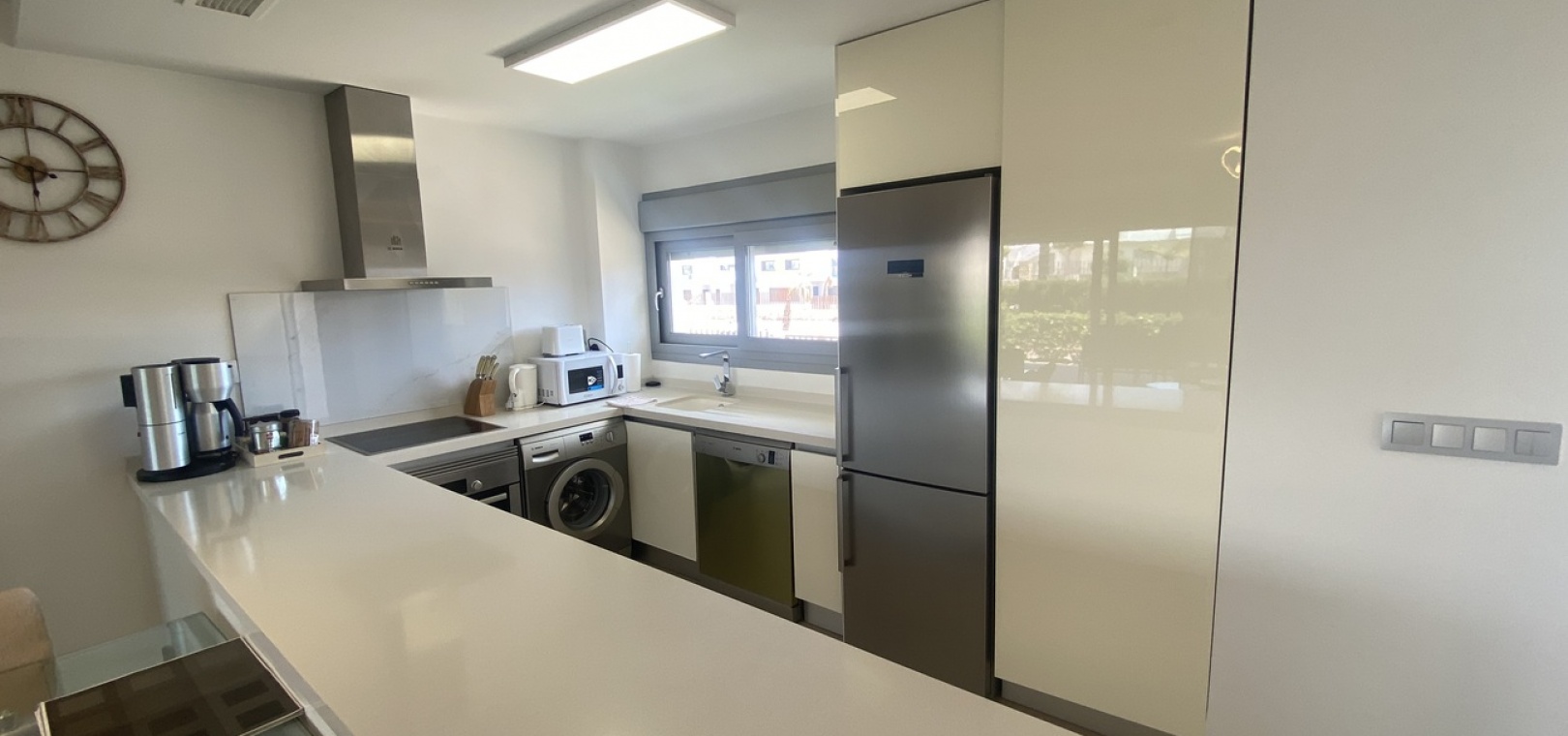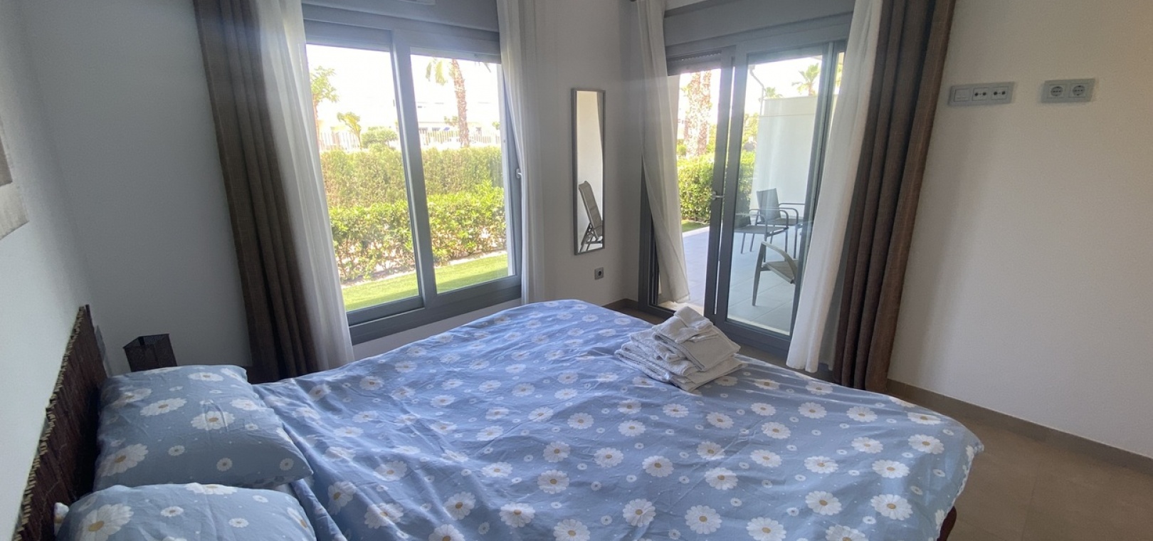 Belägen i den eftertraktade golforten Vistabella, denna oklanderligt underhållna lägenhet med 2 sovrum och 2 badrum exemplifierar symbolen för komfort och elegans. Vardagsrummet är mästerligt utformat med en öppen planlösning som harmoniserar avkoppling och funktionalitet, kompletterat med ett elegant modernt kök i amerikansk stil som är idealiskt för sammankomster och underhållning. Vart och ett av de två generöst tilltagna dubbelrummen är utrustade med inbyggda garderober, medan huvudsviten öppnar direkt mot den bakre terrassen och erbjuder en pittoresk utsikt över de noggrant anlagda trädgårdarna. Lägenheten förstärks ytterligare av rymliga inomhus- och utomhusutrymmen, inklusive en härlig framträdgård och en bakre trädgård som sömlöst ansluter till de välskötta gemensamma utrymmena och poolen. Dessutom är alla rum utrustade med både värme och luftkonditionering, vilket gör detta boende till ett utmärkt val för komfort året runt, avkopplande semester eller en lukrativ investering. Denna plats ligger inom bekvämt promenadavstånd och erbjuder en mängd faciliteter inklusive restauranger, butiker, en golfklubb och olika fritidssysselsättningar. Ta vara på detta exceptionella tillfälle att förvärva en sofistikerad och anpassningsbar fastighet inom det prestigefyllda Vistabella Golf-communityt.
