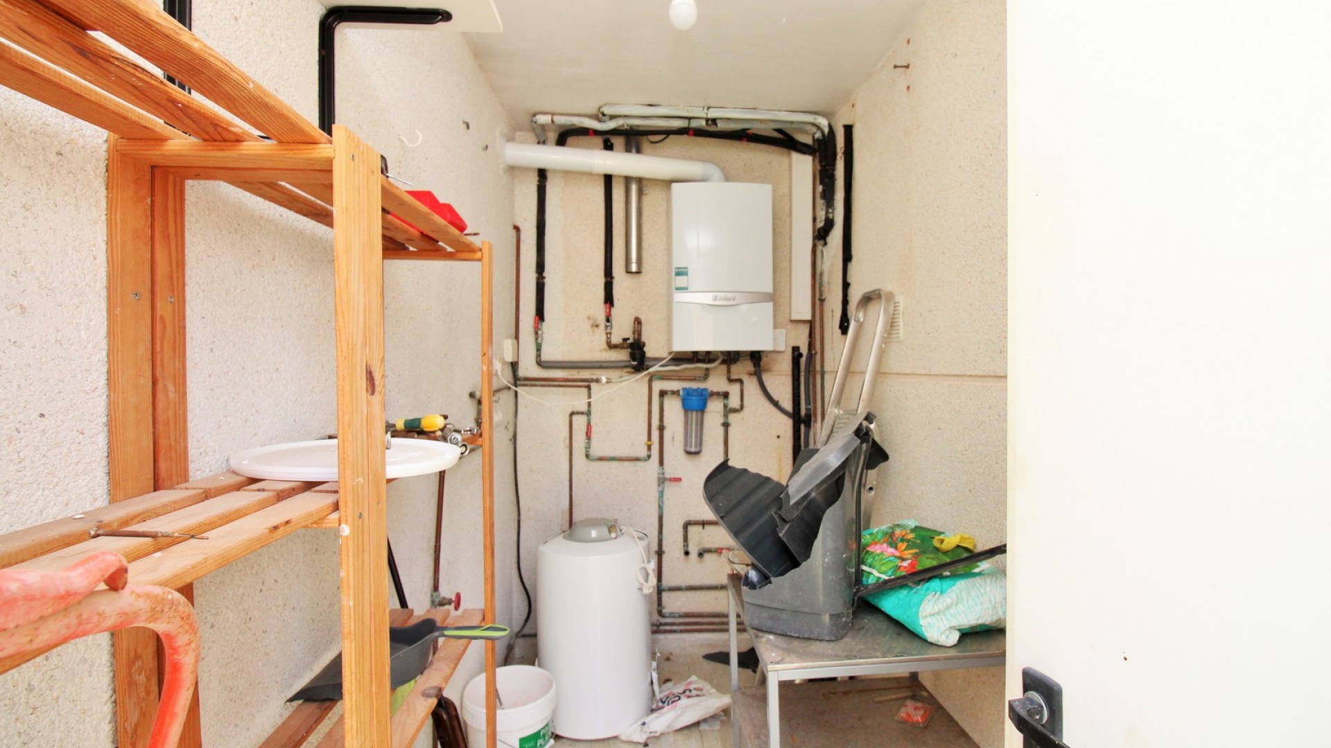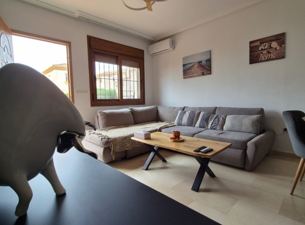 Denna generöst tilltagna fristående villa med fem sovrum och tre och ett halvt badrum ligger i det eftertraktade Montegolf-området i Villamartin. Idealiskt beläget inom räckhåll för lokala bekvämligheter, det är bara en kort bilresa från vackra stränder och flera kända golfbanor. Med backning direkt på Villamartins golfbana, har villan också attraktiv havsutsikt från den övre solterrassen. Fastigheten spänner över tre nivåer. Entréplanet innehåller en välkomnande terrass på framsidan, ett ljust och rymligt vardagsrum med tillgång till en solterrass, ett sovrum med dubbelsäng och en separat toalett. På övervåningen finns på första våningen ett stort master bedroom med egen solterrass, ytterligare ett dubbelrum och ett familjebadrum. Från loungen leder trappor ner till den lägre nivån där du hittar ett generöst utrustat kök, ett dubbelrum med eget badrum och ett andra dubbelrum med eget badrum. Ett inglasat solrum gränsar till köket och vetter mot den bakre trädgården, som har en uppvärmd privat pool - perfekt för njutning året runt. Ytterligare funktioner inkluderar en trädgård på framsidan och sidan med terrängparkering, ett förråd, varm och kall luftkonditionering överallt, gascentralvärme, en pelletsbrännare för extra komfort och tillgång till en välskött gemensam pool.