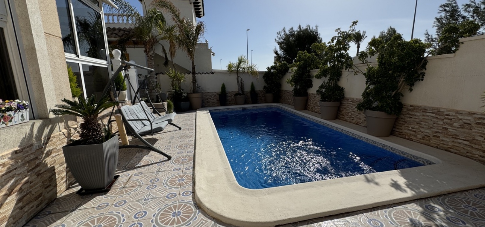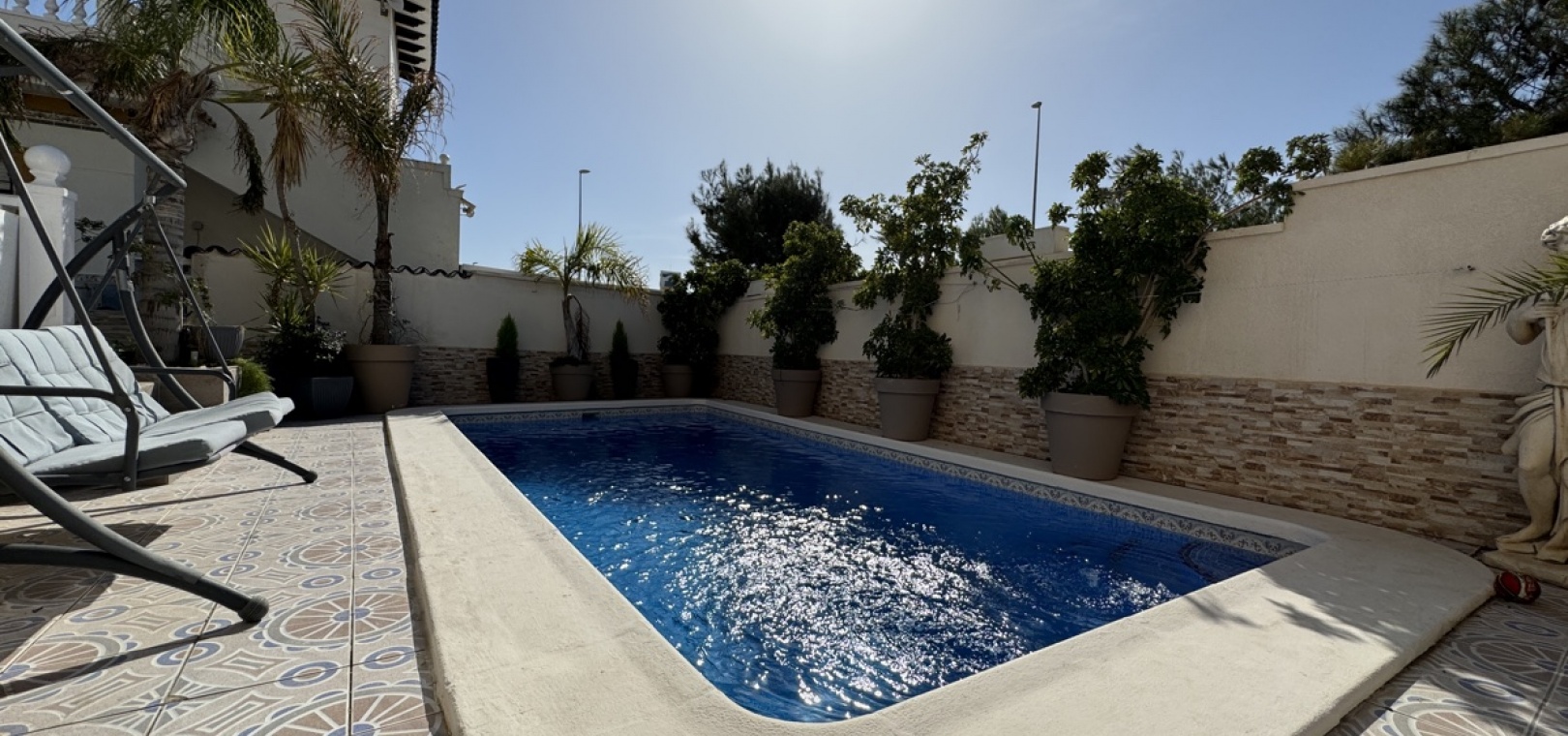 Fastigheten säljs fullt möblerad och utrustad, vilket möjliggör omedelbar inflyttning eller uthyrning. De boende har tillgång till en attraktiv gemensam pool i detta lugna och välskötta komplex.