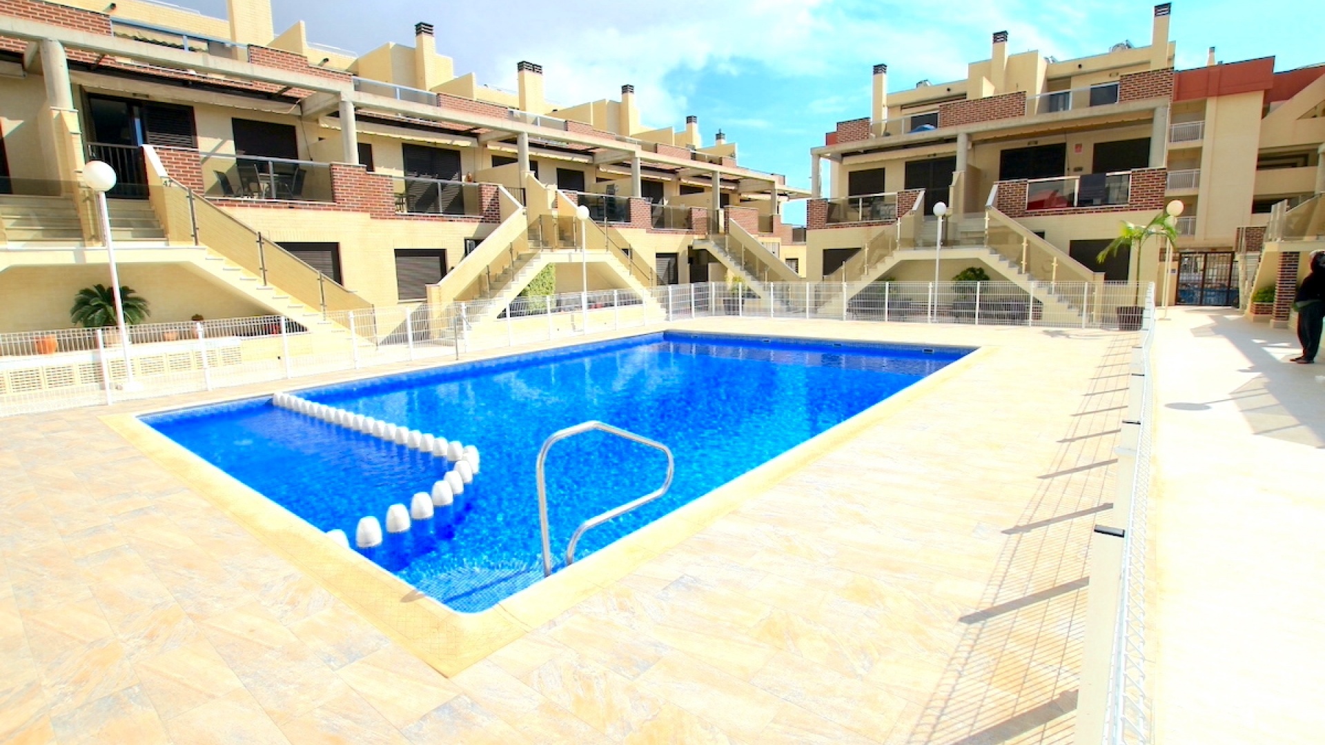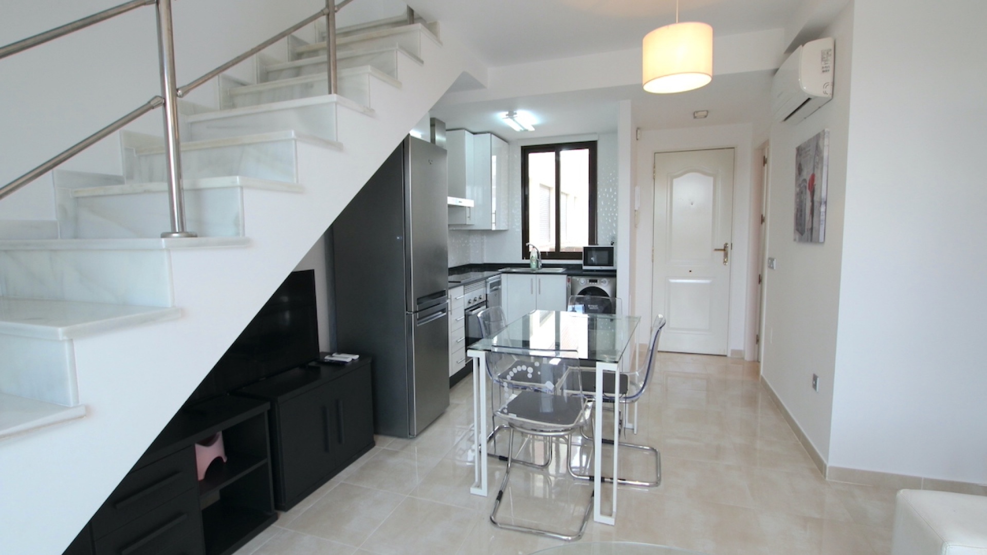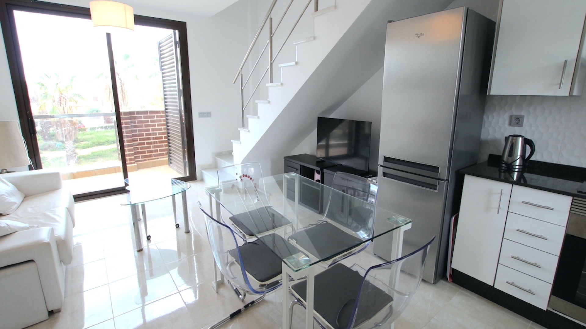 Här har vi en fantastisk duplexlägenhet med 3 sovrum och 2 badrum i söderläge till salu i den exklusiva Sinergia World II Spa and Fitness Resort - Lomas De Cabo Roig, Orihuela Costa.