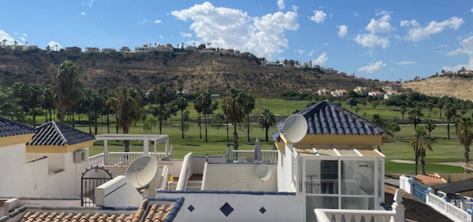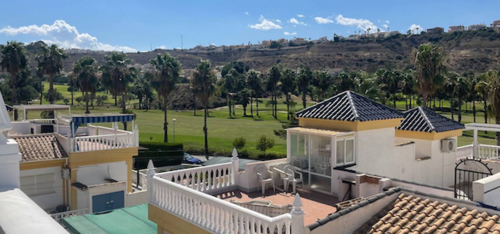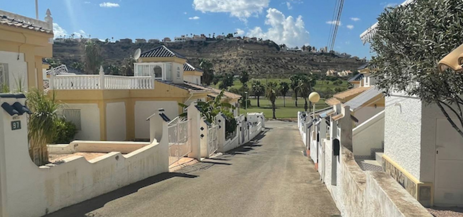 Denna fantastiska villa med två sovrum och ett badrum till salu i La Marquesa Golf ligger inom gångavstånd till alla bekvämligheter runt La Marquesa Golf-området. Belägen på en lugn gata har villan ett solarium i söderläge. Dubbla grindar möjliggör privat parkering utanför vägen och en grind leder till ytterdörren där du kommer in i det ljusa vardagsrummet med öppet, fullt utrustat kök. Det finns två dubbelrum som båda har inbyggda garderober och ett fullt utrustat familjebadrum komplett med badkar med dusch. Fastigheten har ett härligt utomhusutrymme som är helkaklat och ett privat solarium med toldo (för de varma dagarna när du behöver skydd mot solen). Det finns ett extra rum på solariet som kan användas till många ändamål. Det är tillräckligt stort för en enkelsäng eller helt enkelt för förvaring. Läget ger utsikt från solariet över den vackra golfbanan. Tillägg inkluderar luftkonditionering, höghastighetsfiberoptiskt bredband och TV. Bara två minuters promenad tar dig till det fantastiska gemensamma poolområdet. Villan är delvis möblerad, men ägarna kan lämna allt och ge nästa ägare ett nyckelfärdigt hem. Denna fastighet har satts till ett försäljningspris och tidig visning rekommenderas.