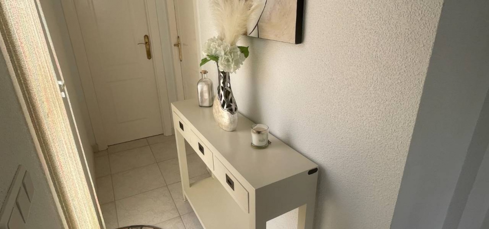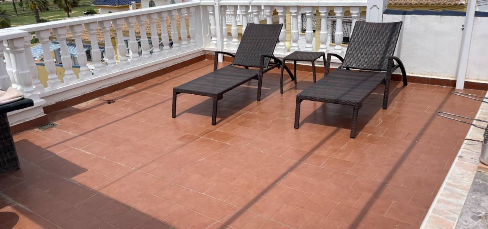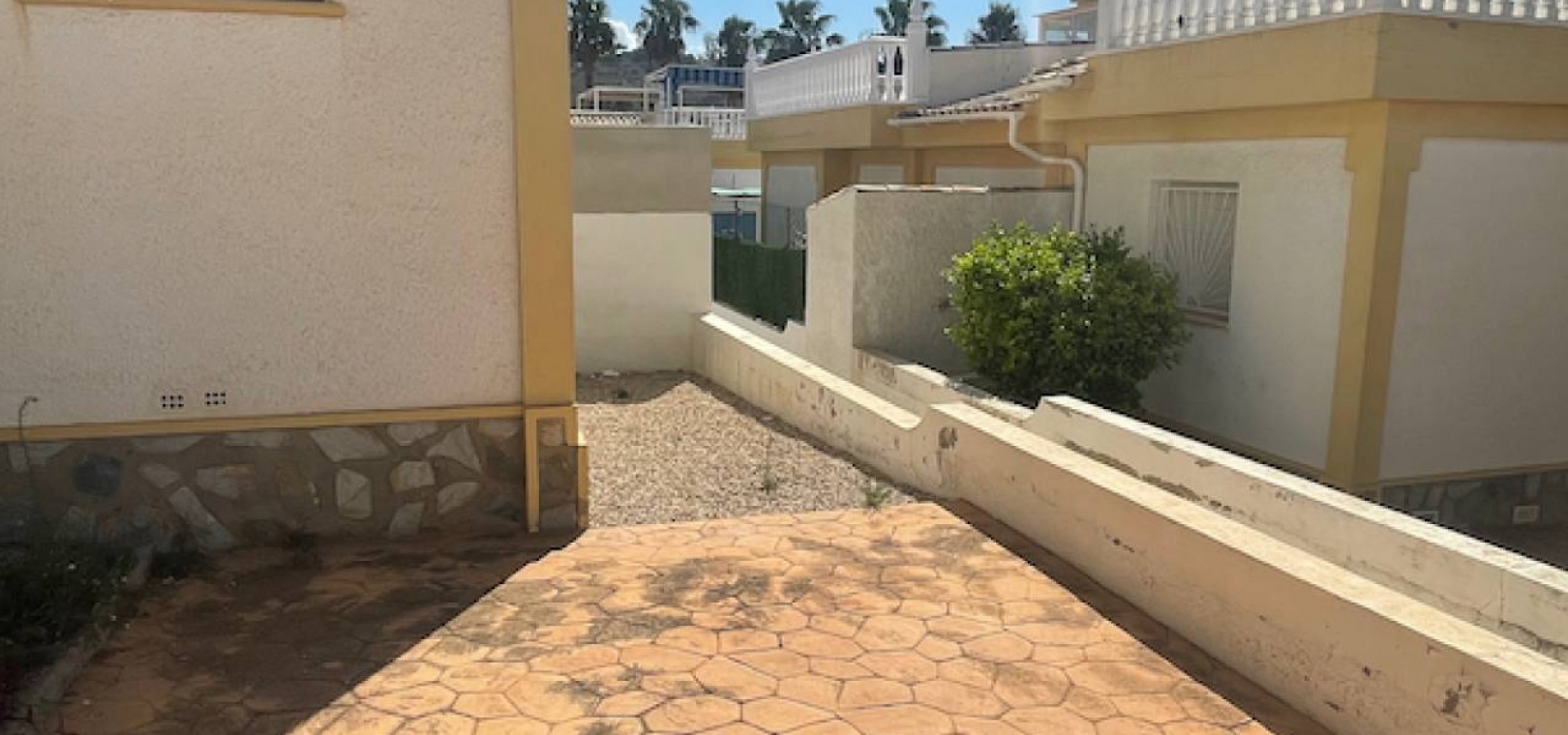 Denna fantastiska villa med två sovrum och ett badrum till salu i La Marquesa Golf ligger inom gångavstånd till alla bekvämligheter runt La Marquesa Golf-området. Belägen på en lugn gata har villan ett solarium i söderläge. Dubbla grindar möjliggör privat parkering utanför vägen och en grind leder till ytterdörren där du kommer in i det ljusa vardagsrummet med öppet, fullt utrustat kök. Det finns två dubbelrum som båda har inbyggda garderober och ett fullt utrustat familjebadrum komplett med badkar med dusch. Fastigheten har ett härligt utomhusutrymme som är helkaklat och ett privat solarium med toldo (för de varma dagarna när du behöver skydd mot solen). Det finns ett extra rum på solariet som kan användas till många ändamål. Det är tillräckligt stort för en enkelsäng eller helt enkelt för förvaring. Läget ger utsikt från solariet över den vackra golfbanan. Tillägg inkluderar luftkonditionering, höghastighetsfiberoptiskt bredband och TV. Bara två minuters promenad tar dig till det fantastiska gemensamma poolområdet. Villan är delvis möblerad, men ägarna kan lämna allt och ge nästa ägare ett nyckelfärdigt hem. Denna fastighet har satts till ett försäljningspris och tidig visning rekommenderas.