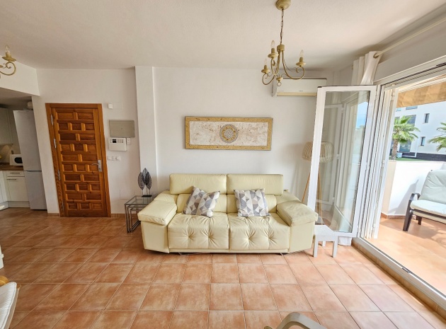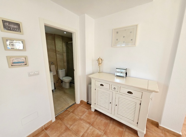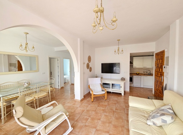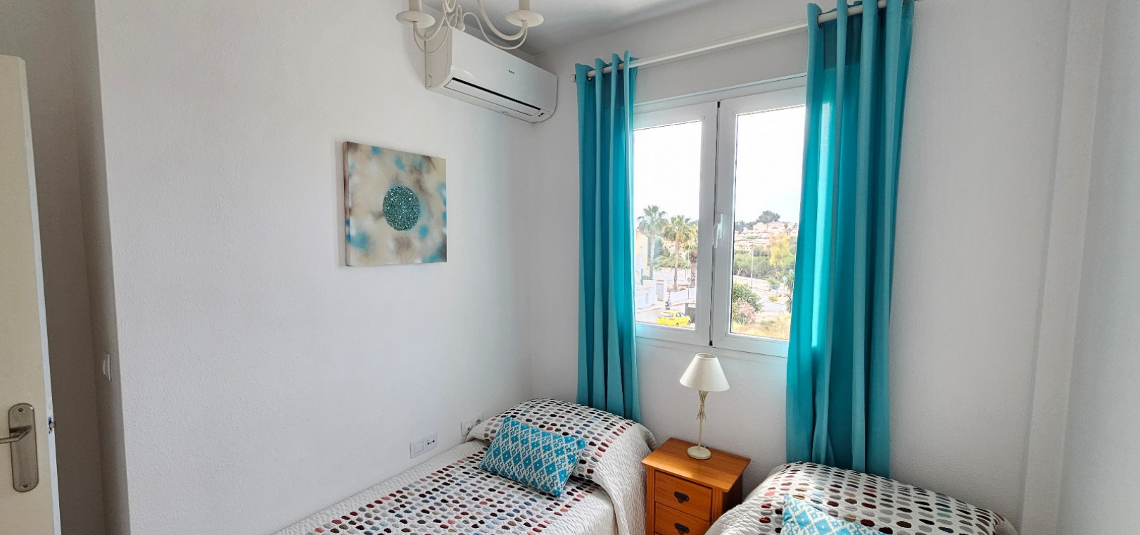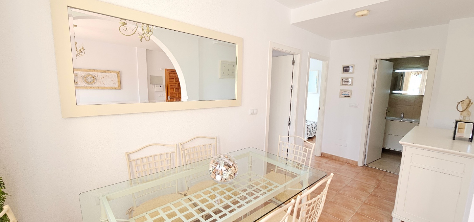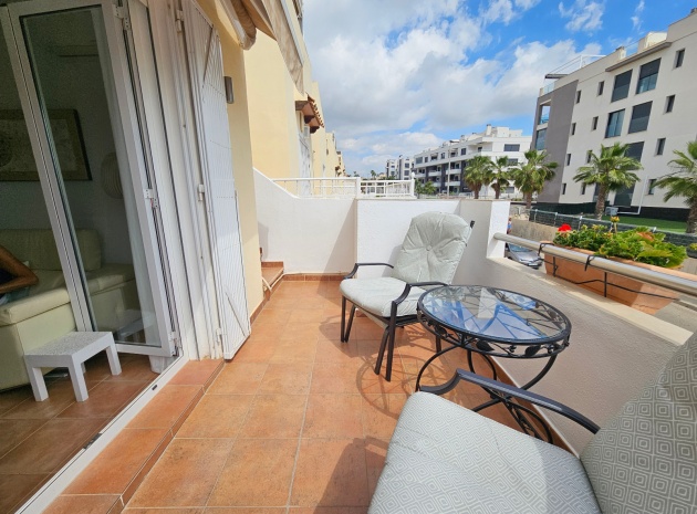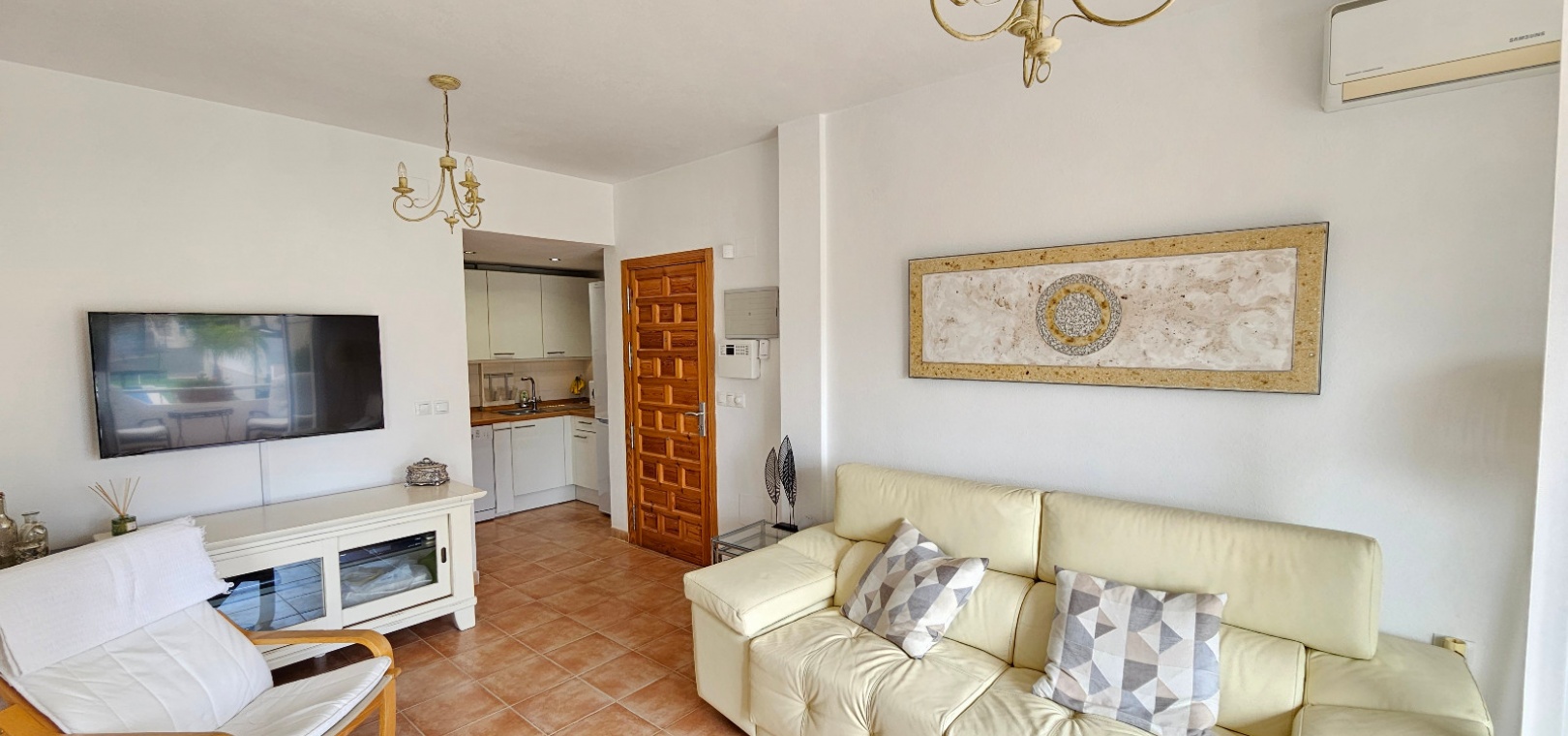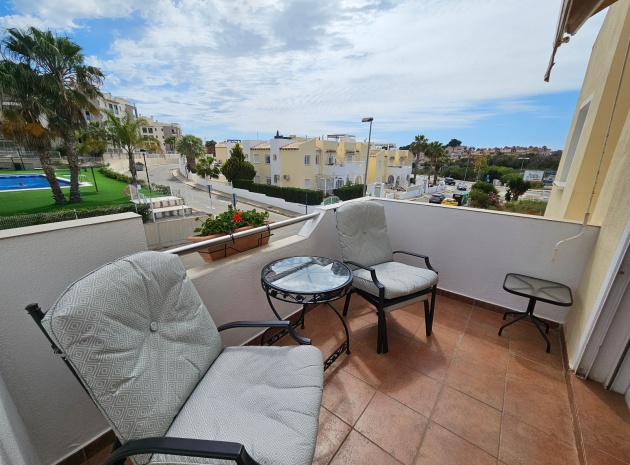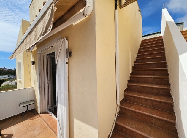 En hörnlägenhet med 2 sovrum och 2 badrum i sydostläge på översta våningen med ett stort privat takterrass, belägen i Panorama Golf, Villamartin, Costa Blanca Södra.