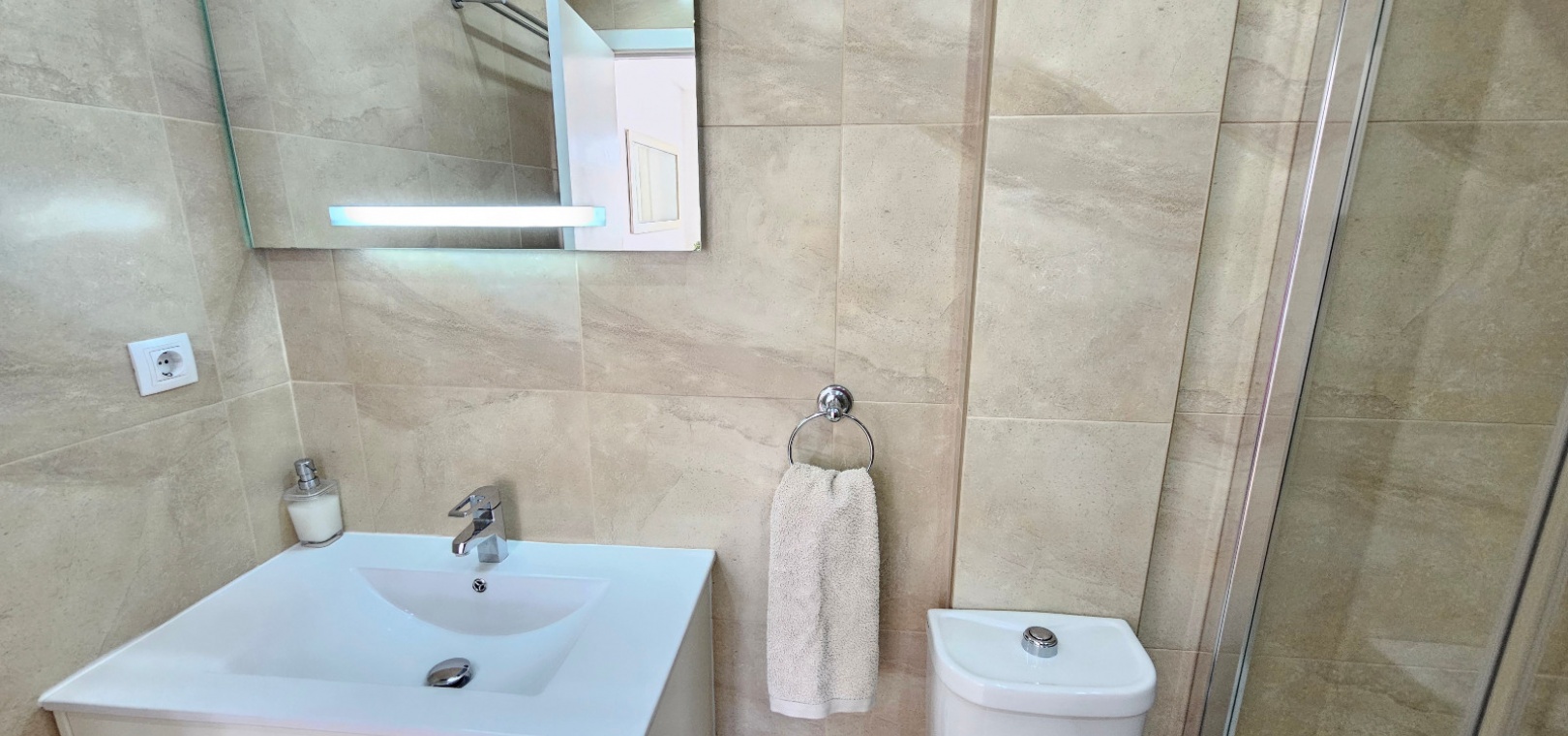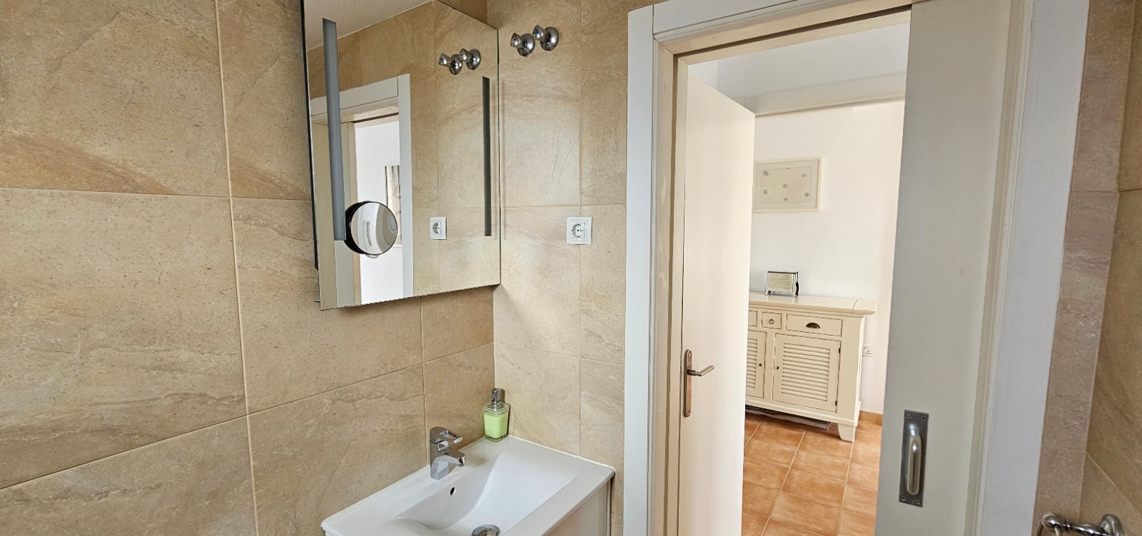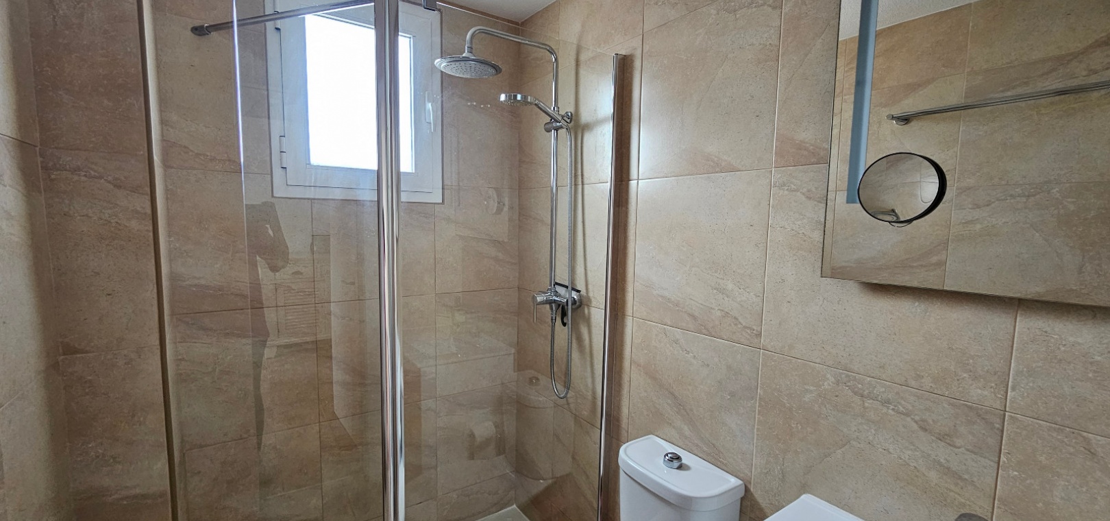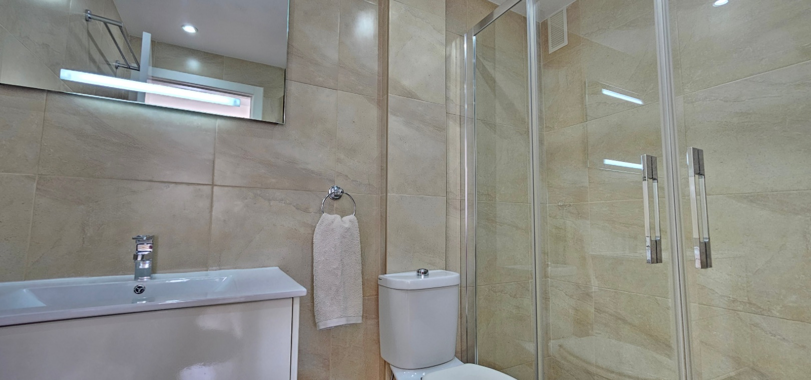 2 x dubbelrum, båda med varm och kall luftkonditionering och inbyggda garderober. Det största sovrummet har ett vackert renoverat eget duschrum.