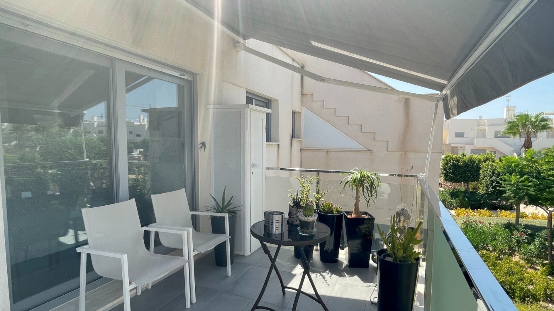 Lägenheten är mycket rymlig och har många extrafunktioner som luftkonditionering med zonluft i sovrummen, takfläktar, myggnät och solcellstält på terrasserna. Det vackra vardagsrummet inkluderar ett vardagsrum/matsal och ett magnifikt öppet kök. Denna lägenhet har 3 sovrum, varav ett har eget badrum och ett andra badrum som nås från natthallen.