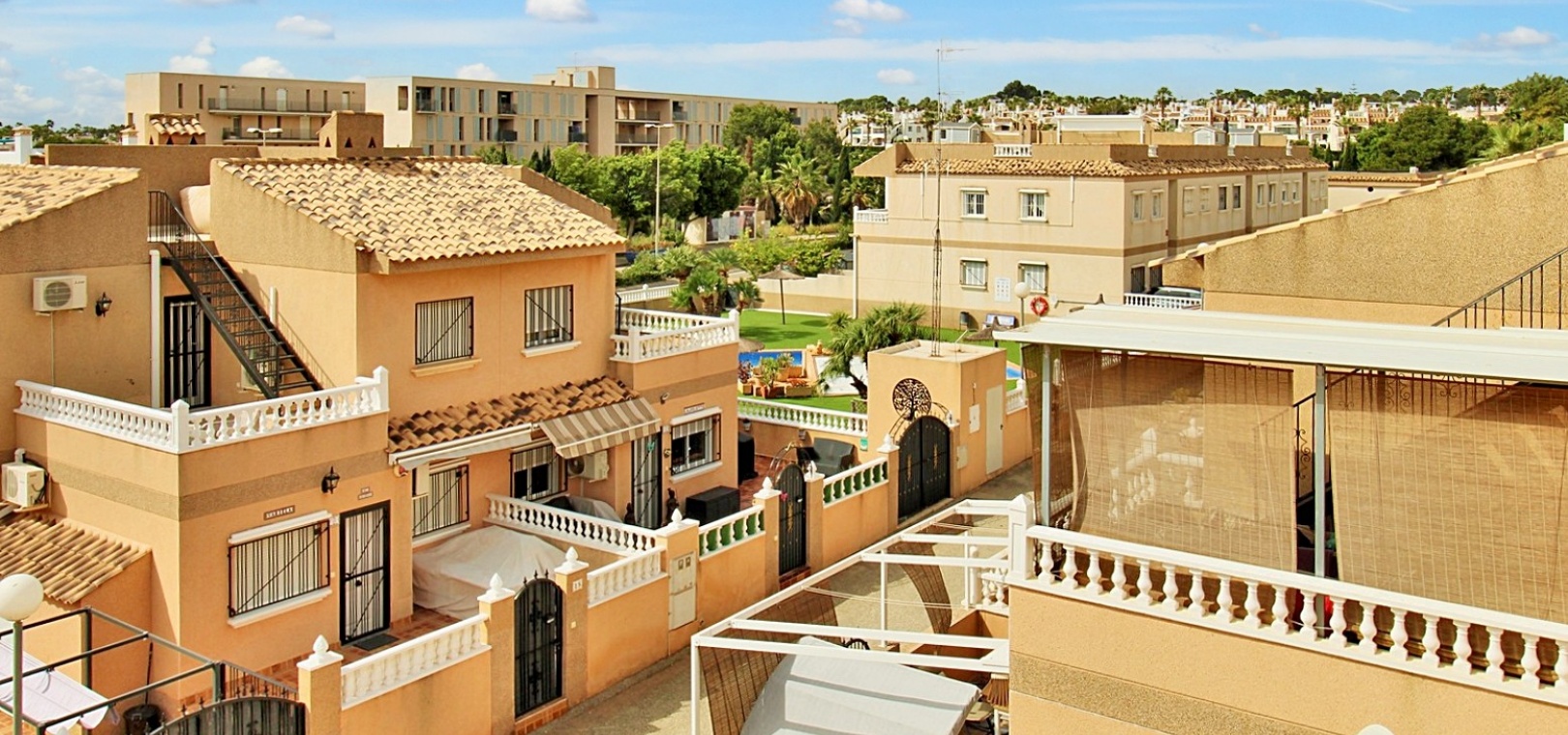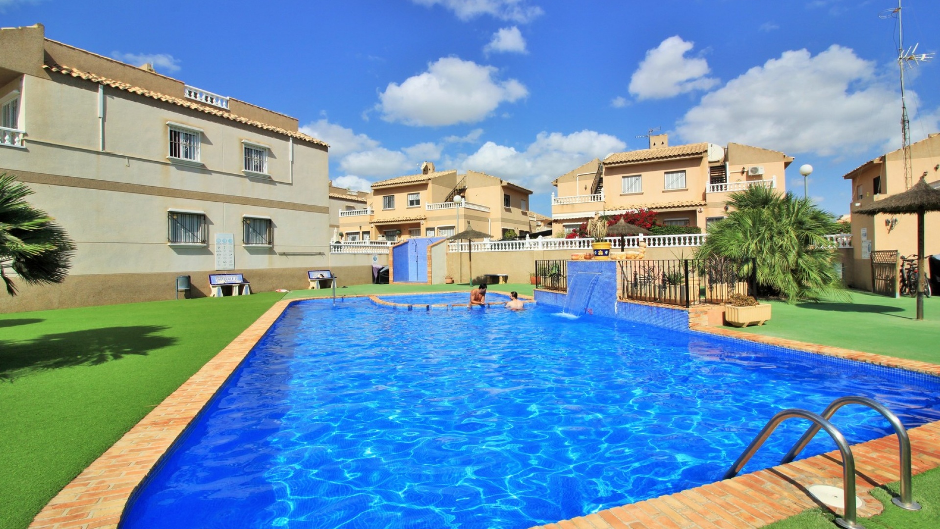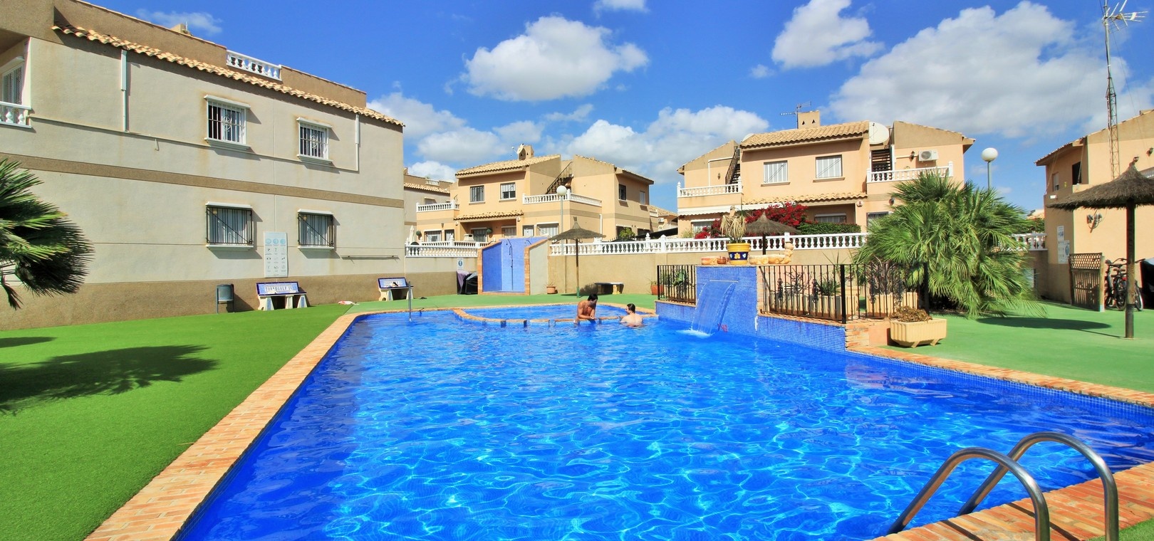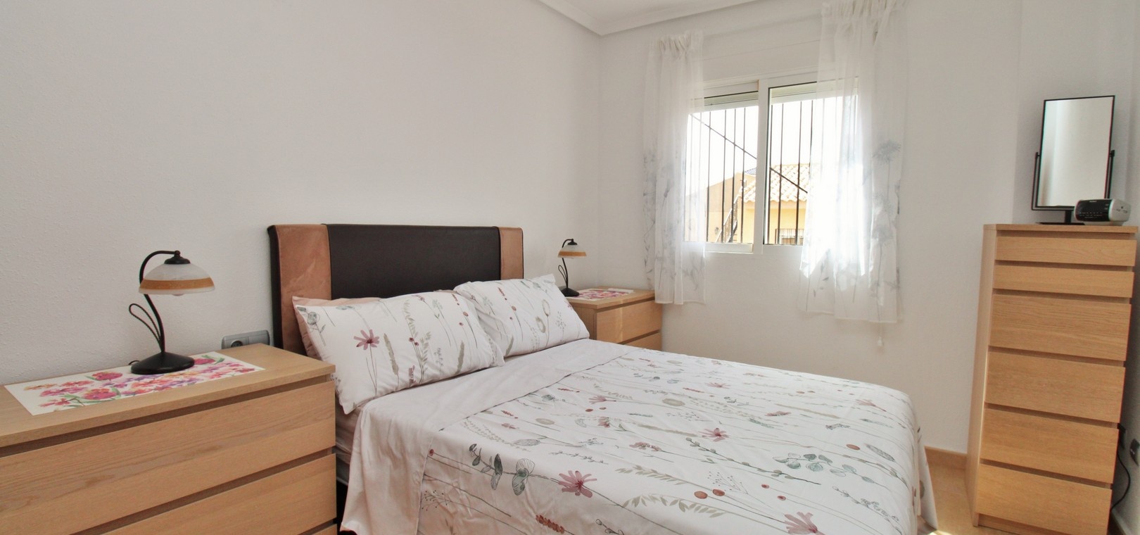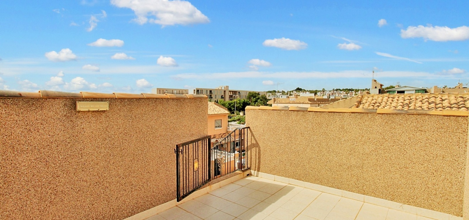 Detta ljusa och rymliga fyrbäddshus med tre sovrum ligger i det populära Pau 8-området i Villamartin, bara en kort promenad från det berömda Villamartin Plaza och golfbanan. Fastigheten har ägts av samma familj sedan den byggdes och har omsorgsfullt underhållits och erbjuder en välkomnande planlösning med utmärkta utomhusutrymmen. Beläget på en tomt i sydostläge har huset en L-formad trädgård med en grindad uppfart, externt förråd, en balkong på första våningen och ett privat takterrass – perfekt för att njuta av solen hela dagen. Bottenvåningen består av ett bekvämt vardagsrum och matplats med ett öppet kök och angränsande tvättstuga, ett sovrum med dubbelsäng, ett modernt badrum med duschkabin och ett praktiskt förvaringsskåp under trappan. På övervåningen finns ytterligare två sovrum med inbyggda garderober, ett familjebadrum och tillgång till en solig balkong som leder upp till takterrassen. Fastigheten säljs möblerad, inklusive vitvaror och luftkonditionering. Den ingår i ett välskött bostadsområde med en gemensam pool i närheten. Bara 900 meter från Villamartin Plaza, med sitt breda utbud av restauranger, barer och en stormarknad, och under tio minuters bilresa till stränderna i Orihuela Costa och köpcentret Zenia Boulevard. Ett idealiskt alternativ för heltidsboende eller som ett lättskött fritidshus. Tidig visning rekommenderas.