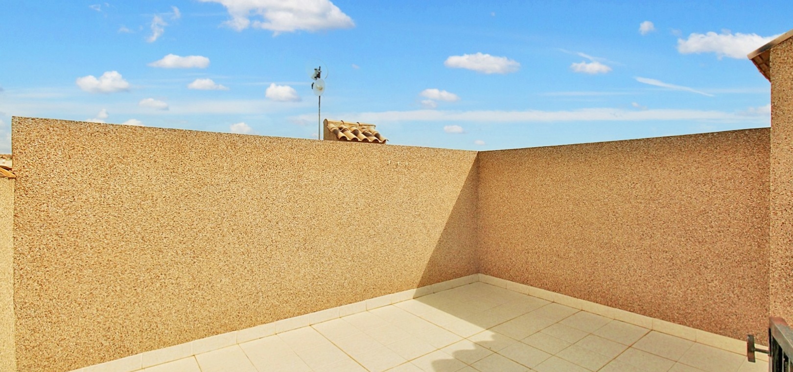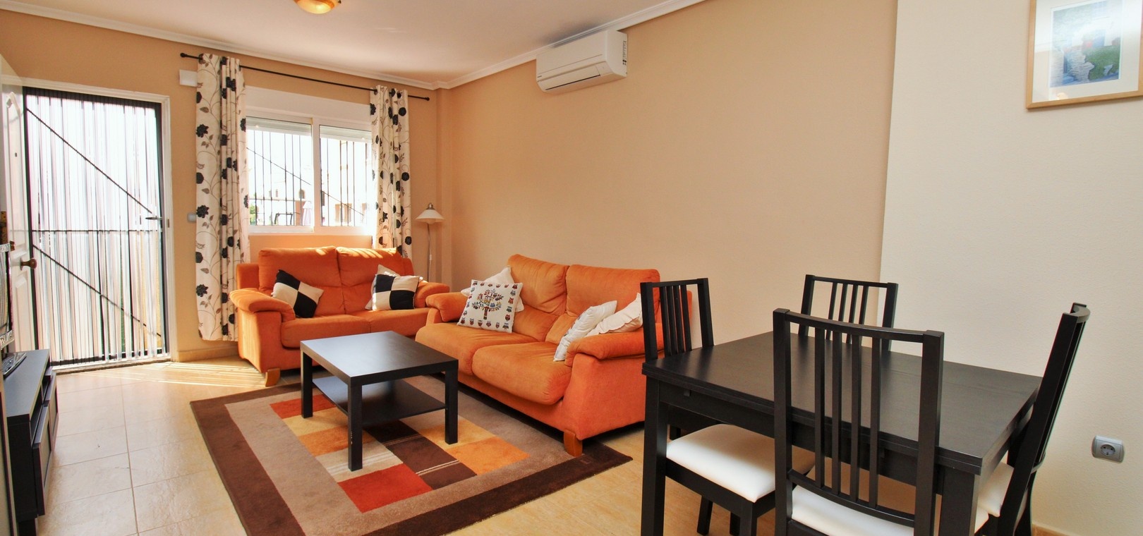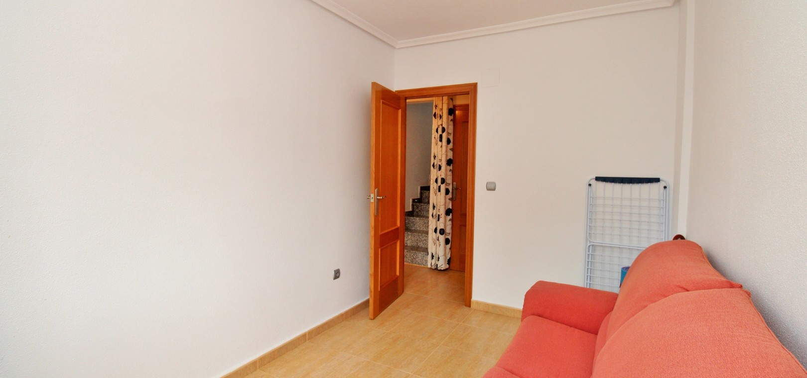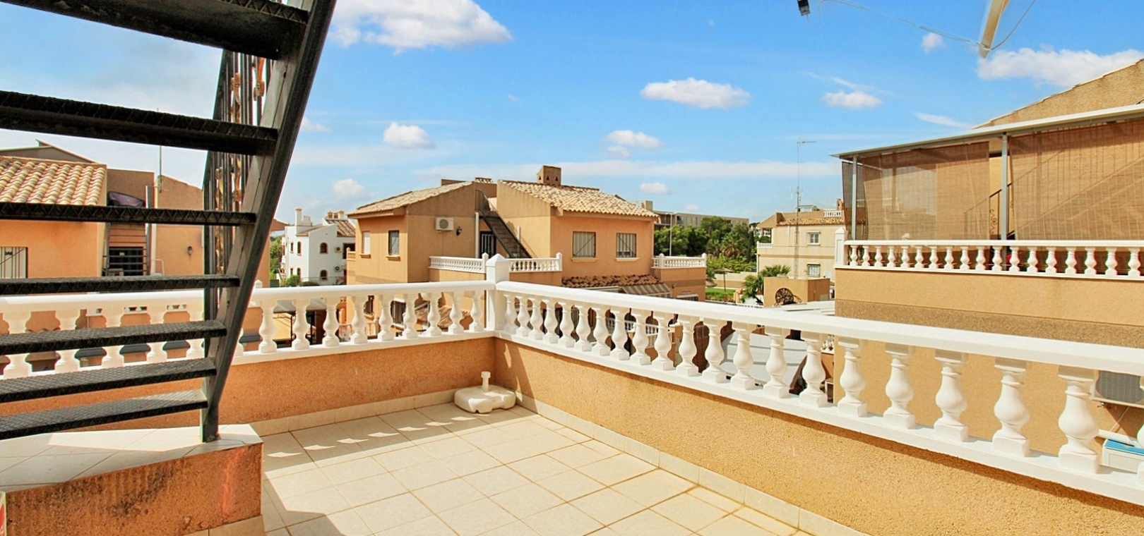 Detta ljusa och rymliga fyrbäddshus med tre sovrum ligger i det populära Pau 8-området i Villamartin, bara en kort promenad från det berömda Villamartin Plaza och golfbanan. Fastigheten har ägts av samma familj sedan den byggdes och har omsorgsfullt underhållits och erbjuder en välkomnande planlösning med utmärkta utomhusutrymmen. Beläget på en tomt i sydostläge har huset en L-formad trädgård med en grindad uppfart, externt förråd, en balkong på första våningen och ett privat takterrass – perfekt för att njuta av solen hela dagen. Bottenvåningen består av ett bekvämt vardagsrum och matplats med ett öppet kök och angränsande tvättstuga, ett sovrum med dubbelsäng, ett modernt badrum med duschkabin och ett praktiskt förvaringsskåp under trappan. På övervåningen finns ytterligare två sovrum med inbyggda garderober, ett familjebadrum och tillgång till en solig balkong som leder upp till takterrassen. Fastigheten säljs möblerad, inklusive vitvaror och luftkonditionering. Den ingår i ett välskött bostadsområde med en gemensam pool i närheten. Bara 900 meter från Villamartin Plaza, med sitt breda utbud av restauranger, barer och en stormarknad, och under tio minuters bilresa till stränderna i Orihuela Costa och köpcentret Zenia Boulevard. Ett idealiskt alternativ för heltidsboende eller som ett lättskött fritidshus. Tidig visning rekommenderas.