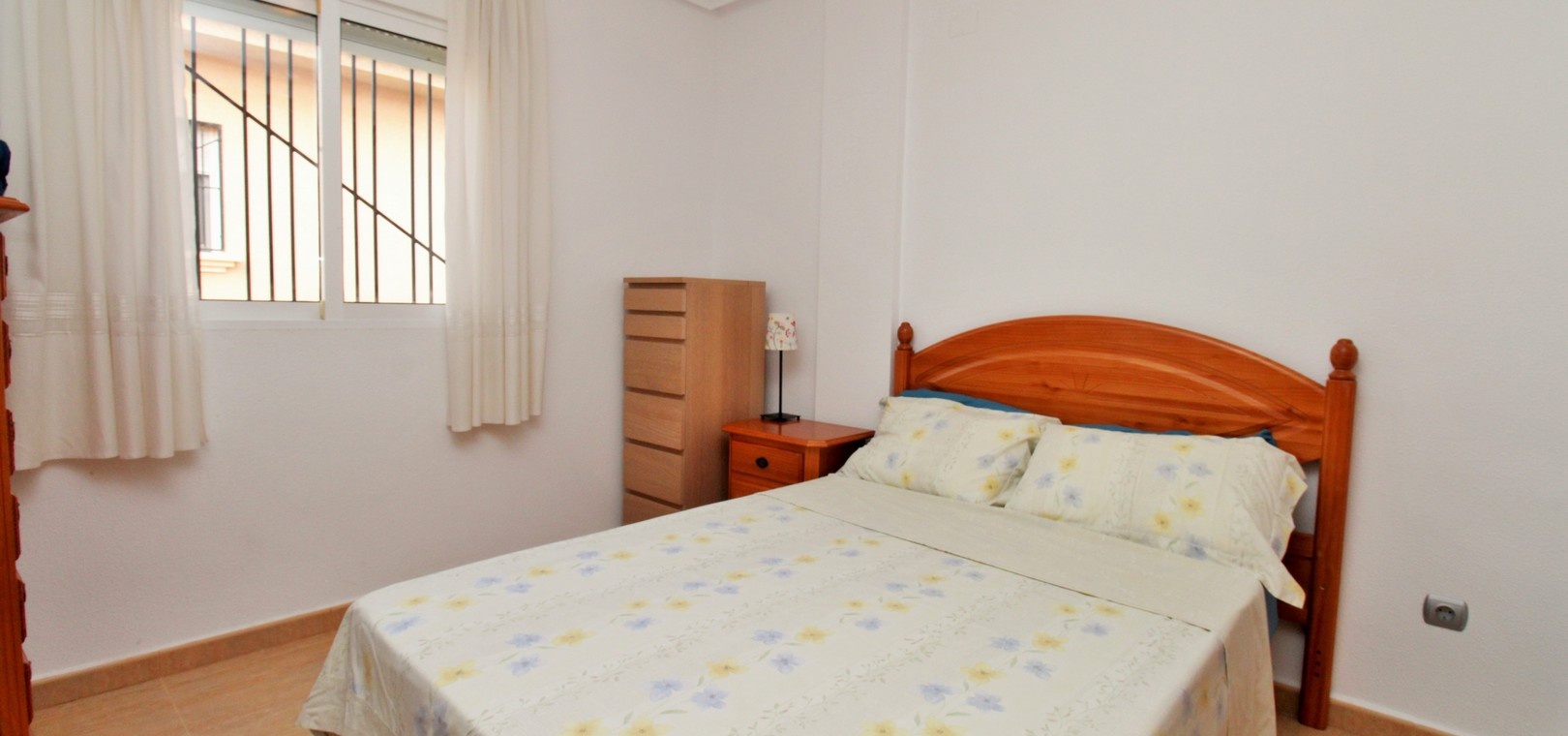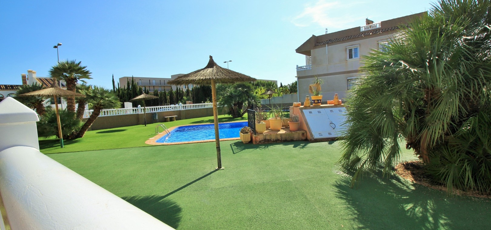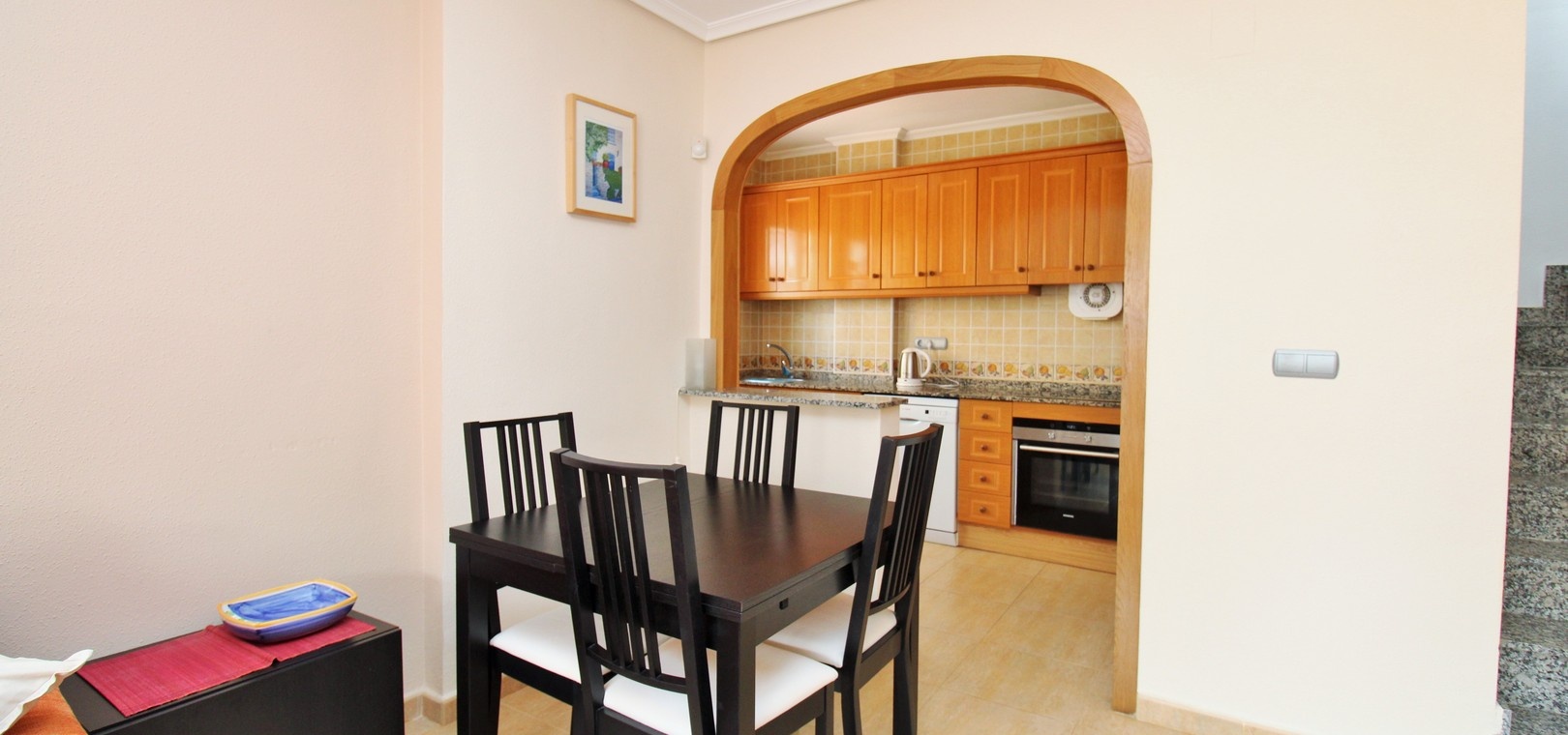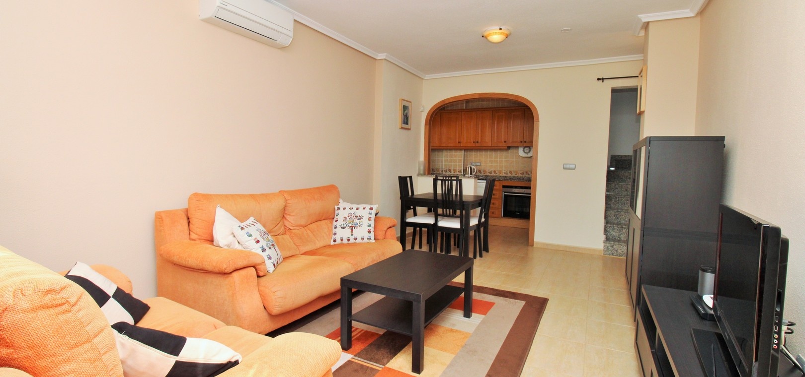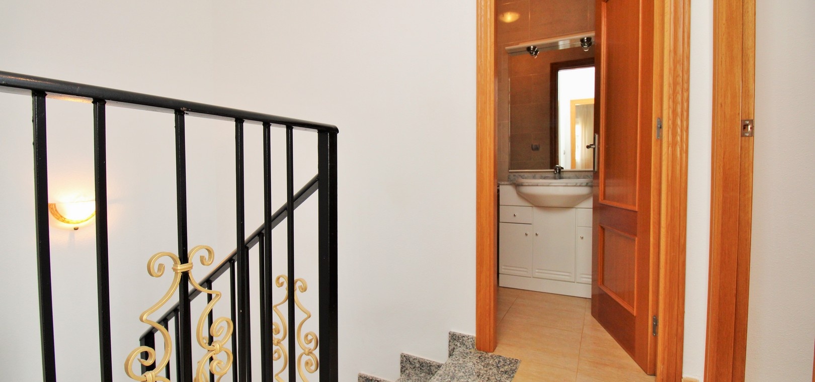 Detta ljusa och rymliga fyrbäddshus med tre sovrum ligger i det populära Pau 8-området i Villamartin, bara en kort promenad från det berömda Villamartin Plaza och golfbanan. Fastigheten har ägts av samma familj sedan den byggdes och har omsorgsfullt underhållits och erbjuder en välkomnande planlösning med utmärkta utomhusutrymmen. Beläget på en tomt i sydostläge har huset en L-formad trädgård med en grindad uppfart, externt förråd, en balkong på första våningen och ett privat takterrass – perfekt för att njuta av solen hela dagen. Bottenvåningen består av ett bekvämt vardagsrum och matplats med ett öppet kök och angränsande tvättstuga, ett sovrum med dubbelsäng, ett modernt badrum med duschkabin och ett praktiskt förvaringsskåp under trappan. På övervåningen finns ytterligare två sovrum med inbyggda garderober, ett familjebadrum och tillgång till en solig balkong som leder upp till takterrassen. Fastigheten säljs möblerad, inklusive vitvaror och luftkonditionering. Den ingår i ett välskött bostadsområde med en gemensam pool i närheten. Bara 900 meter från Villamartin Plaza, med sitt breda utbud av restauranger, barer och en stormarknad, och under tio minuters bilresa till stränderna i Orihuela Costa och köpcentret Zenia Boulevard. Ett idealiskt alternativ för heltidsboende eller som ett lättskött fritidshus. Tidig visning rekommenderas.
