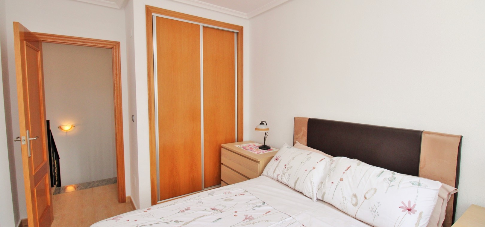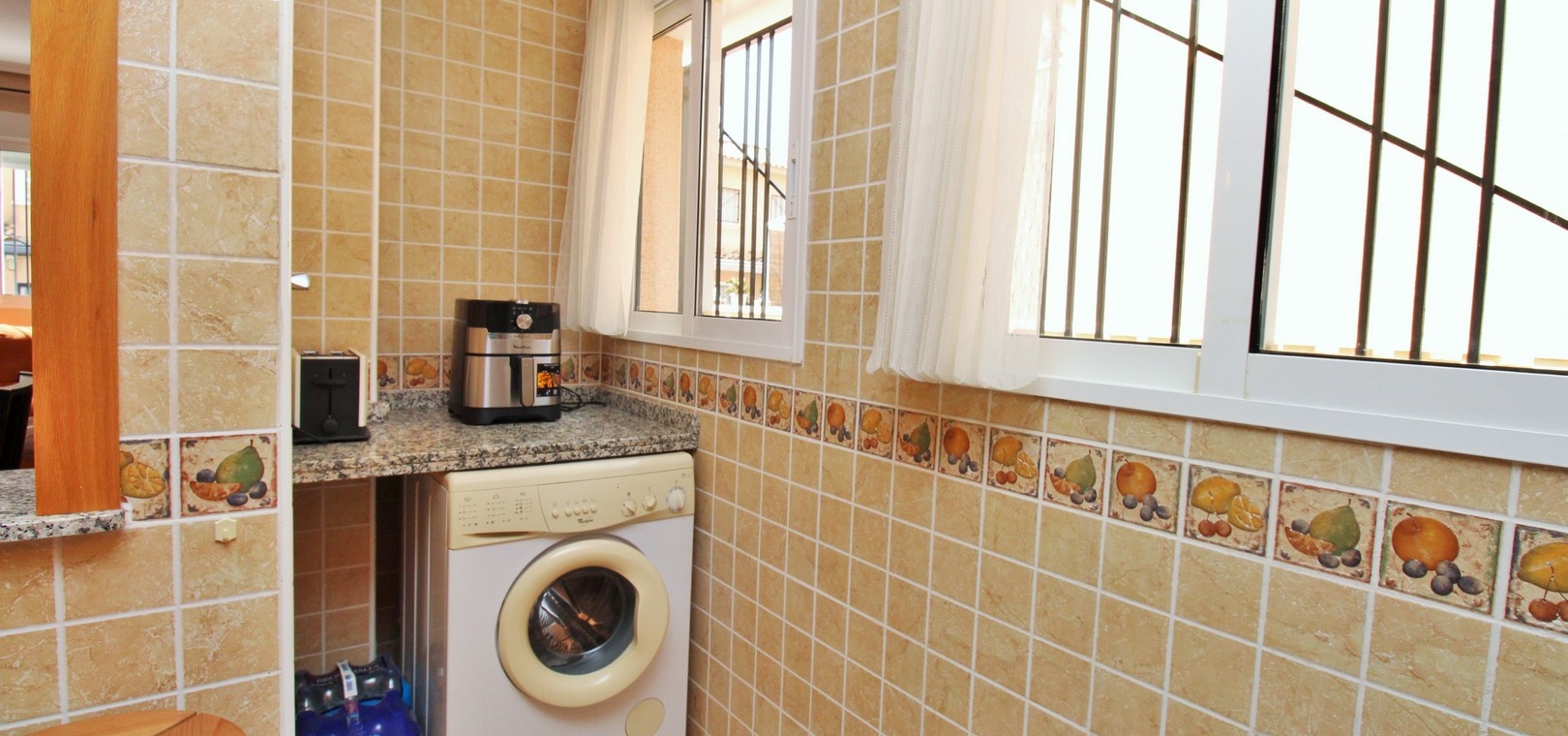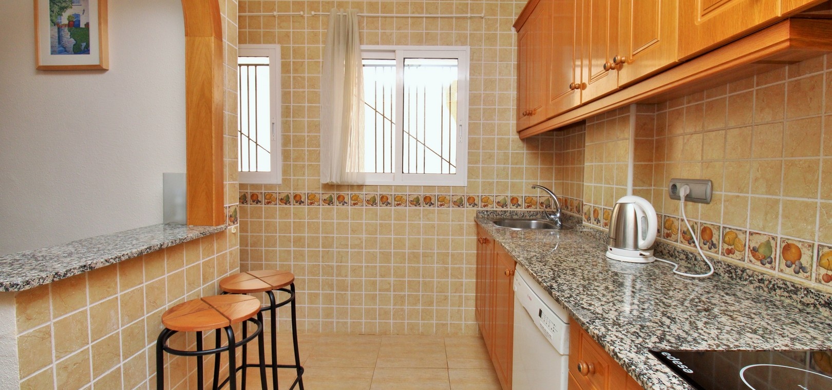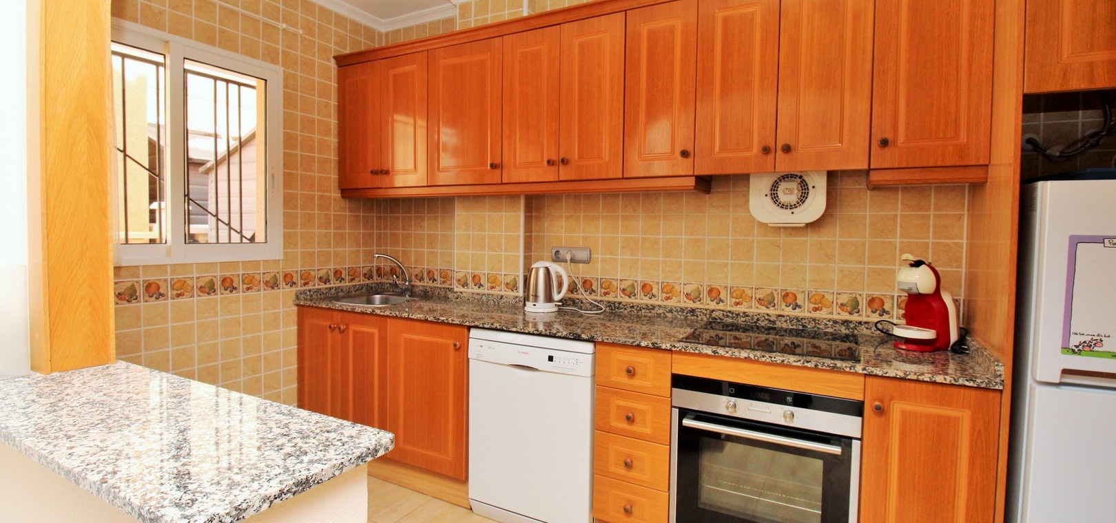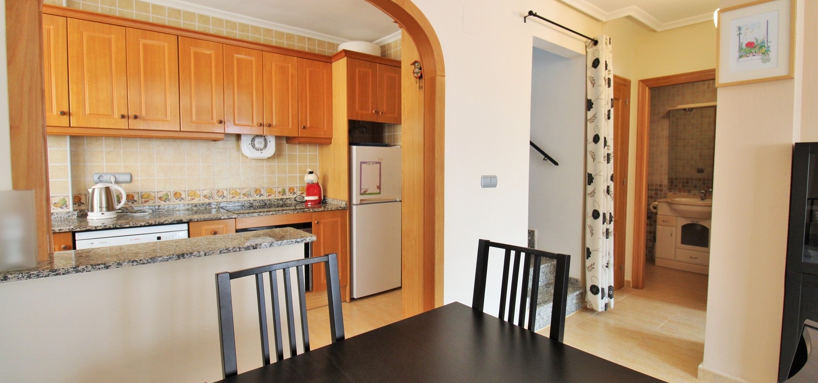 Detta ljusa och rymliga fyrbäddshus med tre sovrum ligger i det populära Pau 8-området i Villamartin, bara en kort promenad från det berömda Villamartin Plaza och golfbanan. Fastigheten har ägts av samma familj sedan den byggdes och har omsorgsfullt underhållits och erbjuder en välkomnande planlösning med utmärkta utomhusutrymmen. Beläget på en tomt i sydostläge har huset en L-formad trädgård med en grindad uppfart, externt förråd, en balkong på första våningen och ett privat takterrass – perfekt för att njuta av solen hela dagen. Bottenvåningen består av ett bekvämt vardagsrum och matplats med ett öppet kök och angränsande tvättstuga, ett sovrum med dubbelsäng, ett modernt badrum med duschkabin och ett praktiskt förvaringsskåp under trappan. På övervåningen finns ytterligare två sovrum med inbyggda garderober, ett familjebadrum och tillgång till en solig balkong som leder upp till takterrassen. Fastigheten säljs möblerad, inklusive vitvaror och luftkonditionering. Den ingår i ett välskött bostadsområde med en gemensam pool i närheten. Bara 900 meter från Villamartin Plaza, med sitt breda utbud av restauranger, barer och en stormarknad, och under tio minuters bilresa till stränderna i Orihuela Costa och köpcentret Zenia Boulevard. Ett idealiskt alternativ för heltidsboende eller som ett lättskött fritidshus. Tidig visning rekommenderas.