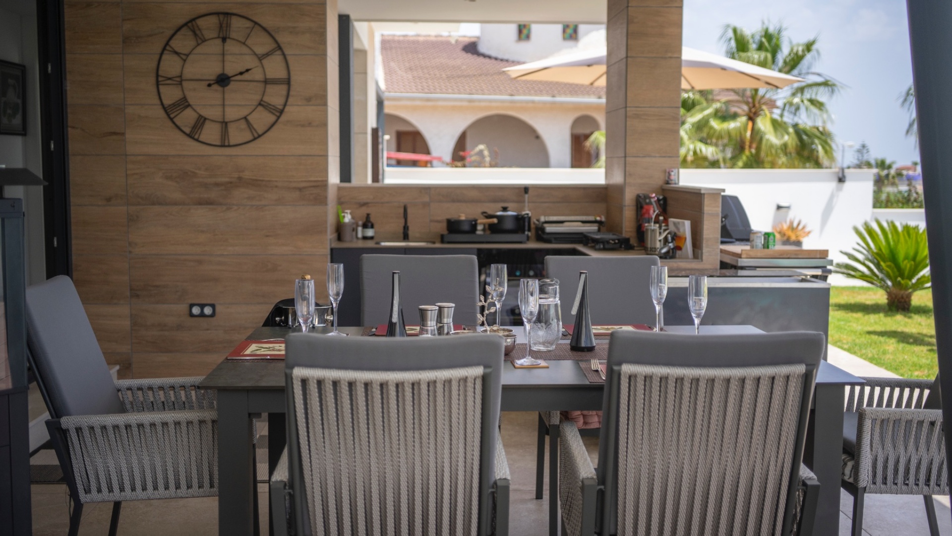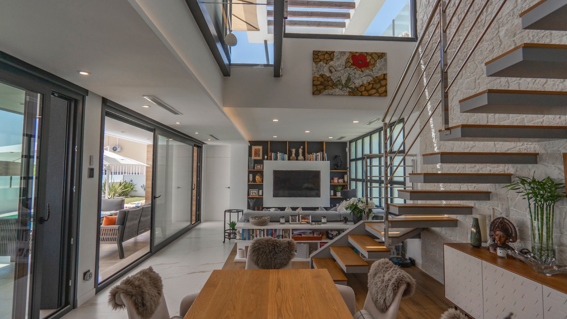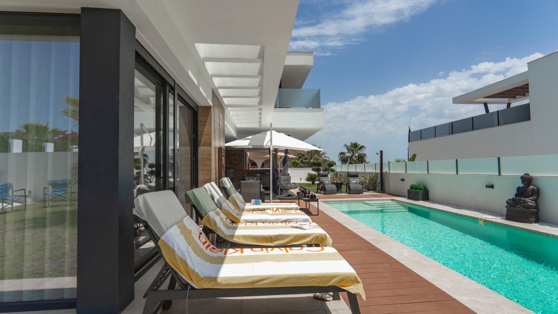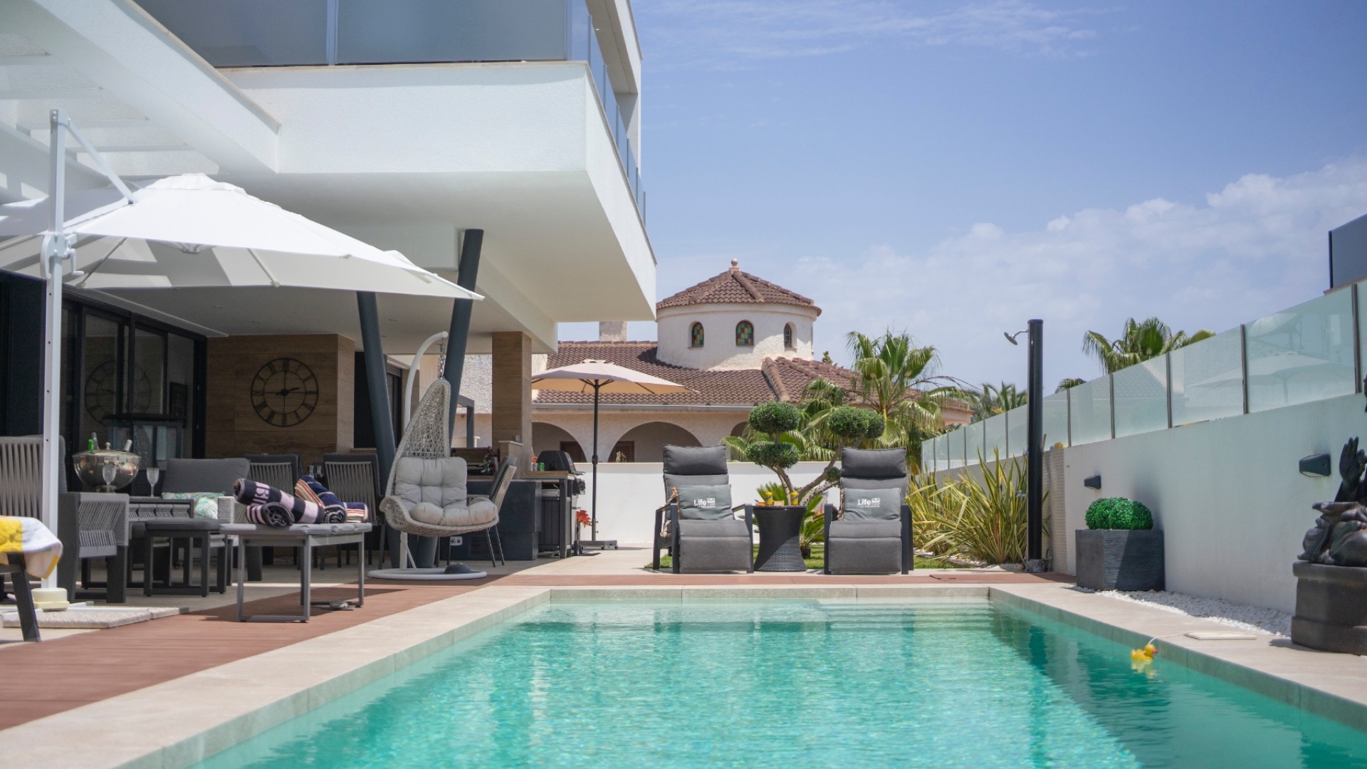 Belägen i hjärtat av Ciudad Quesada erbjuder denna utsökta villa i söderläge en harmonisk blandning av lyx och bekvämlighet. Med fyra rymliga sovrum och fyra moderna badrum är fastigheten utformad för bekvämt familjeliv. Dess utmärkta läge garanterar enkel tillgång till lokala bekvämligheter, inklusive butiker, restauranger och fritidsanläggningar. Villan har en modern öppen planlösning som sömlöst ansluter till ett toppmodernt kök utrustat med avancerade vitvaror. Stora fönster översvämmar utrymmet med naturligt ljus, vilket skapar en varm och inbjudande atmosfär. Varje sovrum är omsorgsfullt utformat och erbjuder gott om förvaring och eget badrum, vilket garanterar avskildhet och komfort för alla boende. Utanför har fastigheten en privat pool omgiven av en vackert anlagd trädgård, perfekt för avkoppling och underhållning av gäster. Ytterligare funktioner inkluderar ett rymligt garage, golvvärme och ett takterrass med panoramautsikt över omgivningarna. Denna villa är ett perfekt exempel på lyxigt boende i en av Costa Blancas mest eftertraktade områden. Nyckelfunktioner: 4 rymliga sovrum med 4 badrum varav 3 har eget badrum Privat pool och anlagd trädgård Modernt vardagsrum och matplats i öppen planlösning Fullt utrustat modernt kök Golvvärme i hela fastigheten Takterrass med panoramautsikt Rymlig parkering med privat uppfart Utmärkt läge i Ciudad Quesada centrum För mer information eller för att boka en visning, vänligen kontakta Petra Honig på info@petrahonig.com eller ring +34 966 718 006.