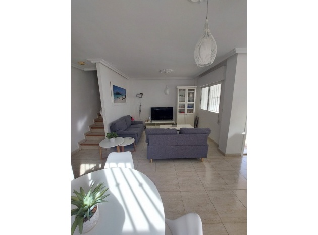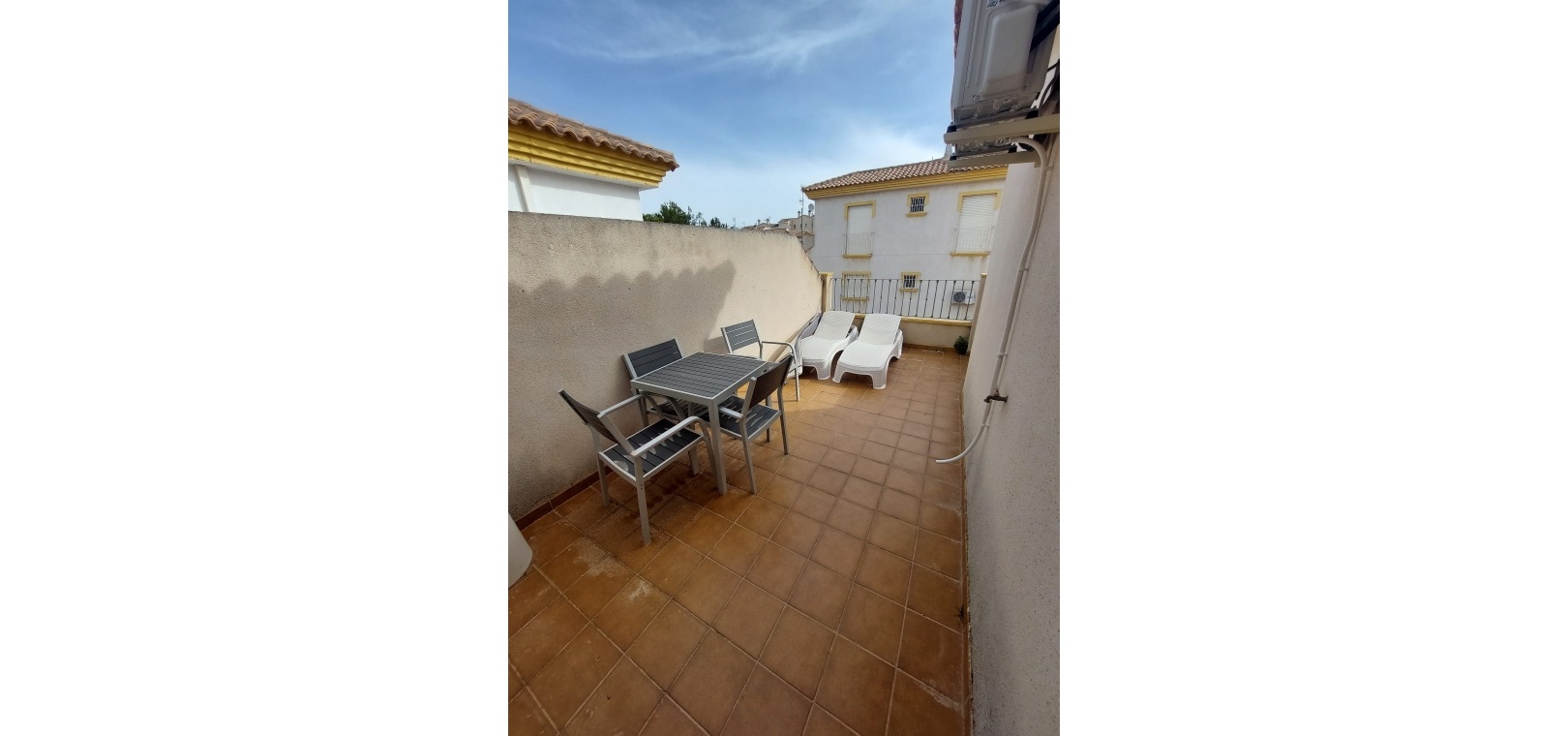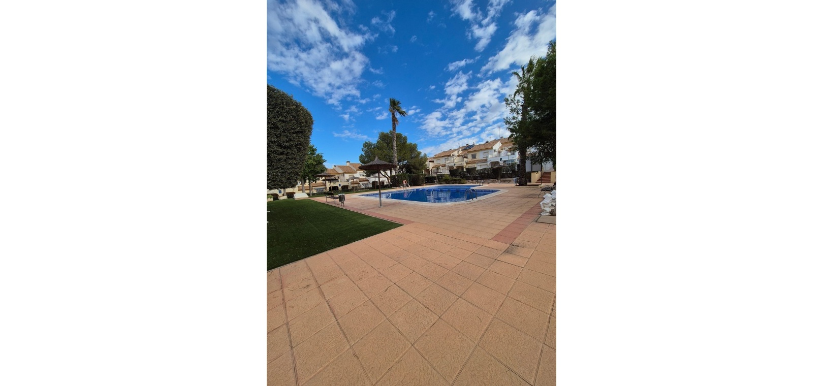Välkommen till ditt nya hem i det attraktiva gated communityt Laderas Del Sol i Los Altos, Orihuela Costa! Detta vackert presenterade radhus med tre sovrum och två badrum erbjuder den perfekta blandningen av komfort och bekvämlighet.