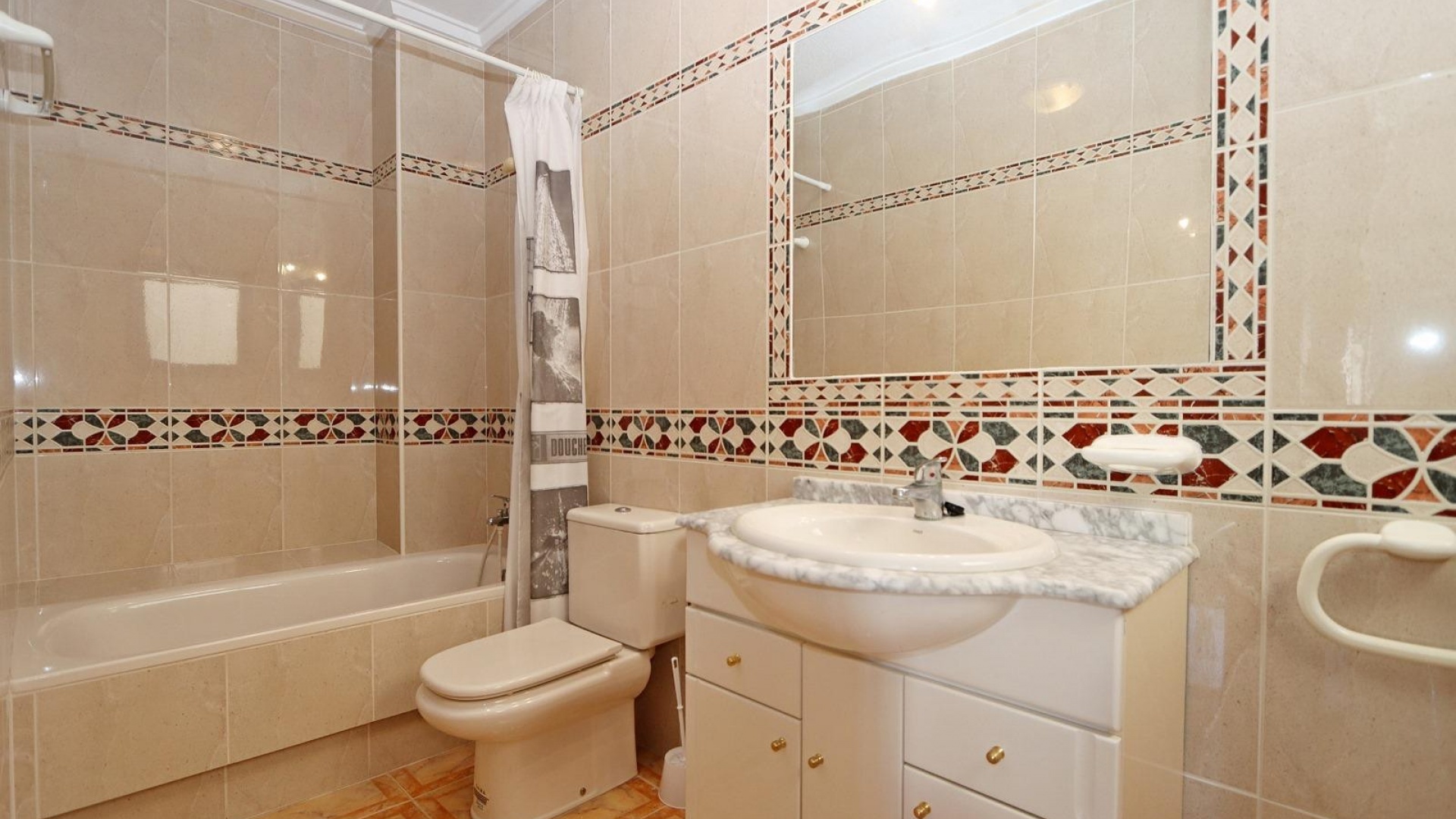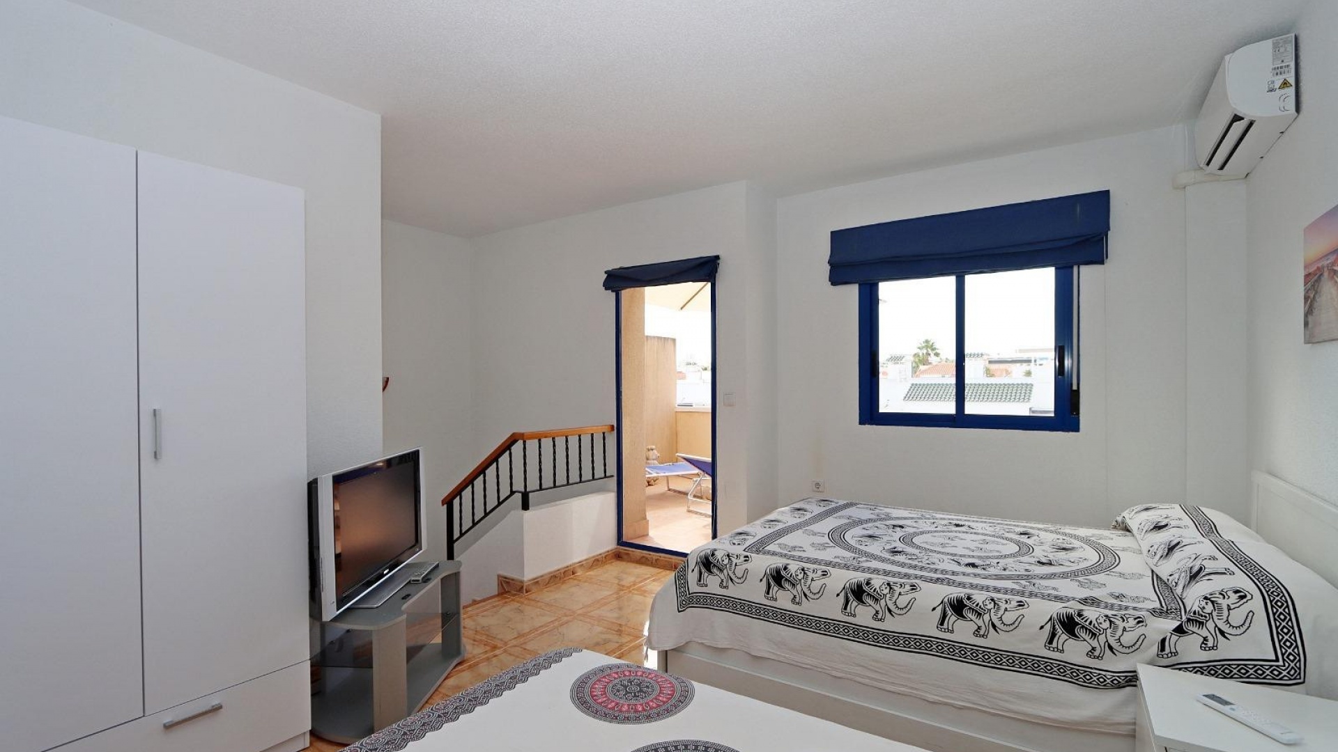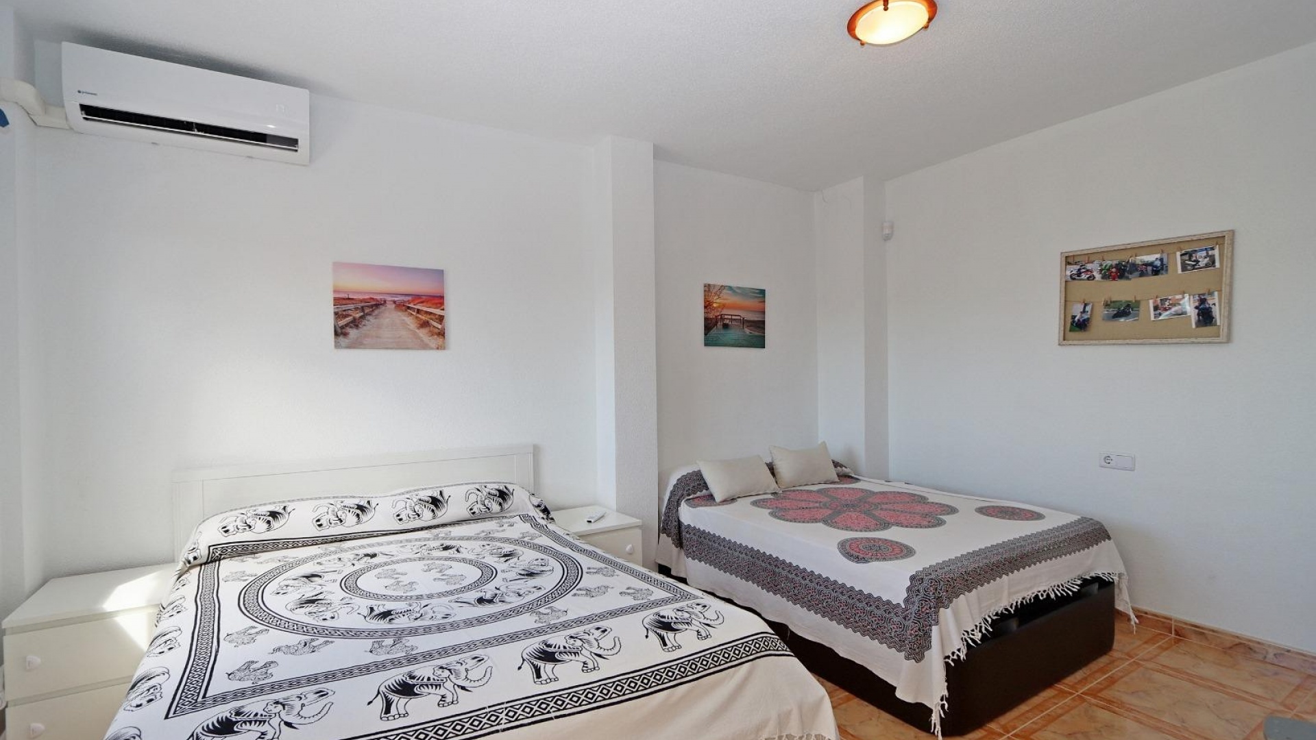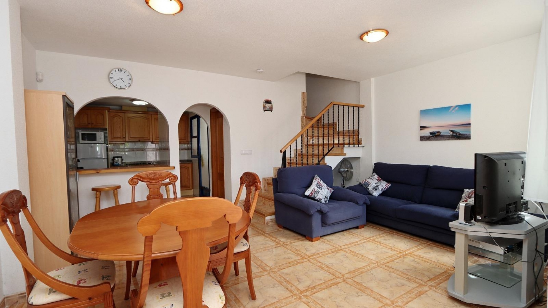 Utmärkt läge för detta etablerade radhus, bara 800 meter från La Zenia-stranden. Fastigheten till salu erbjuder 3 sovrum, ett sovrum med 5m2 balkong och solterrass, 2 badrum (ett på bottenvåningen med dusch och toalett och ett på första våningen med badrum), vardagsrum/matsal och delvis separat kök med angränsande tvättstuga/tvättstuga. Utomhusutrymmet erbjuder lättskött trädgård/terrass med parkering på plats och solarium för sol året runt. Säljs delvis möblerad och nyckelklar med extrafunktioner inklusive luftkonditionering, vitvaror, säkerhetsjalusier och galler. Bostadsgemenskap med pool för vuxna och barn och ligger bara ett stenkast från lokala barer, restauranger, stormarknader, taxistation, köpcentret La Zenia Boulevard och naturligtvis den blåflaggade La Zenia-stranden. Enkel tillgång till AP7 och kustvägen N332 för både Covera/Murcia och Alicante flygplatser. En perfekt familjebostad eller uthyrningsinvesteringsmöjlighet.