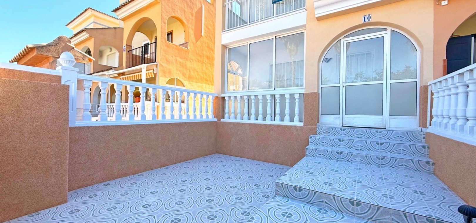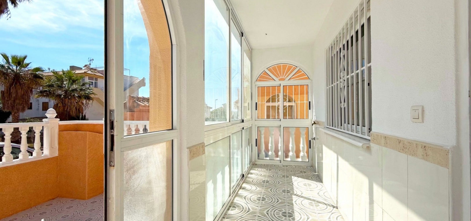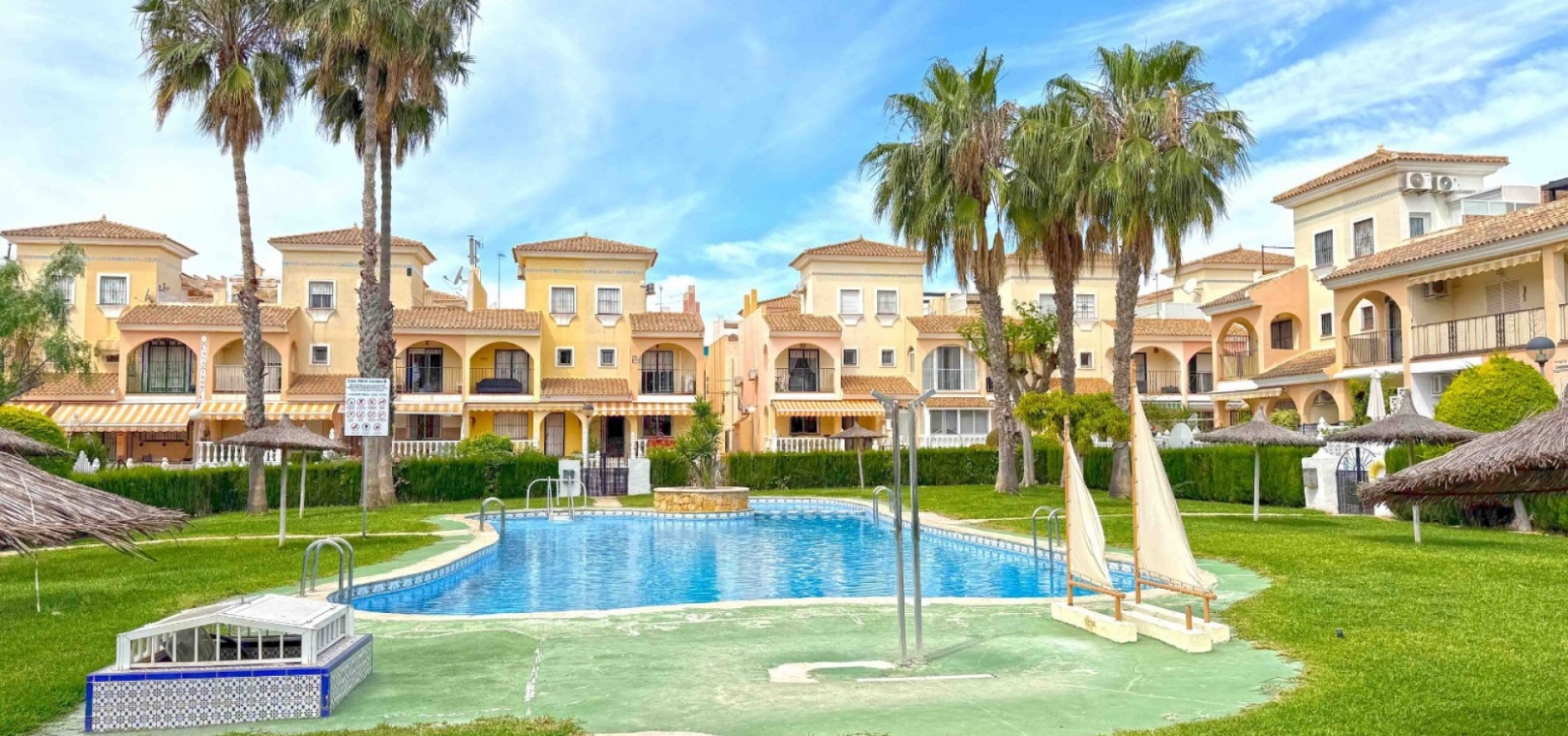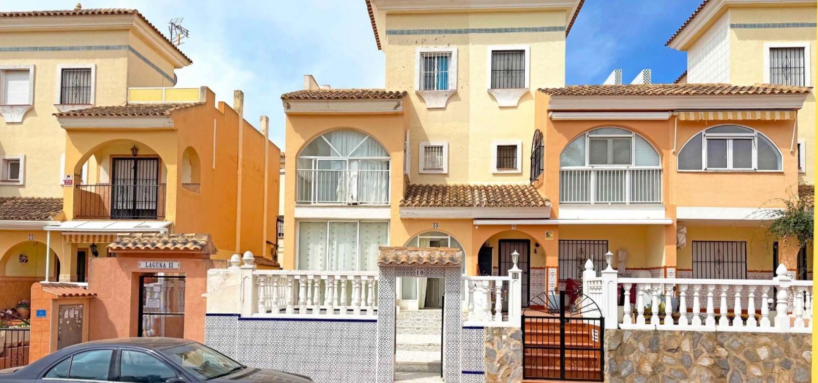 Detta välbelägna radhus i hjärtat av Playa Flamenca erbjuder den perfekta blandningen av komfort, bekvämlighet och medelhavsliv. Med 3 sovrum och 2 badrum är detta hem perfekt för både året runt-boende och semesterresor. Njut av ett utomhusliv med en privat takterrass och två terrasser på bottenvåningen som vetter mot olika vädersträckningar – perfekt för att sola eller äta utomhus. Fastigheten ligger direkt framför en park och erbjuder vacker öppen utsikt och en lugn miljö. Beläget i ett välskött område har de boende tillgång till ett härligt gemensamt poolområde, perfekt för avkoppling under varma dagar på Costa Blanca. Privat parkering ingår för extra bekvämlighet. Du bor bara en kort promenad från populära kommersiella centrum, restauranger, butiker och viktiga tjänster, vilket gör detta till ett utmärkt läge för dem som söker en livlig men ändå fridfull livsstil nära allt.