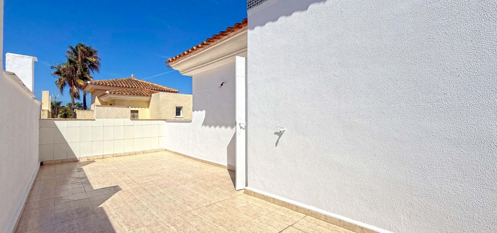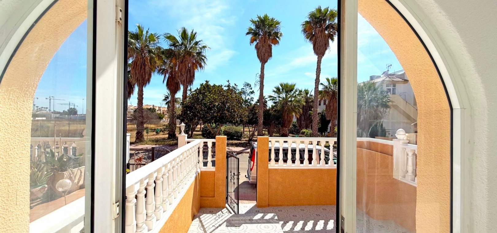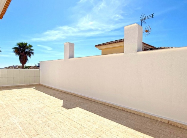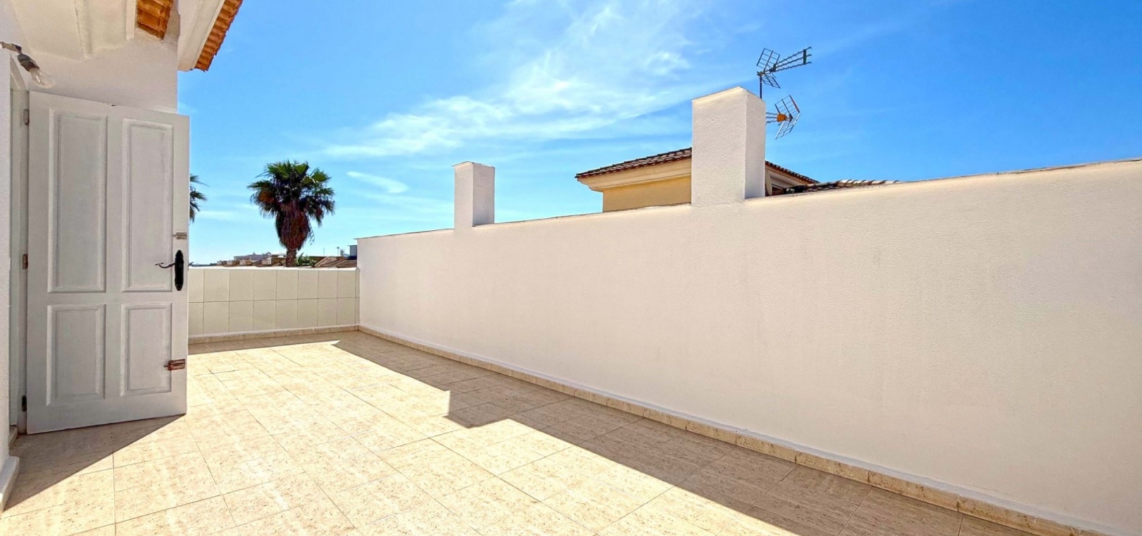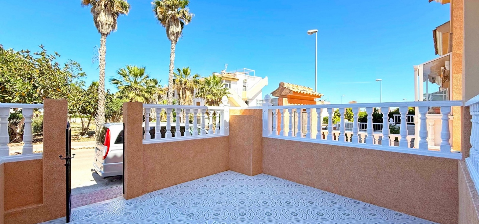Detta välbelägna radhus i hjärtat av Playa Flamenca erbjuder den perfekta blandningen av komfort, bekvämlighet och medelhavsliv. Med 3 sovrum och 2 badrum är detta hem perfekt för både året runt-boende och semesterresor. Njut av ett utomhusliv med en privat takterrass och två terrasser på bottenvåningen som vetter mot olika vädersträckningar – perfekt för att sola eller äta utomhus. Fastigheten ligger direkt framför en park och erbjuder vacker öppen utsikt och en lugn miljö. Beläget i ett välskött område har de boende tillgång till ett härligt gemensamt poolområde, perfekt för avkoppling under varma dagar på Costa Blanca. Privat parkering ingår för extra bekvämlighet. Du bor bara en kort promenad från populära kommersiella centrum, restauranger, butiker och viktiga tjänster, vilket gör detta till ett utmärkt läge för dem som söker en livlig men ändå fridfull livsstil nära allt.