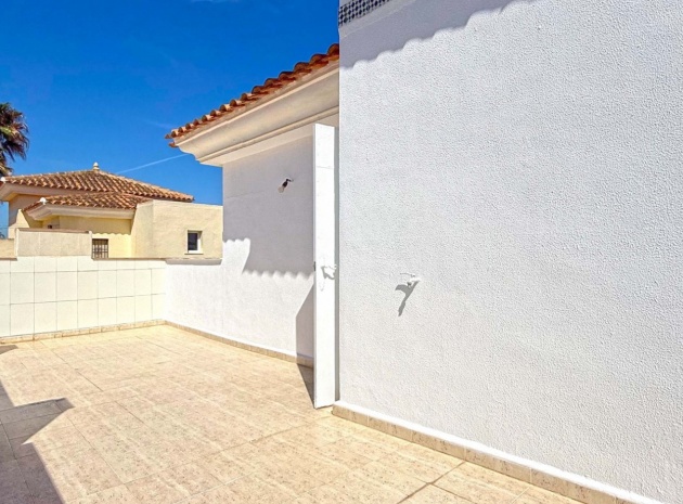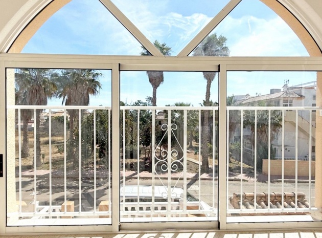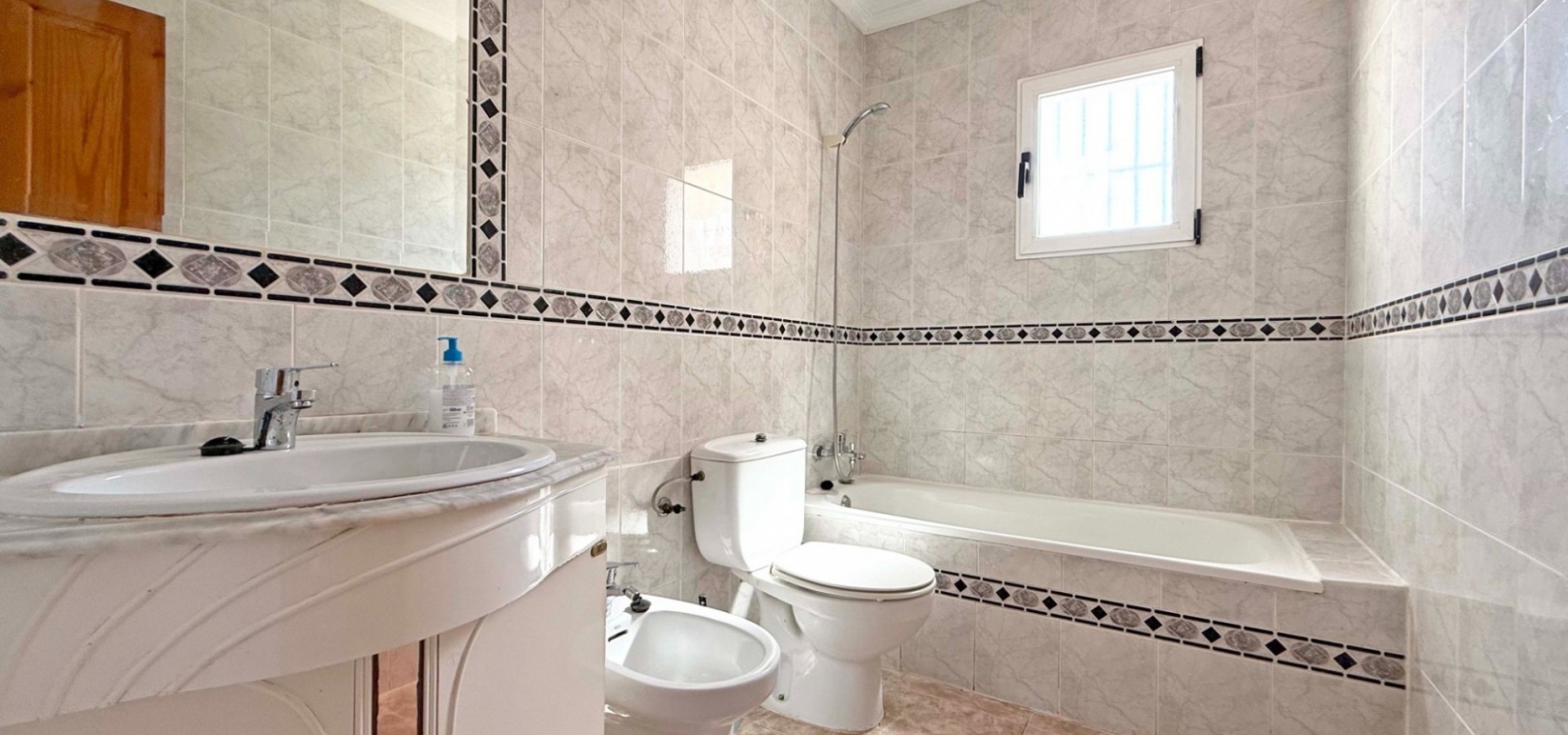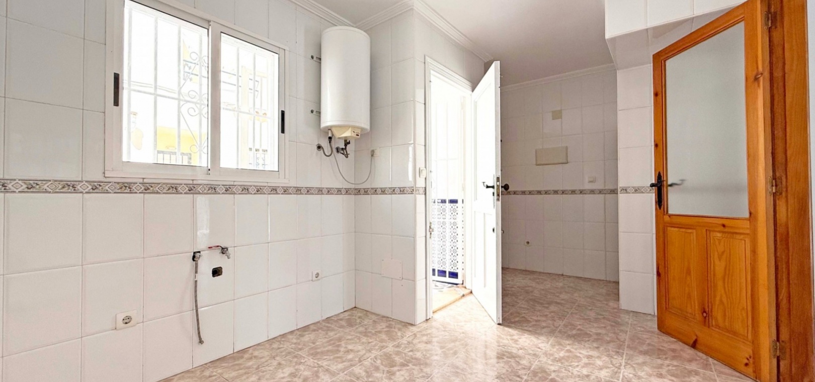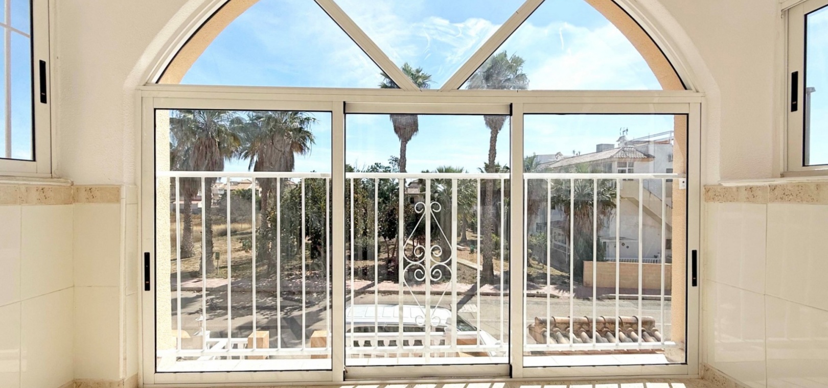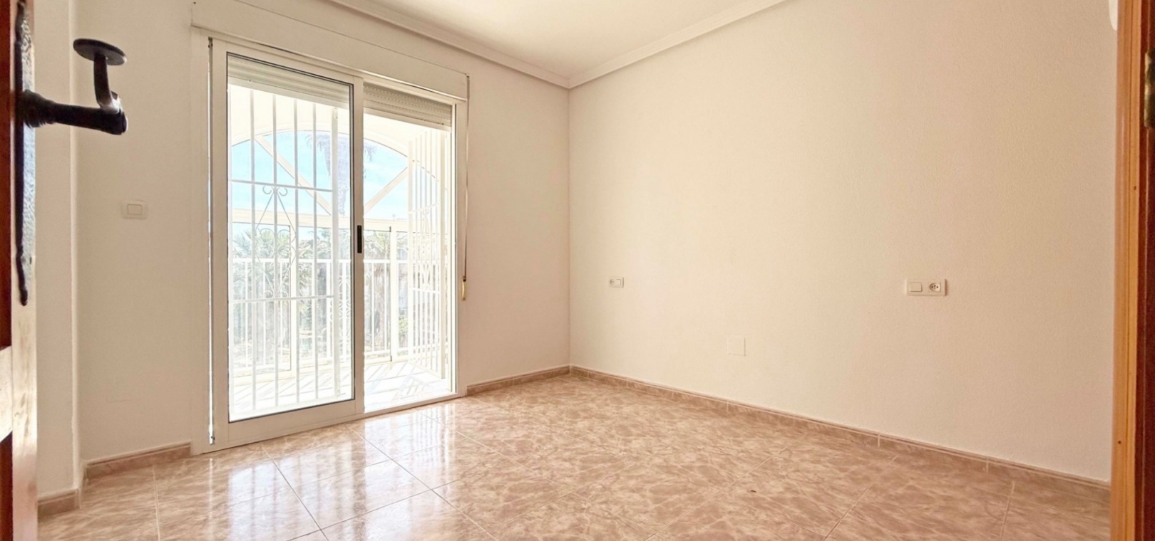 Detta välbelägna radhus i hjärtat av Playa Flamenca erbjuder den perfekta blandningen av komfort, bekvämlighet och medelhavsliv. Med 3 sovrum och 2 badrum är detta hem perfekt för både året runt-boende och semesterresor. Njut av ett utomhusliv med en privat takterrass och två terrasser på bottenvåningen som vetter mot olika vädersträckningar – perfekt för att sola eller äta utomhus. Fastigheten ligger direkt framför en park och erbjuder vacker öppen utsikt och en lugn miljö. Beläget i ett välskött område har de boende tillgång till ett härligt gemensamt poolområde, perfekt för avkoppling under varma dagar på Costa Blanca. Privat parkering ingår för extra bekvämlighet. Du bor bara en kort promenad från populära kommersiella centrum, restauranger, butiker och viktiga tjänster, vilket gör detta till ett utmärkt läge för dem som söker en livlig men ändå fridfull livsstil nära allt.