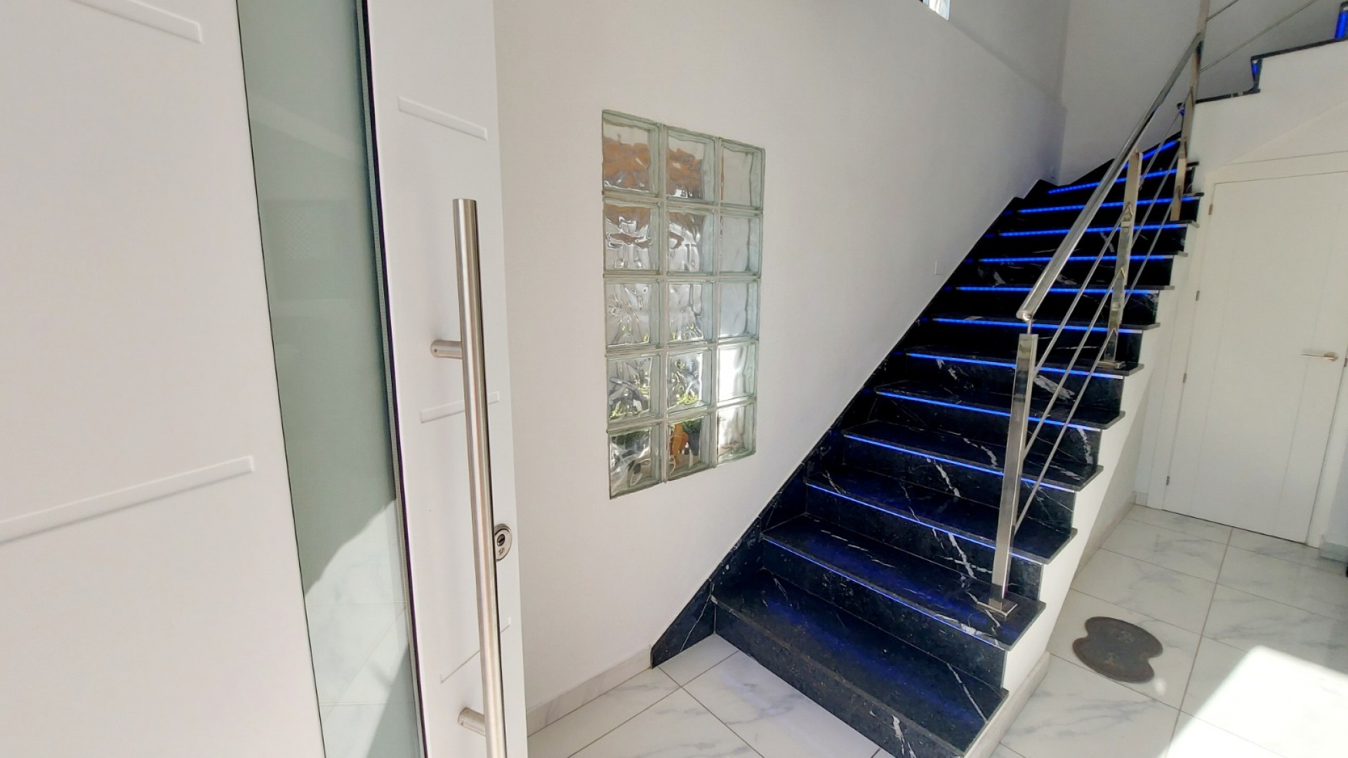 **Lyxig villa med fem sovrum i La Regia** Upptäck ditt drömhus inbäddat mellan Cabo Roig och La Zenia, bara en kort promenad från den fridfulla stranden Playa Cala La Caleta. Denna utsökta fristående villa erbjuder oöverträffad lyx och bekvämlighet. Belägen på en generös tomt på 450 m², ståtar fastigheten med en privat pool, uppfart och garage, omgiven av vackert anlagda trädgårdar med flera sittgrupper och ett utekök – perfekt för underhållning. Stig in för att hitta ett rymligt vardagsrum med terrassutgång som erbjuder hisnande utsikt över poolen. Det moderna köket kompletteras av ett solrum och en tvättstuga, vilket säkerställer både stil och funktionalitet. Med fem dubbelrum, inklusive ett alternativ på bottenvåningen, erbjuder detta hem gott om plats för familj och gäster. Master-sviten har en privat balkong och klädkammare, medan ytterligare sovrum ligger på första våningen. Njut av komfort året runt med oljeeldad centralvärme och luftkonditionering. Säkerhetskameror ger sinnesro. Denna villa är en sällsynt pärla som kombinerar lyxigt boende med bekvämligheterna i närheten. Missa inte chansen att göra den till din!