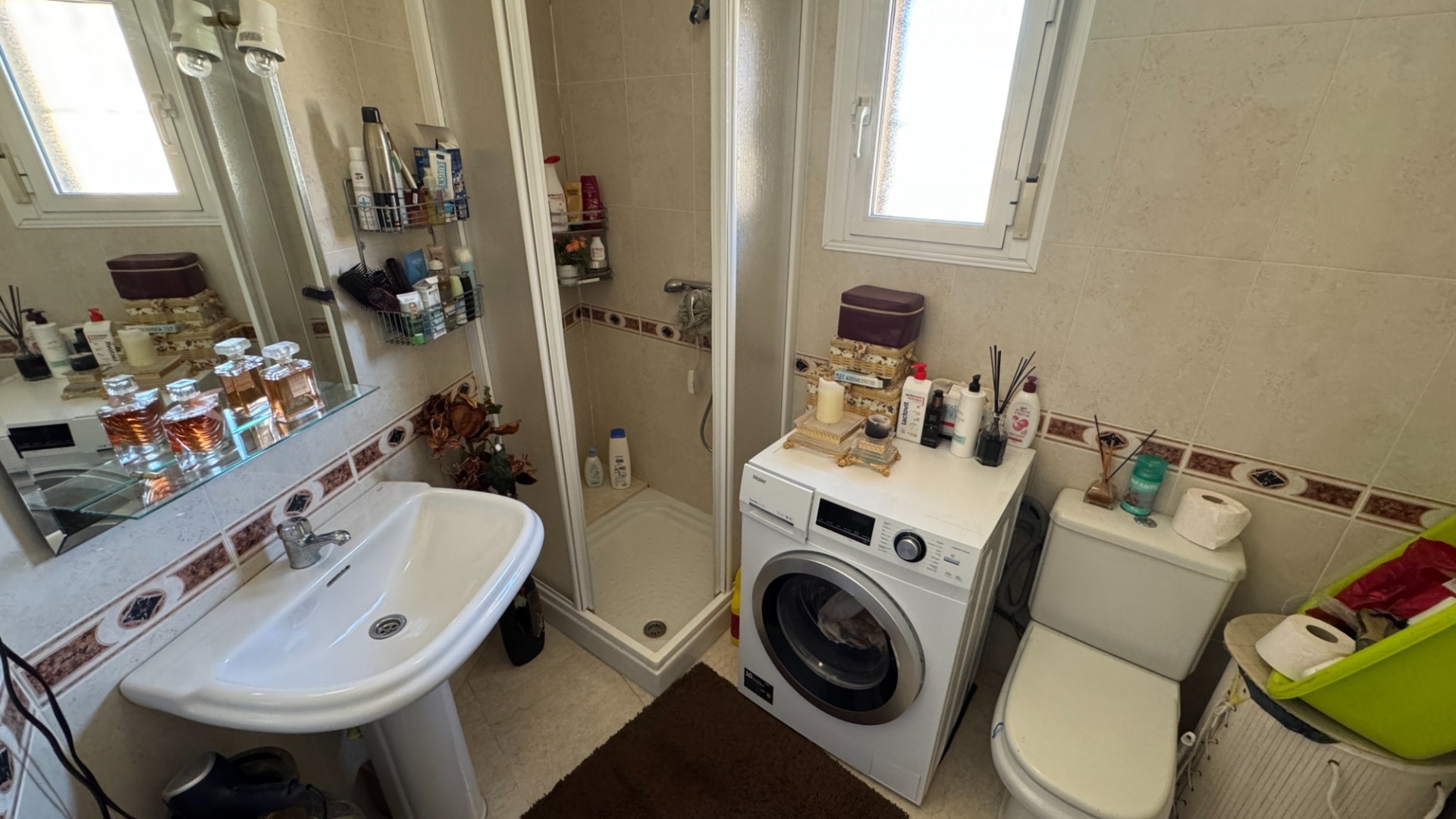 Välkommen till ditt drömhem! Denna fantastiska fristående villa erbjuder den perfekta blandningen av komfort och bekvämlighet, inbäddad i ett lugnt bostadsområde med snabb tillgång till motorväg AP7. Med 147 m² omsorgsfullt utformad boyta har detta rymliga familjehem tre sovrum och tre badrum, inklusive ett eget duschrum för extra lyx. Njut av värmen från en mysig öppen spis i vardagsrummet, kompletterad av luftkonditionering för komfort året runt. Kliv ut och upptäck en privat oas på en generös tomt på 480 m². Koppla av vid din egen privata pool eller ha gäster på den täckta terrassen i söderläge. Den lättskötta tomten säkerställer att du kan spendera mer tid på att njuta av ditt nya hem och mindre tid på underhåll. Parkering utanför vägen och ett stort förråd bidrar till bekvämligheten med denna fastighet. Det välutrustade köket har inbyggda vägg- och bänkskåp, ugn, spishäll och plats för kyl och frys, vilket gör matlagningen till en barnlek. Med inbyggda garderober och VVS för tvättmaskin är detta hem designat med dina behov i åtanke. Beläget nära Elche, Alicante, och bara 40 minuter från flygplatsen, ligger denna villa också nära de charmiga städerna Benijofar och Ciudad Quesada, som erbjuder en mängd olika barer, restauranger och stormarknader. Missa inte chansen att göra denna exceptionella fastighet till din egen!