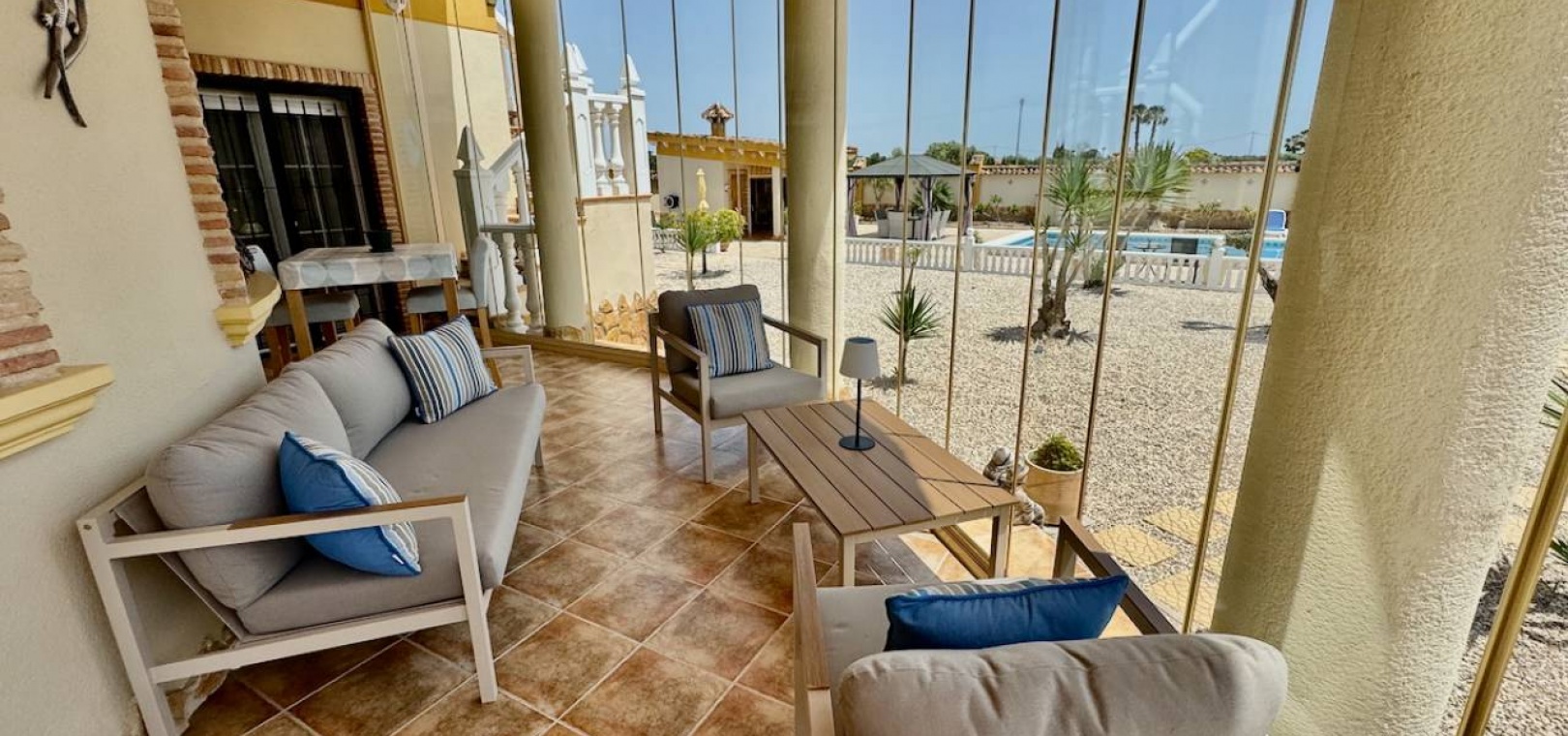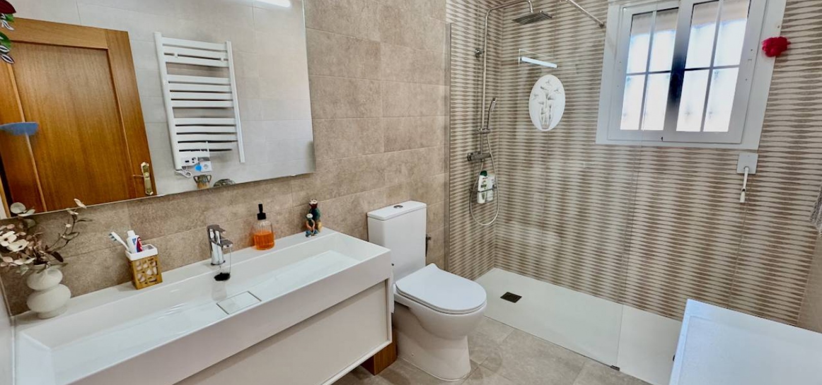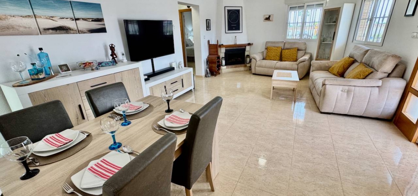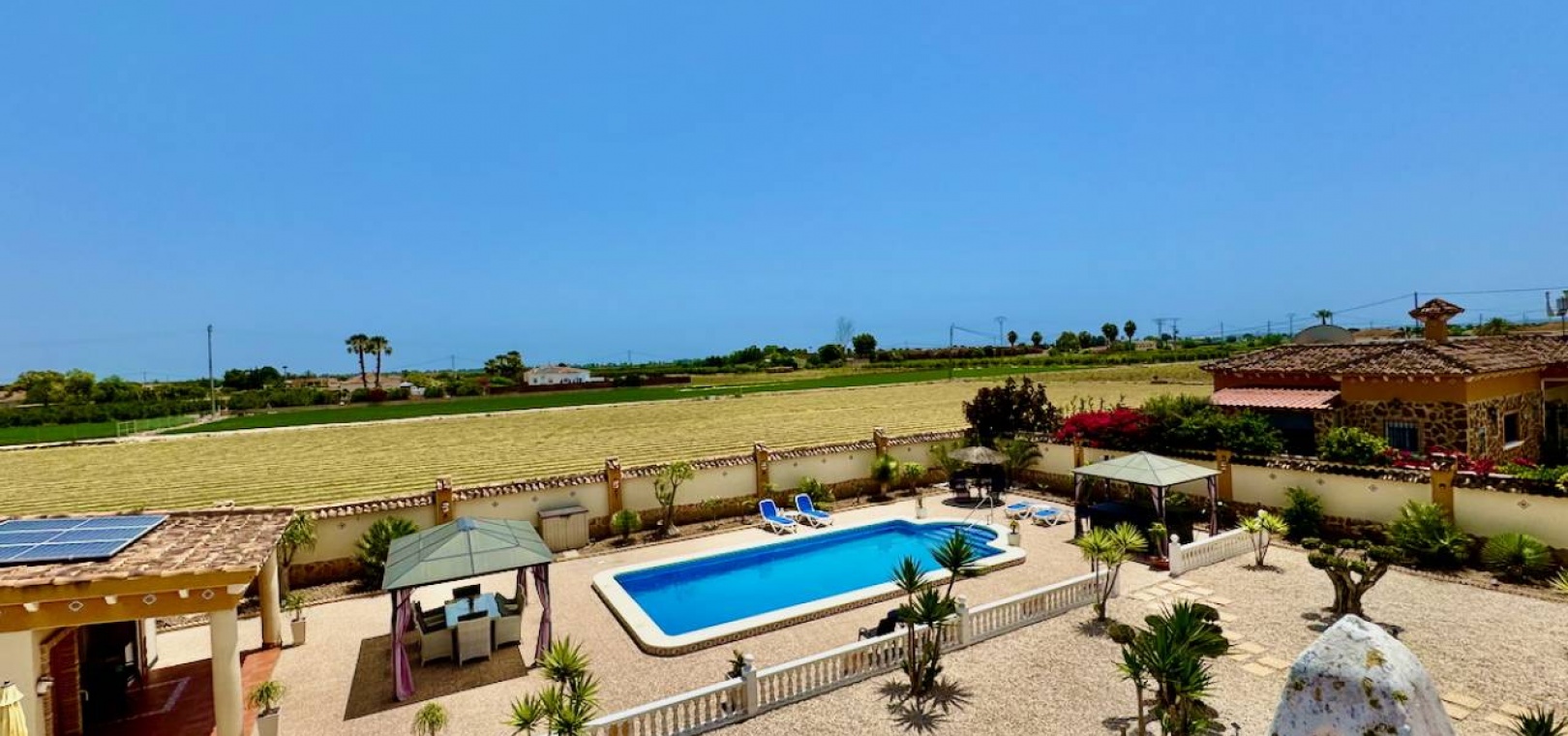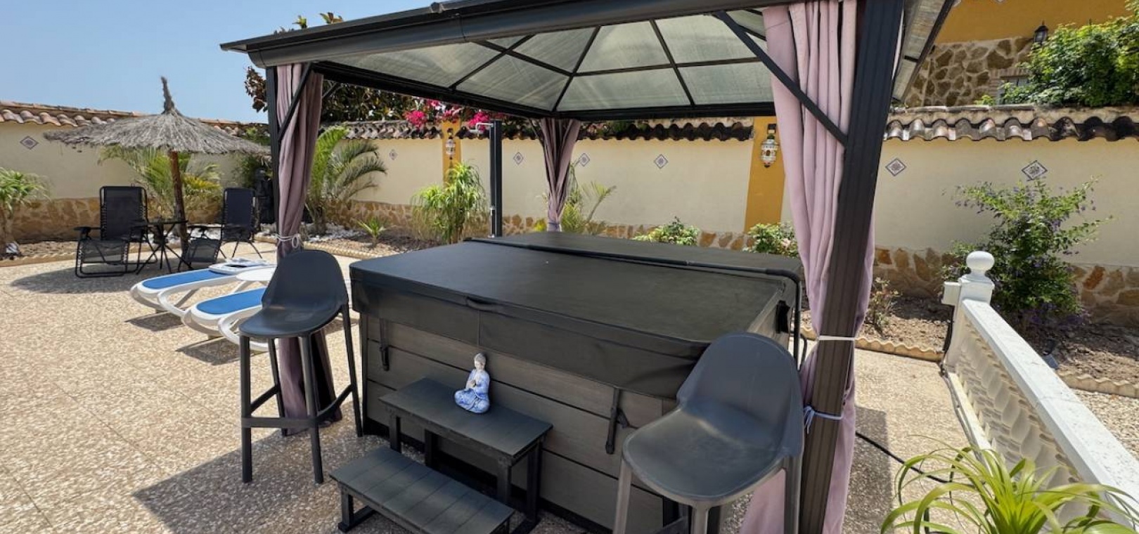 Fantastisk villa med 3 sovrum, panoramautsikt och privat pool. Inbäddad i en lugn lantlig miljö, bara 20 minuter från stranden och 30 minuter från flygplatsen, erbjuder denna vackert renoverade villa med 3 sovrum och 2 badrum den perfekta blandningen av lyx, komfort och bekvämlighet. Beläget på en generös tomt på 2 000 m², ståtar det 153 m² stora huset med panoramautsikt över bergen och landsbygden, med privata anlagda trädgårdar, en inglasad terrass och ett söderläge som översvämmar huset med naturligt ljus året runt. Stig in för att upptäcka ett öppet vardagsrum och matplats, komplett med en mysig öppen spis, golvvärme i badrummen och luftkonditionering för komfort året runt. Det separata, fullt utrustade köket inkluderar vitvaror, gott om förvaring och ett praktiskt tvättstuga. Det stora sovrummet har ett lyxigt badrum, medan alla sovrum har inbyggda garderober och takfläktar. Ytterligare funktioner inkluderar jacuzzi, solpaneler och elektriska grindar för ökad effektivitet och säkerhet. Utomhus kan du njuta av en genuin medelhavslivsstil med din egen privata pool, solarium och ett fullt utrustat utomhuskök och grillplats – perfekt för underhållning eller avkoppling med familj och vänner. Belägen bara 5 minuter från lokala bekvämligheter och nära golfbanor och kustnära sevärdheter, är denna villa perfekt positionerad för permanent boende, en semesterort eller investering. Viktiga funktioner: 3 sovrum, 2 badrum (inkl. eget badrum) Tomt: 2 000 m² | Byggyta: 153 m² Privat pool, jacuzzi, solarium Söderläge med panoramautsikt Nyligen renoverad | Utmärkt skick Luftkonditionering, golvvärme, öppen spis Elgrindar, parkering utanför vägen Utekök/grill, inglasad terrass Delvis möblerad | Vitvaror ingår Solpaneler | Vatten från elnätet Detta är landsbygdsliv när det är som bäst – med alla moderna bekvämligheter. Visningar rekommenderas starkt.
